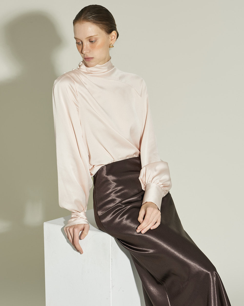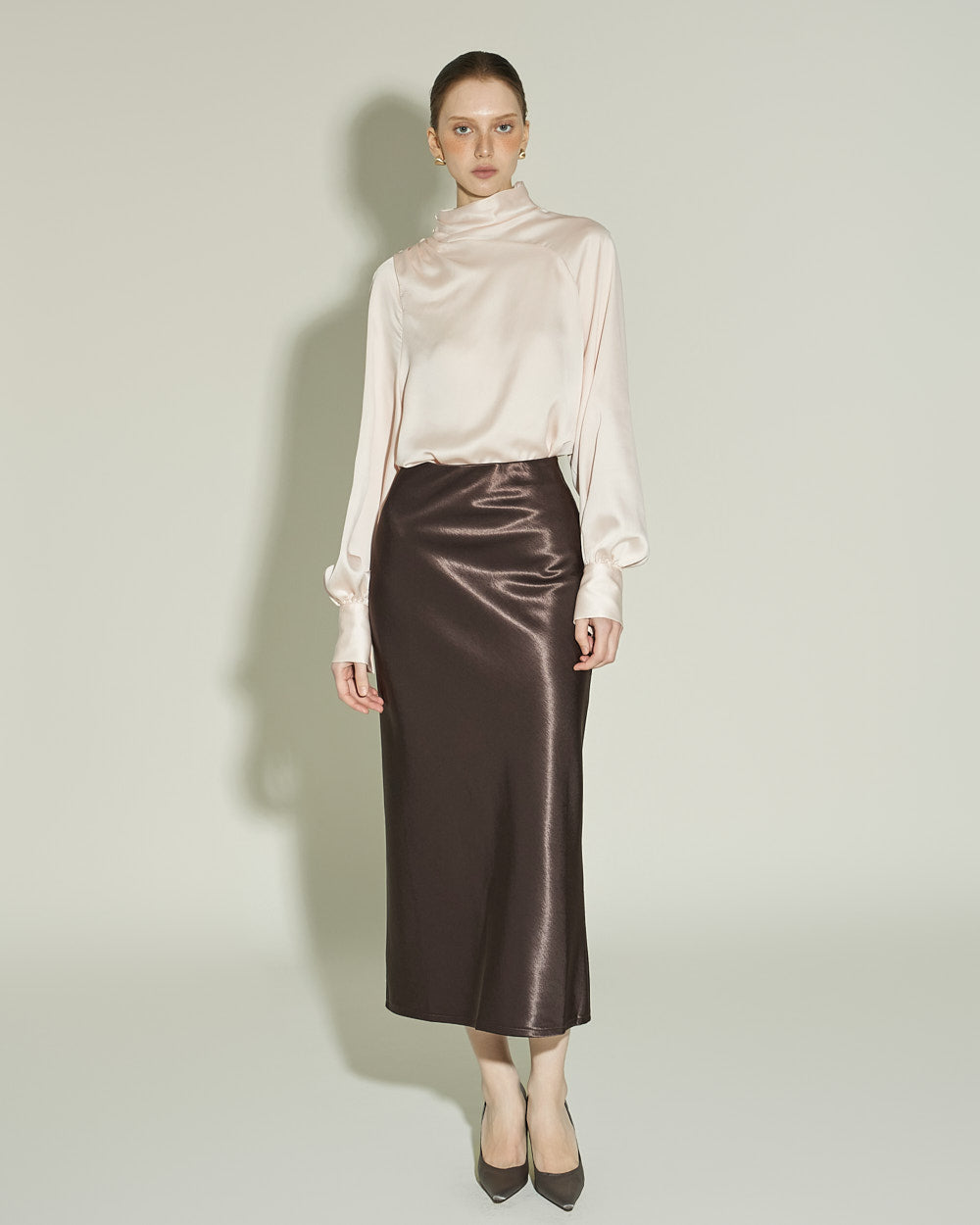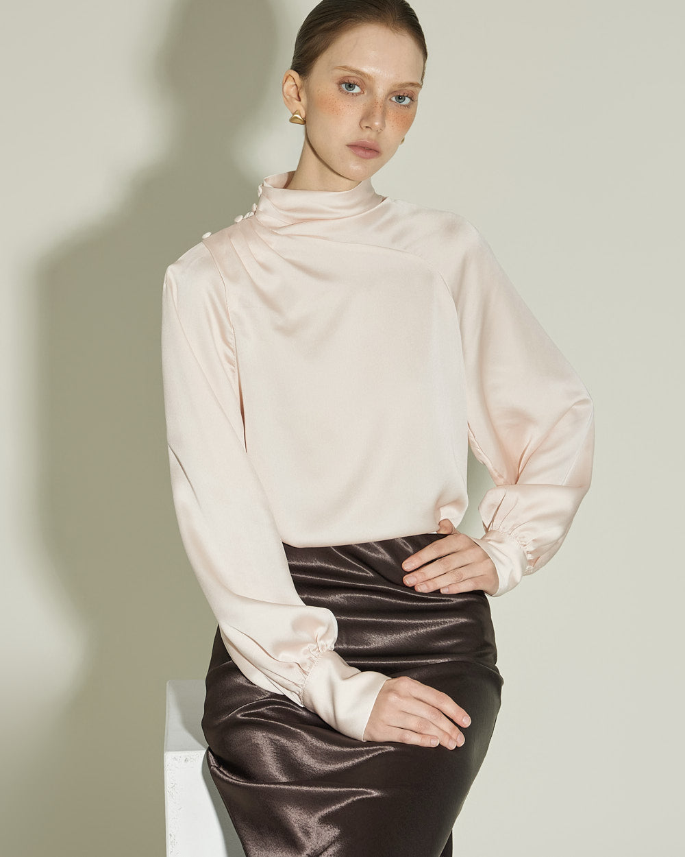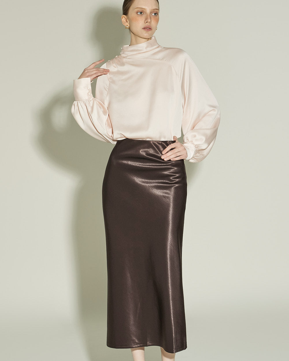 This satin blouse exudes a luxurious vibe.