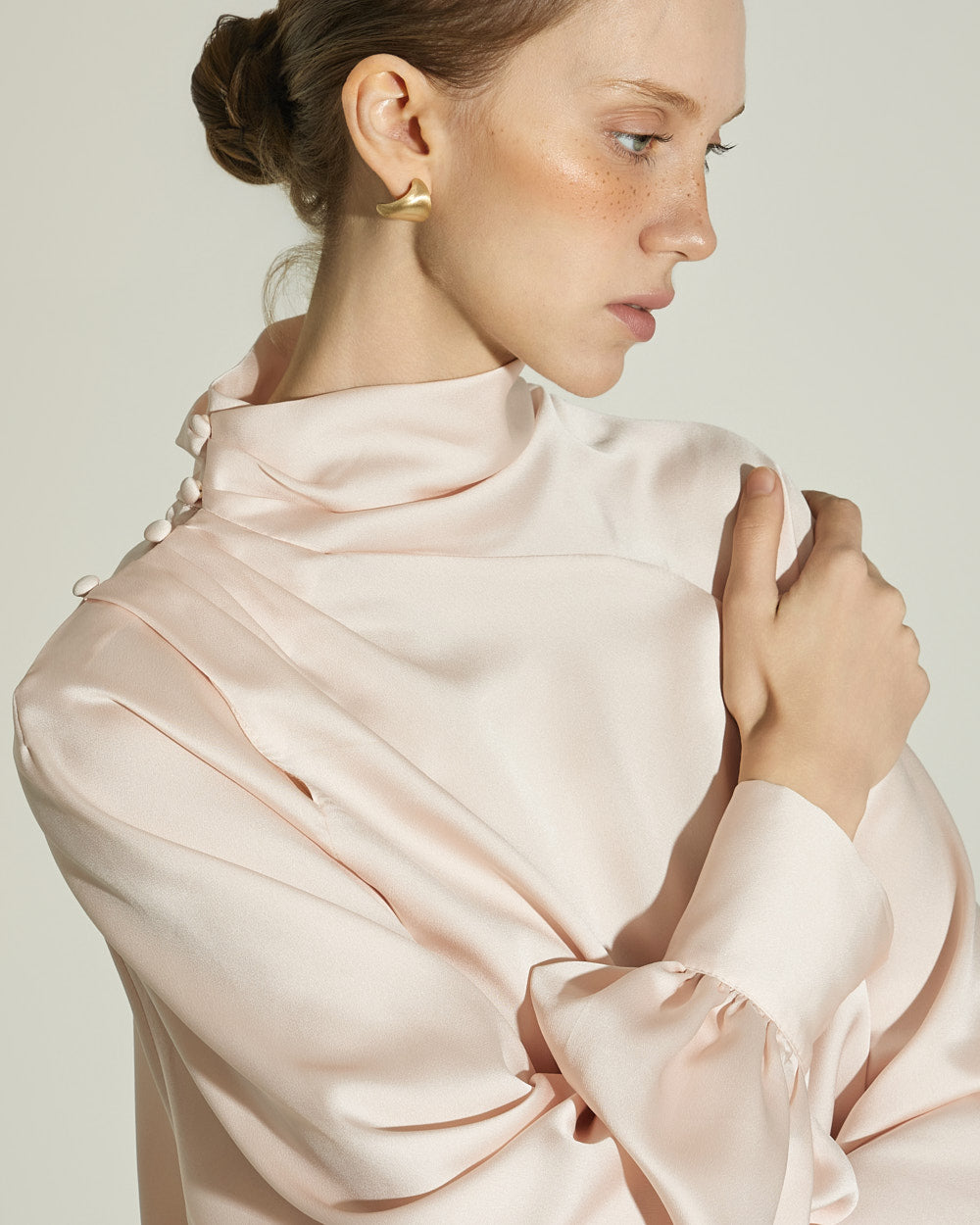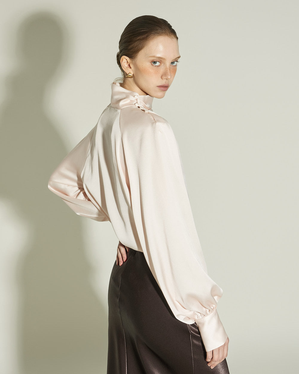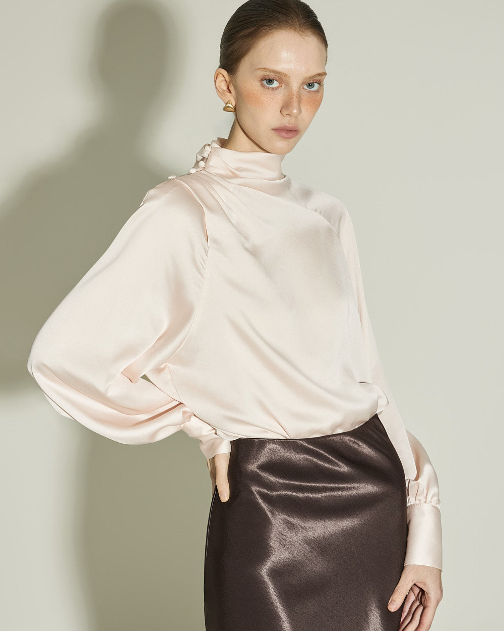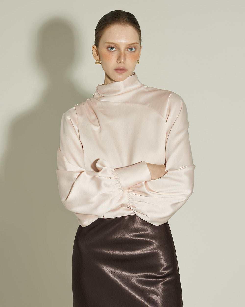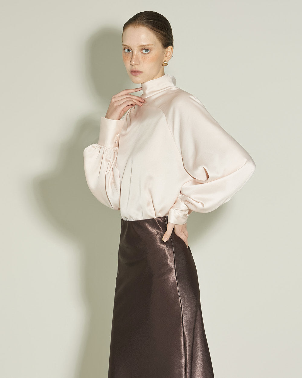 This satin blouse exudes a luxurious vibe.