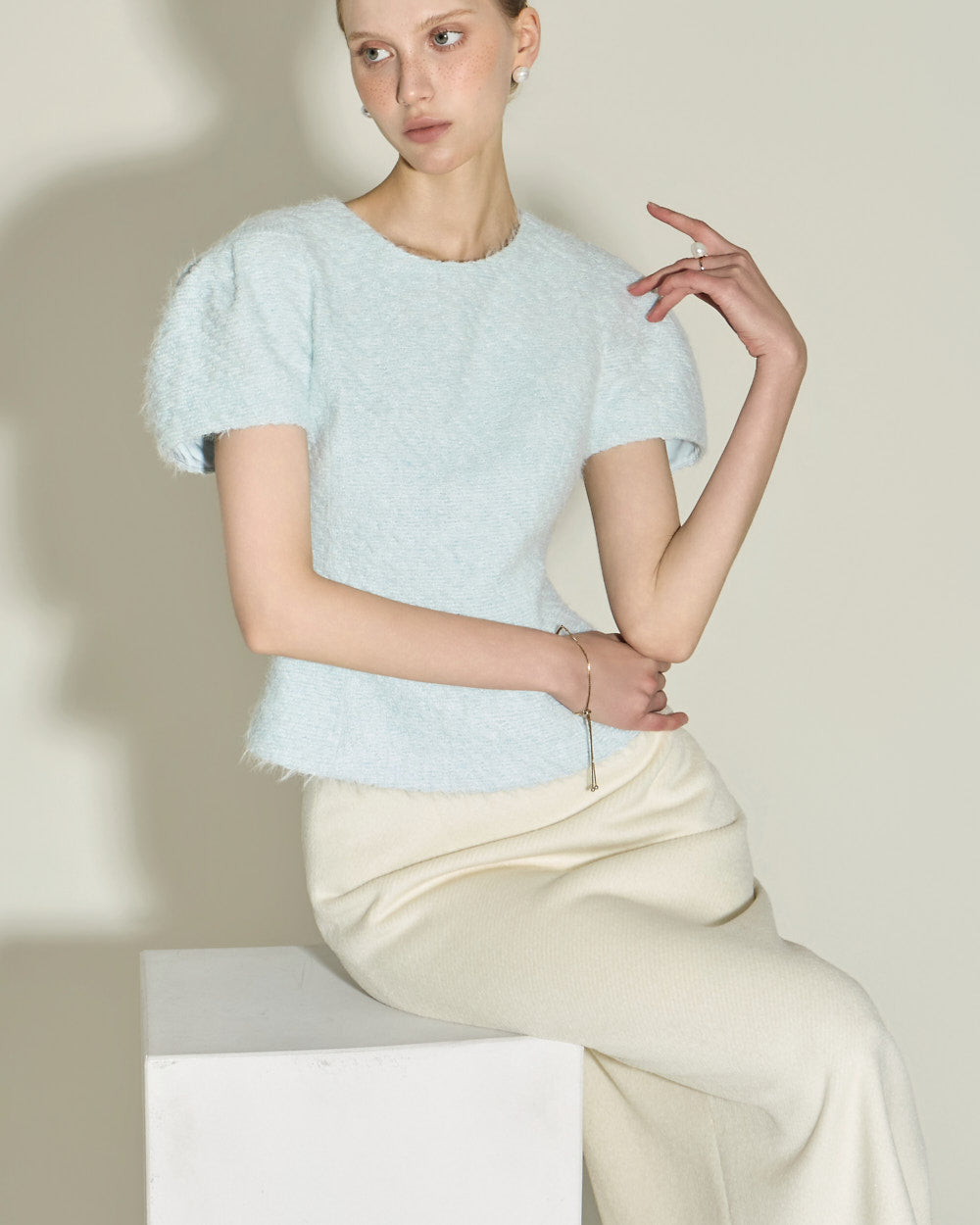 This boucle blouse has a casual vibe.