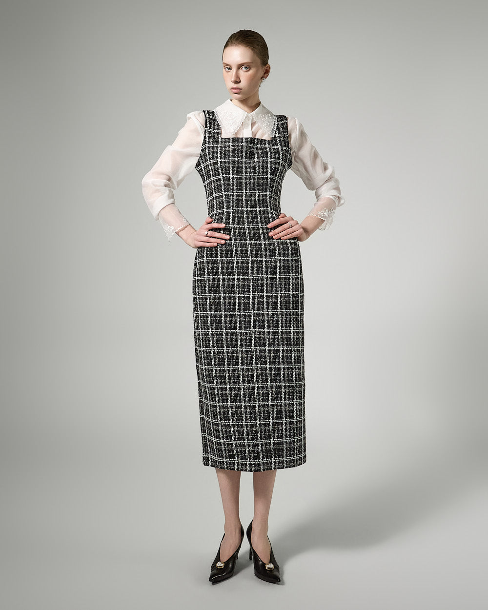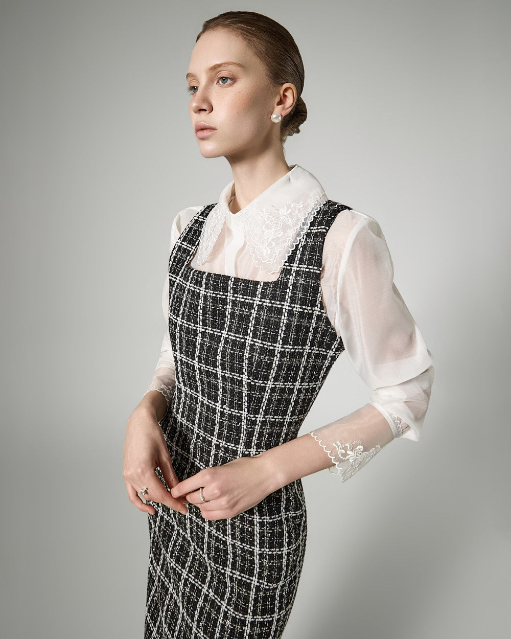 シアーな生地が繊細でエレガントなシルエットを作り出します。