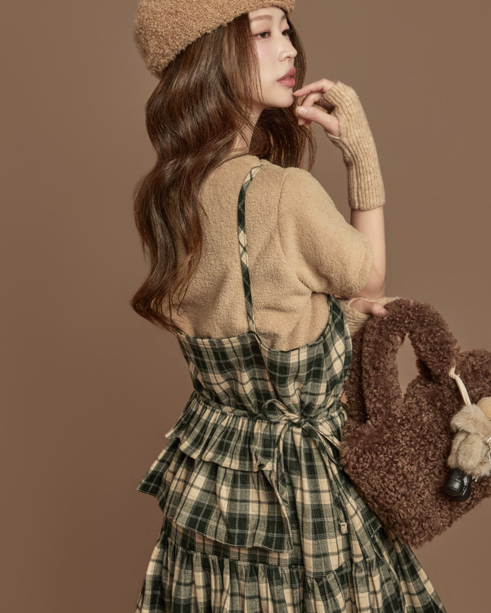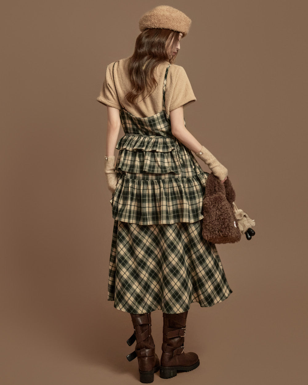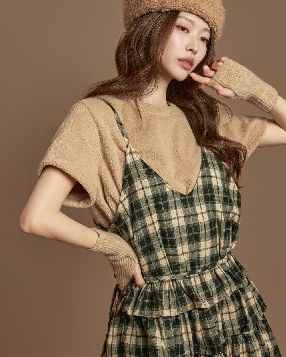 The check-patterned frill skirt and sleeveless dress