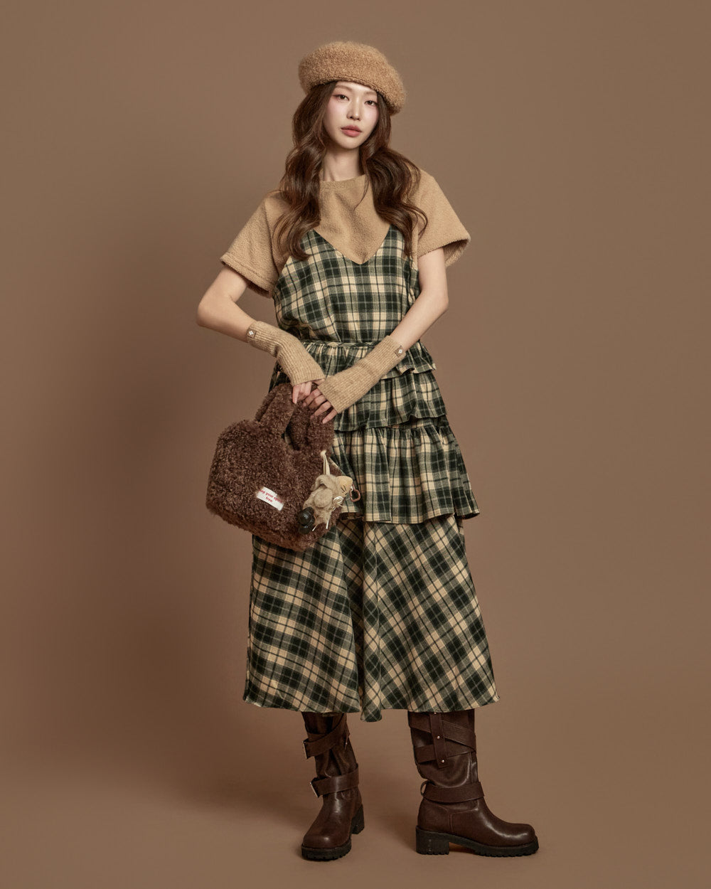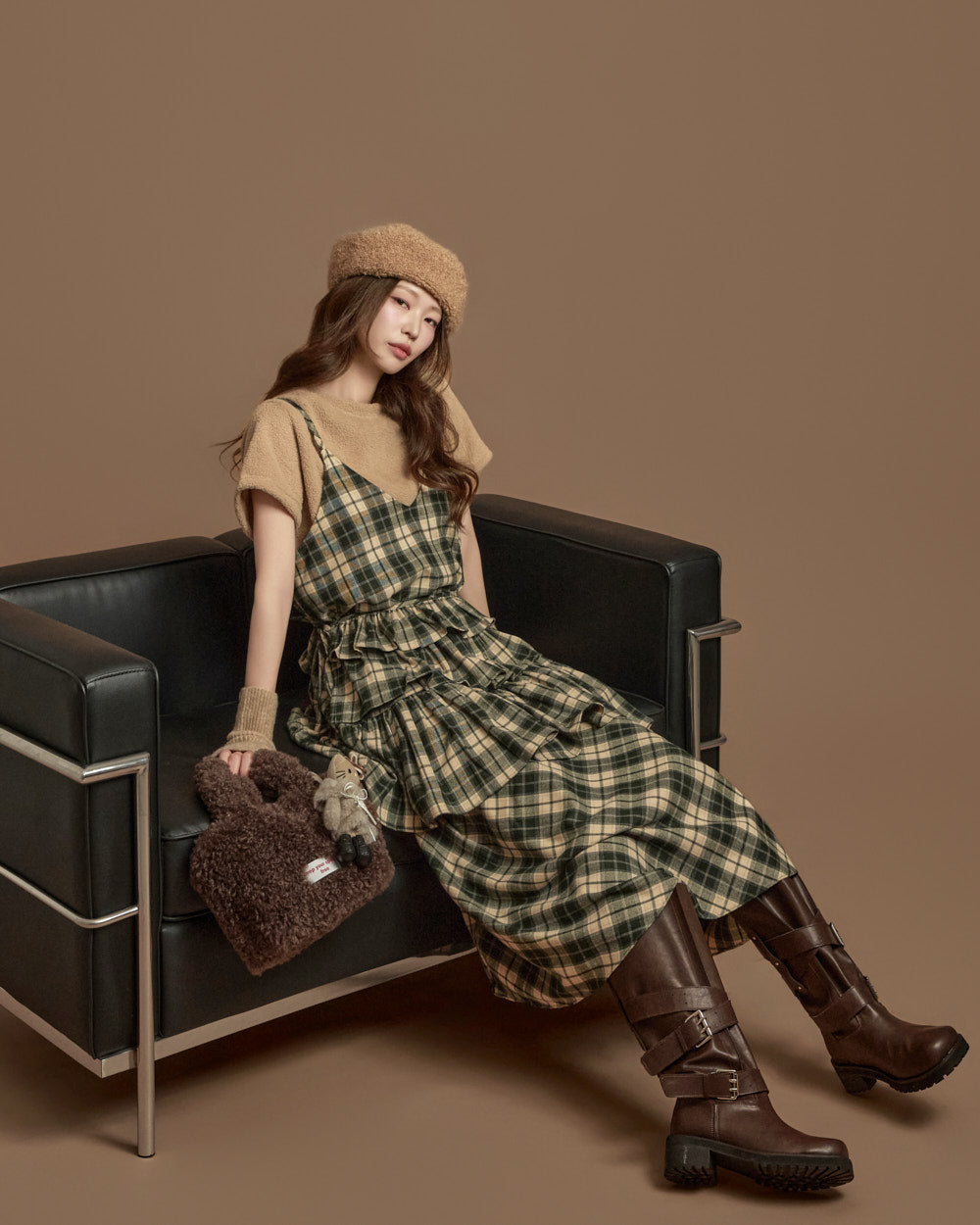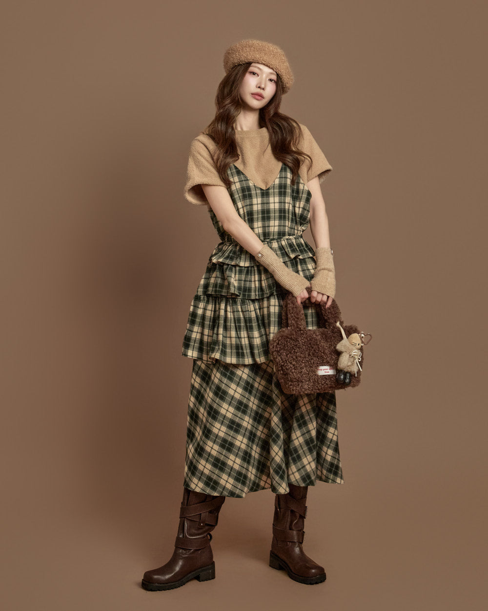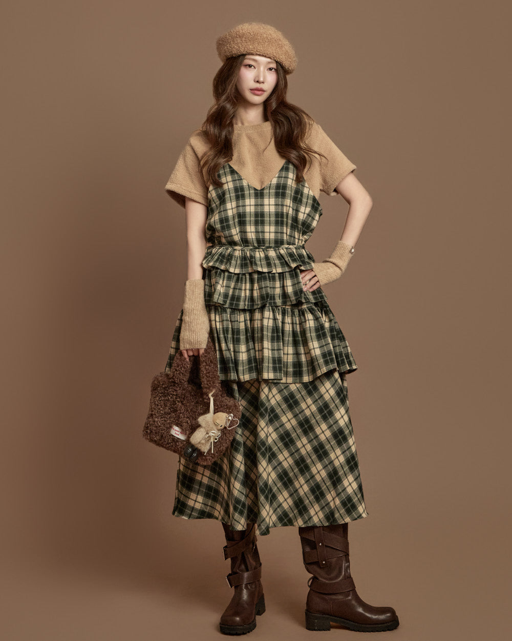 The check-patterned frill skirt and sleeveless dress