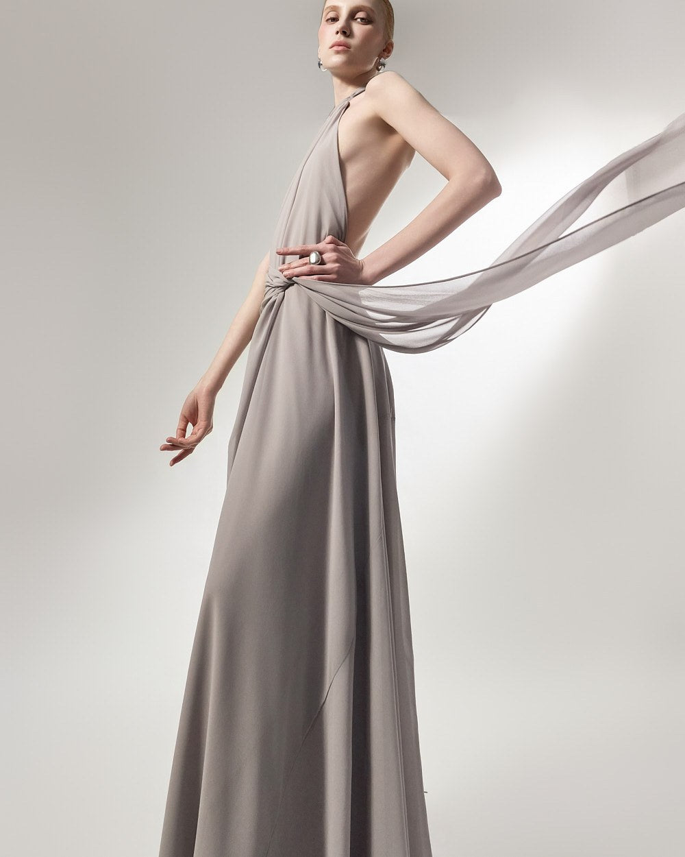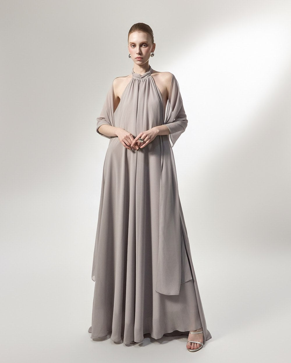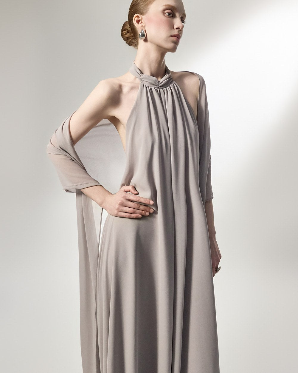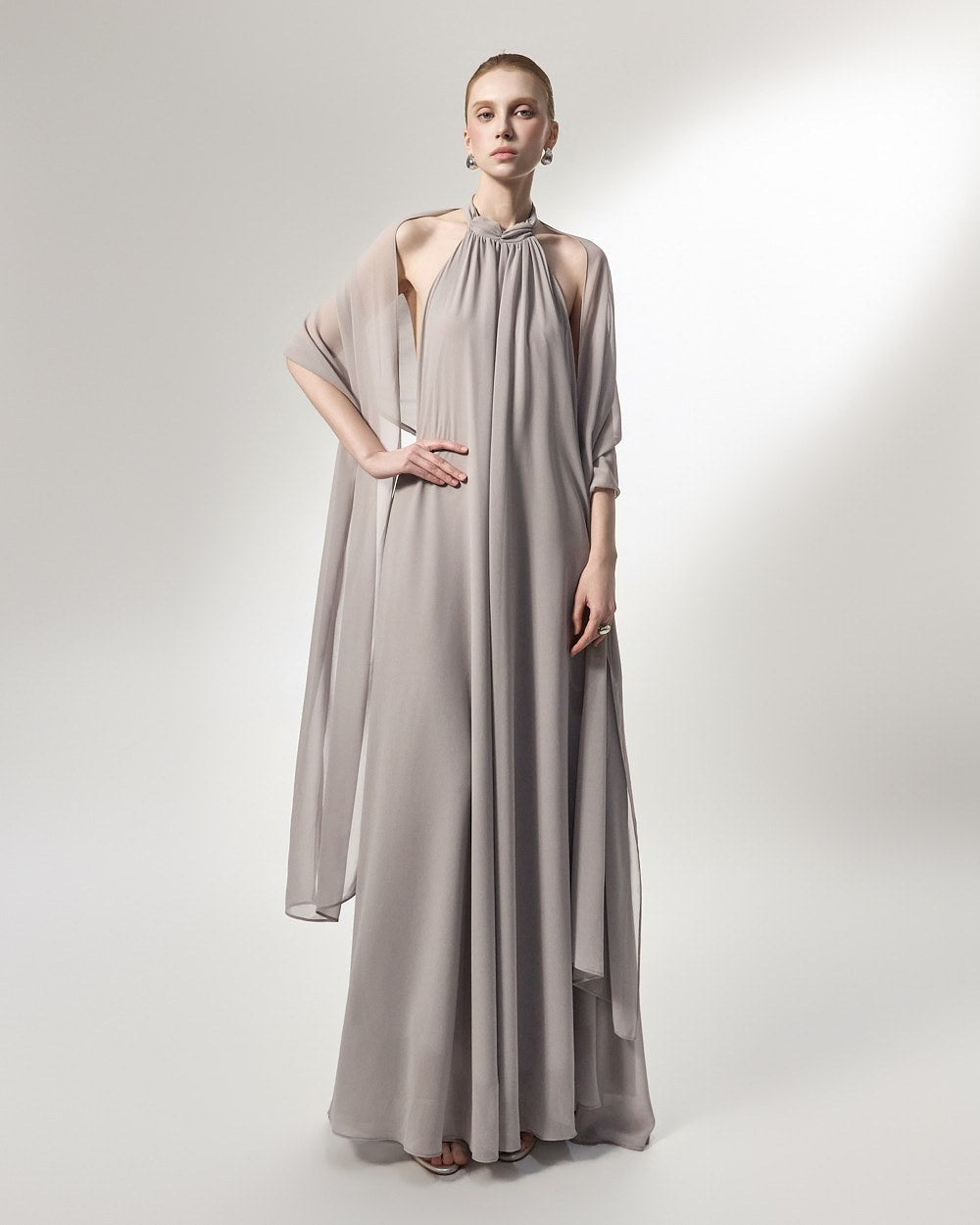 the softly flowing silhouette adds a luxurious atmosphere,