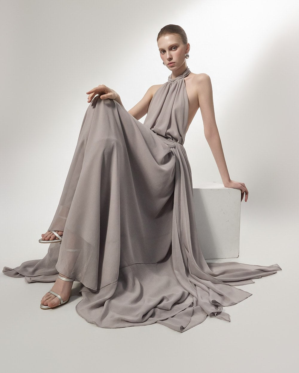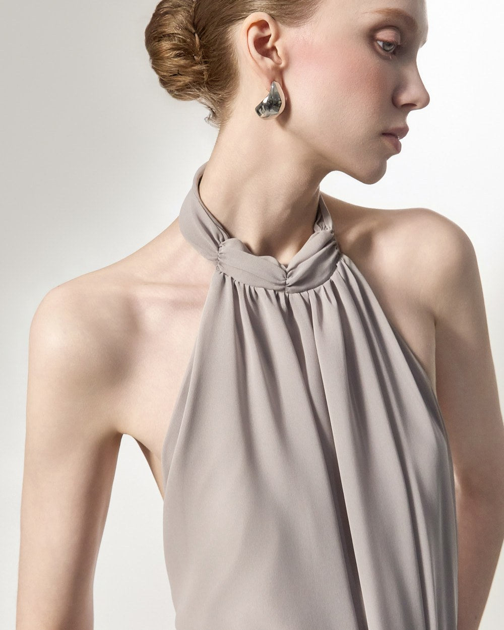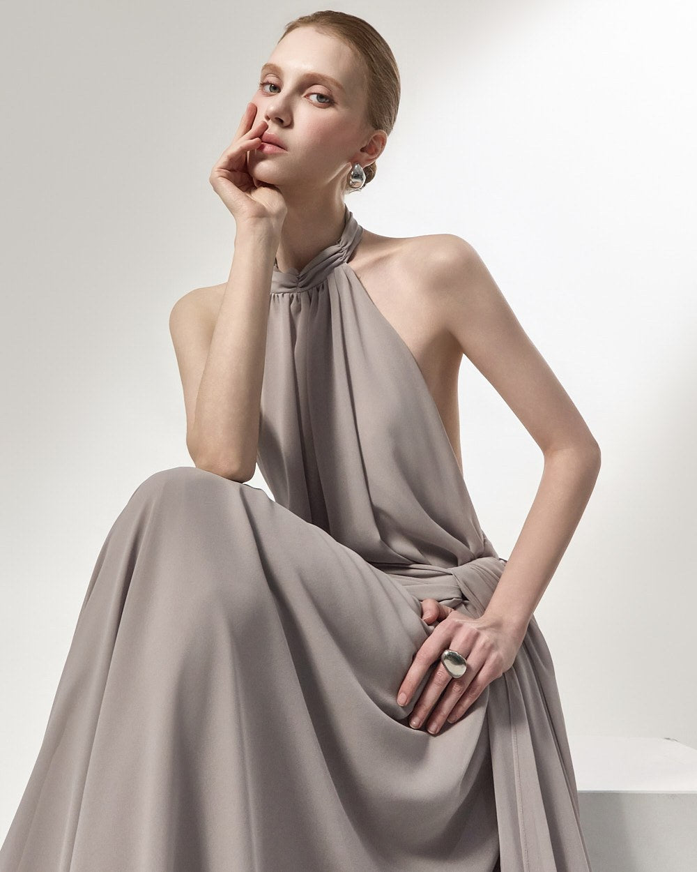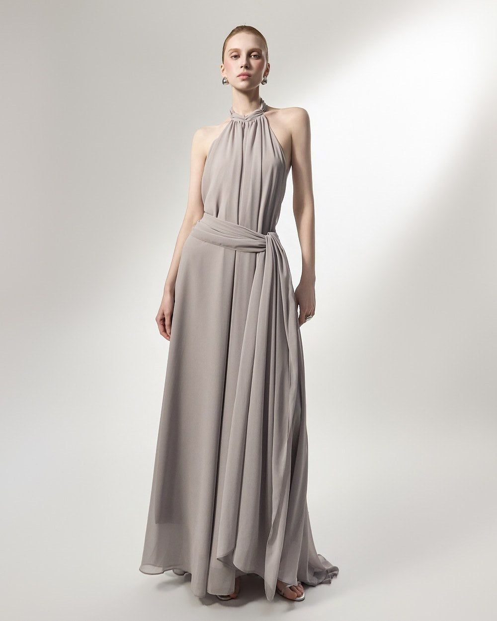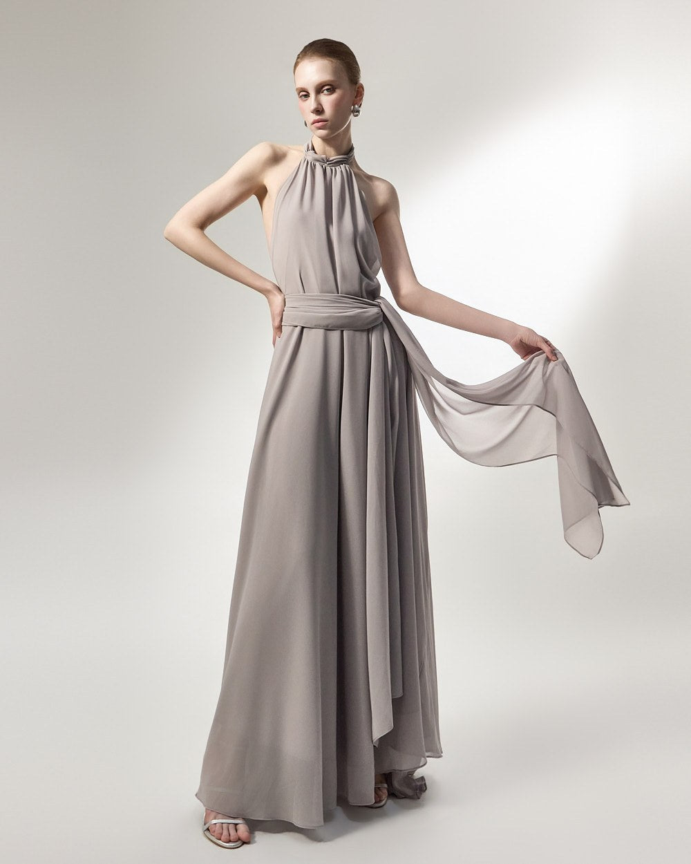 the softly flowing silhouette adds a luxurious atmosphere,