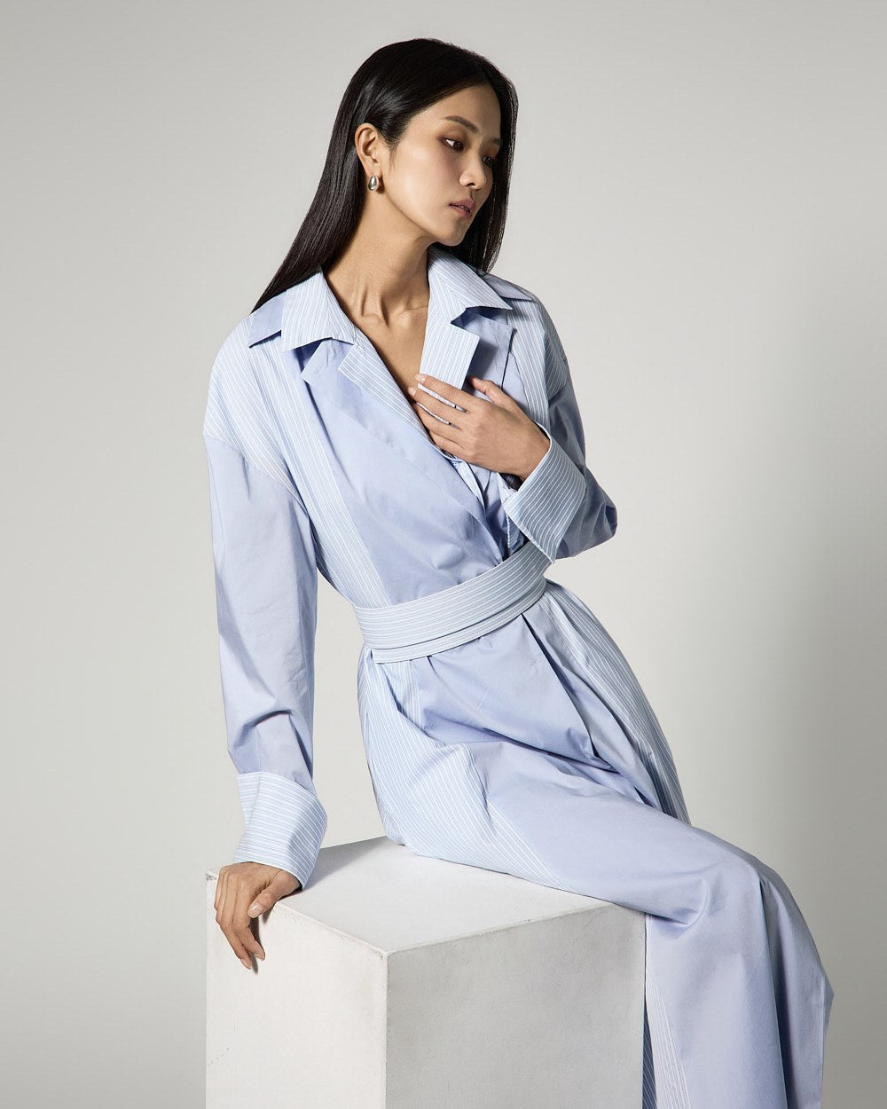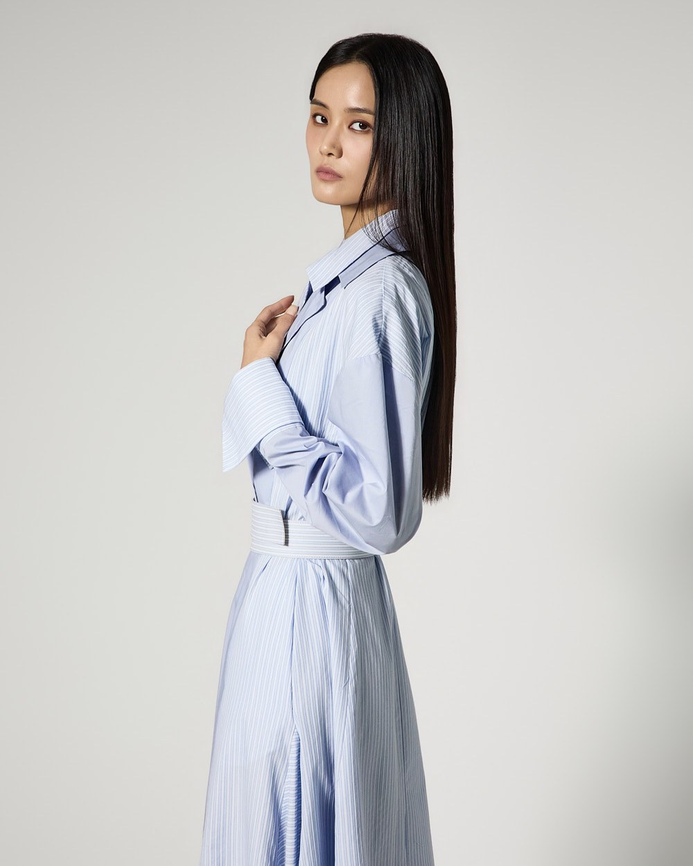 モデル身長173cm、SKY BLUEのSサイズを着用。