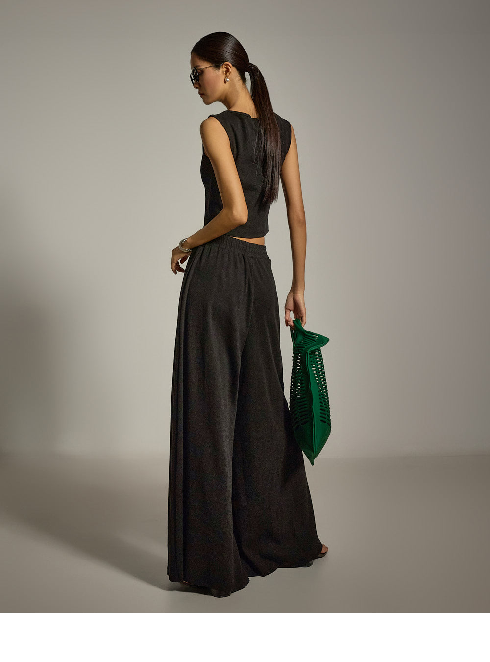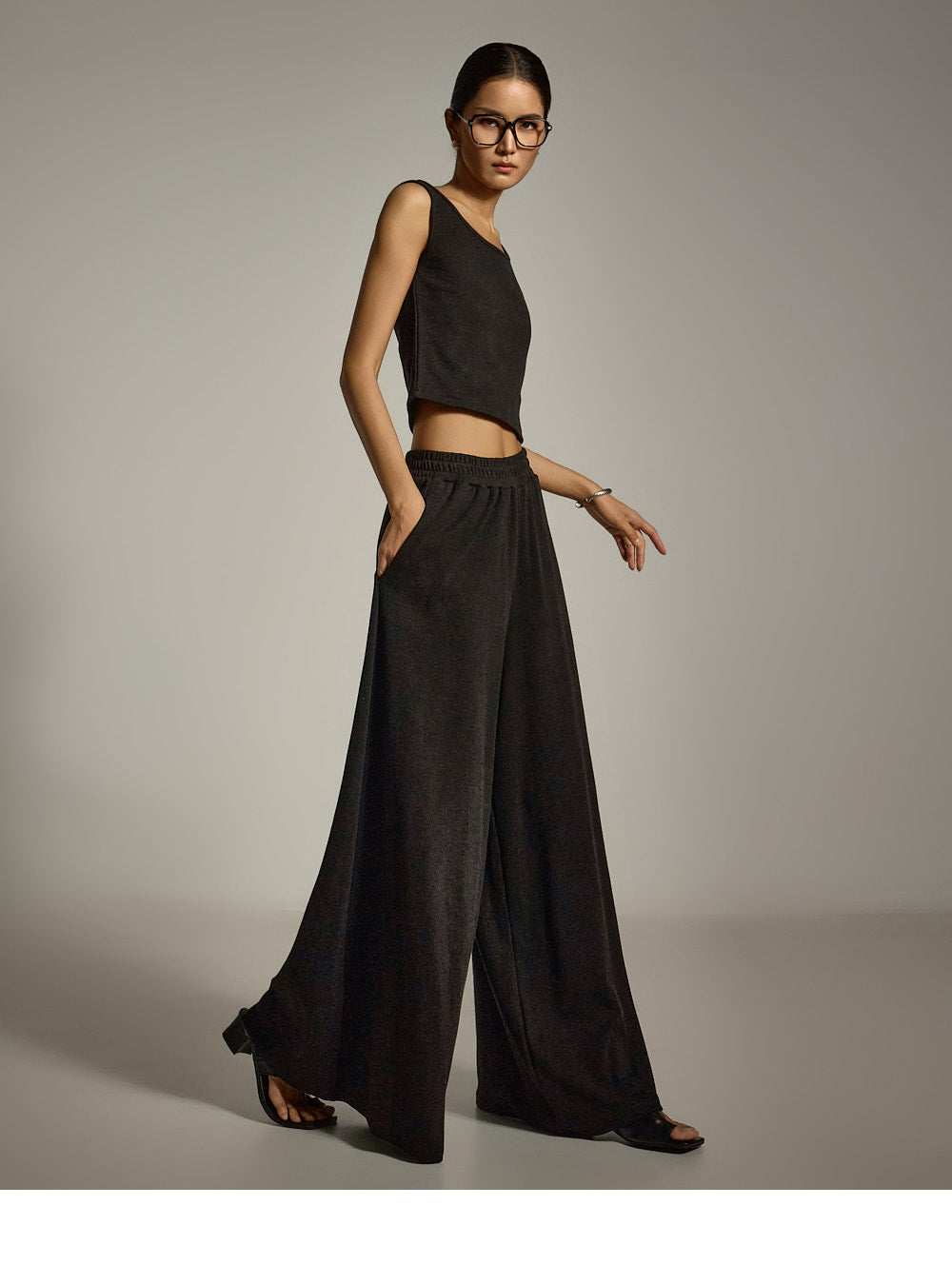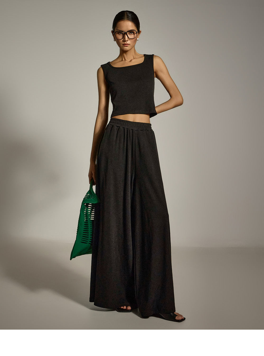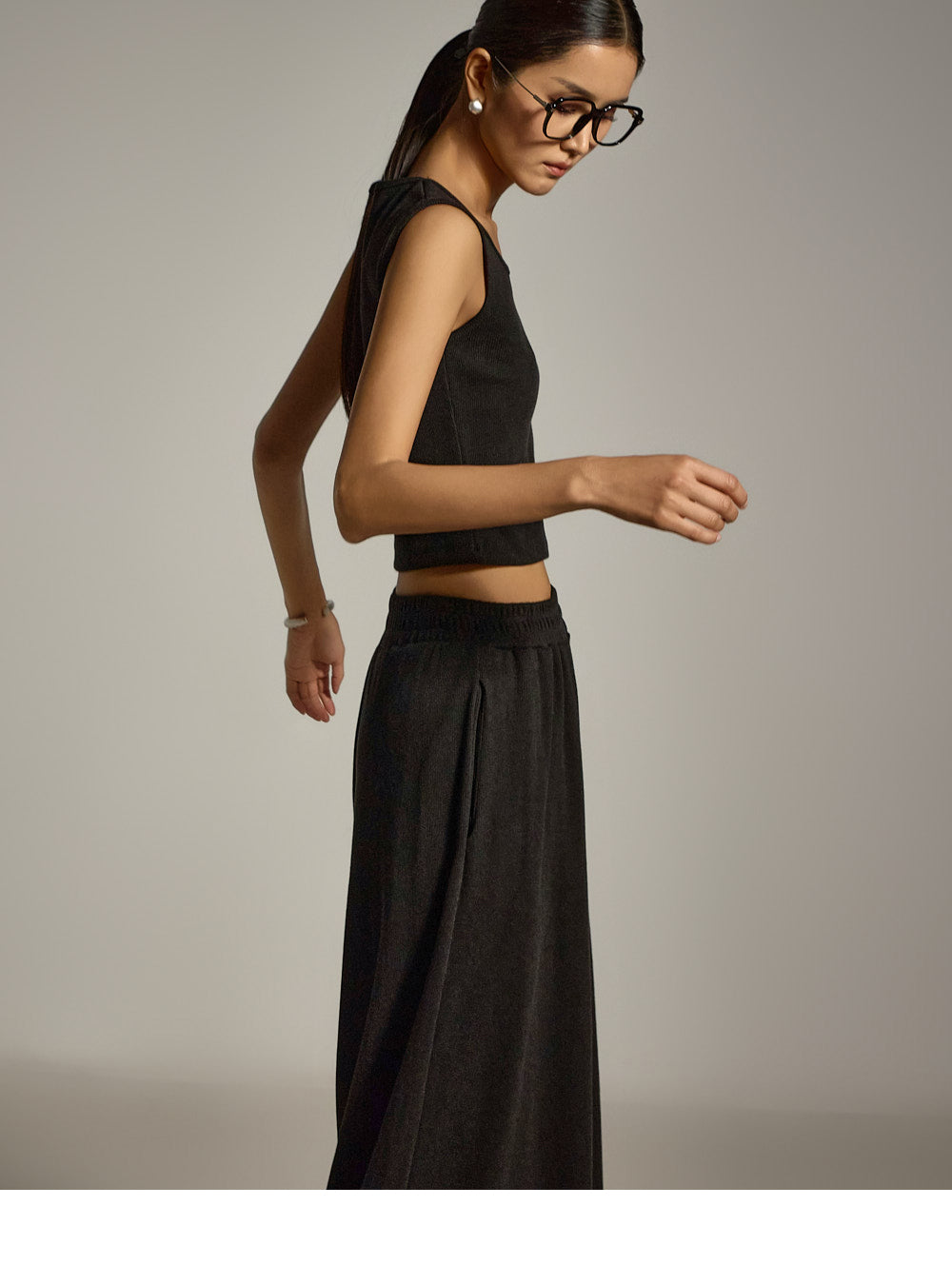 スクエアネックとクロップド丈がシンプルながらもスタイリッシュなシルエットを演出します。