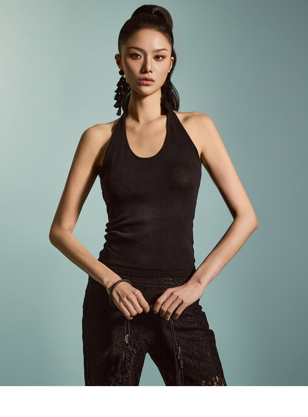 ベーシックで着回し力抜群のホルターネックノースリーブトップスです。