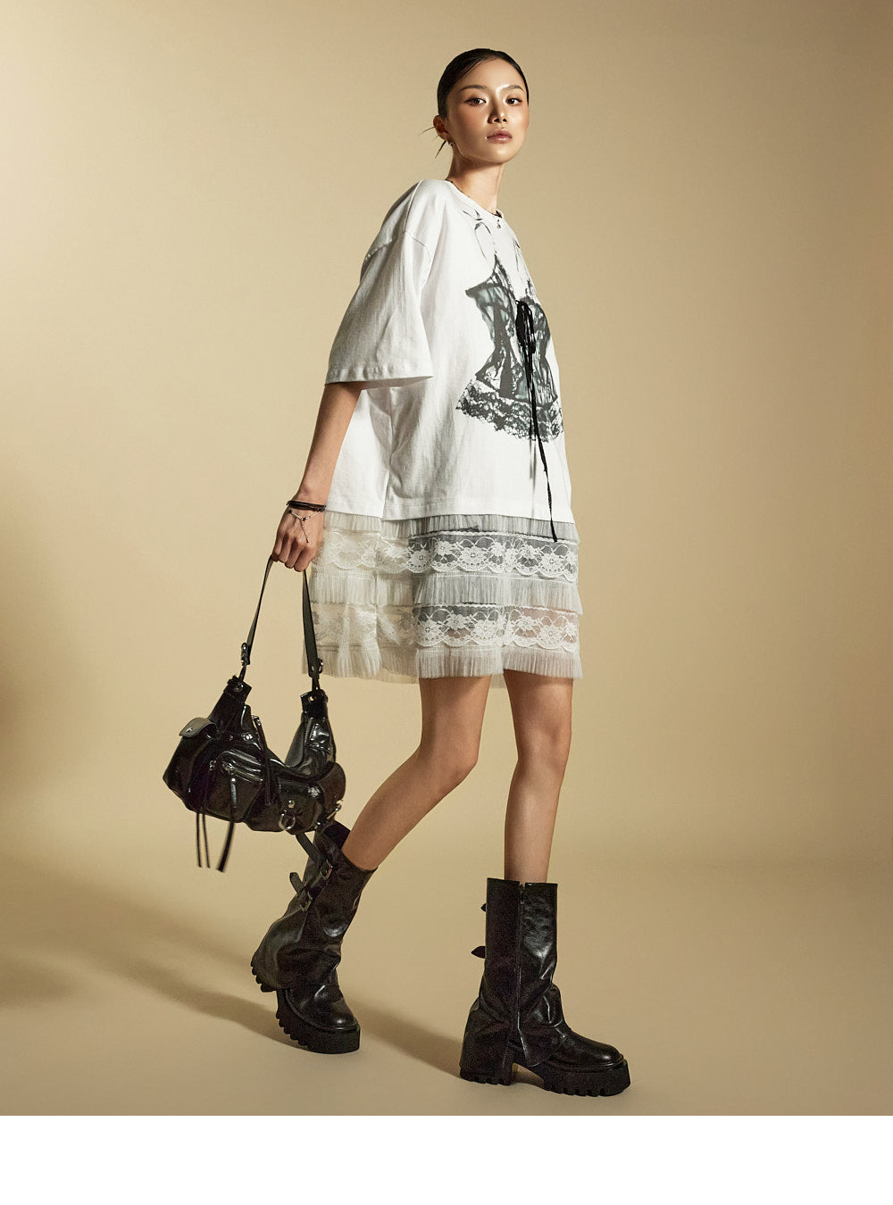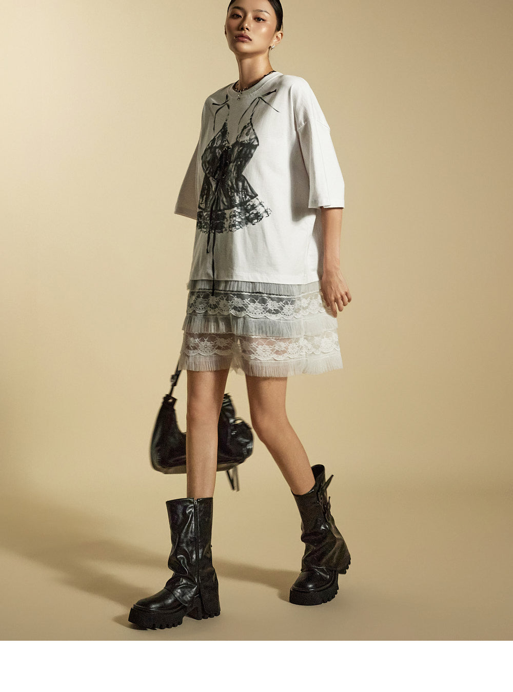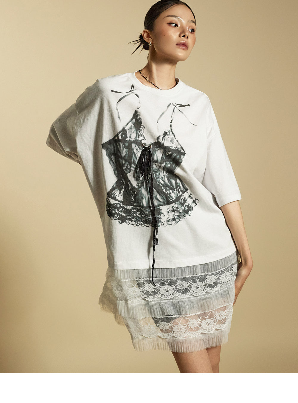 while the sheer lace hem enhances its unique style.