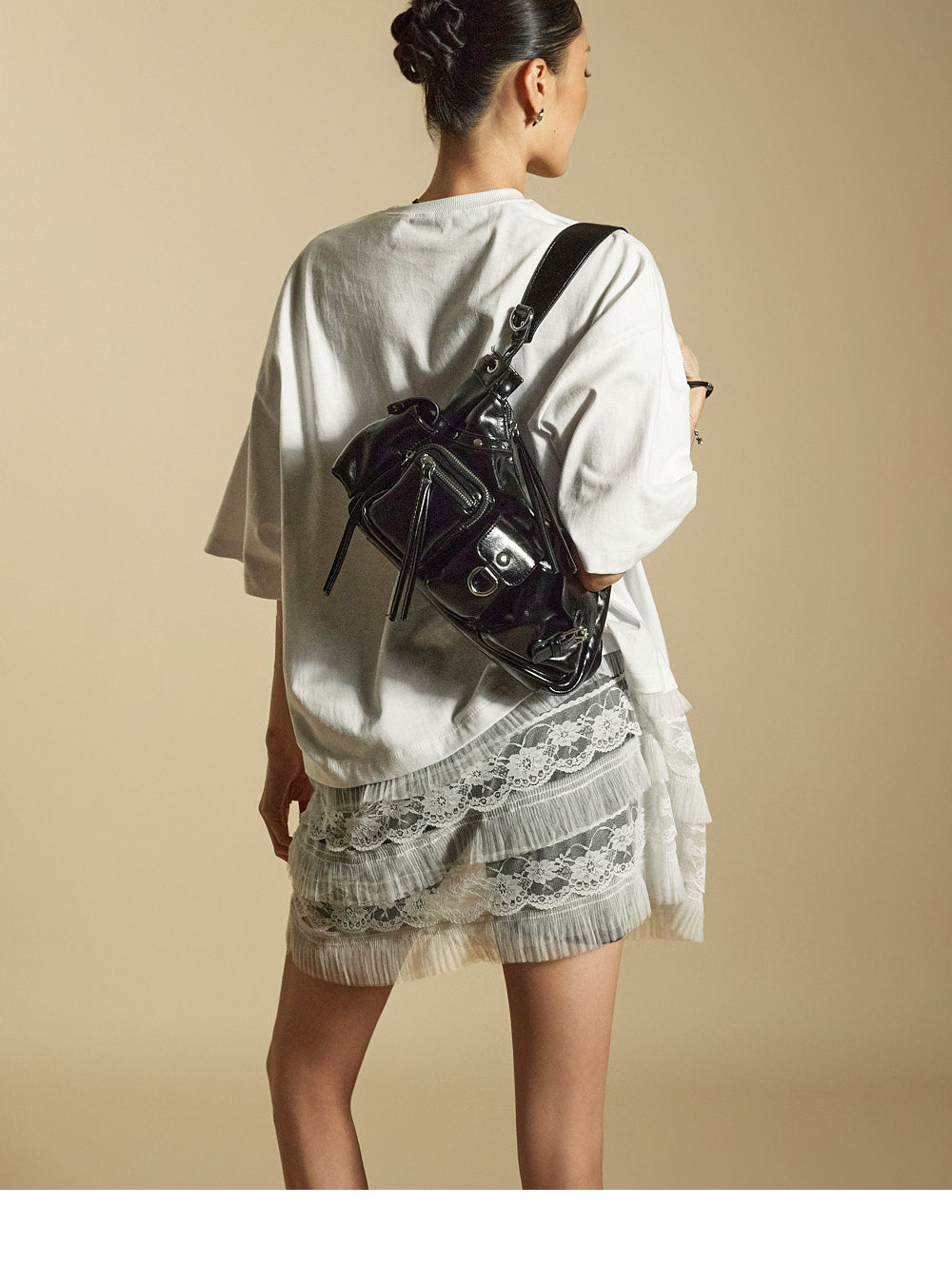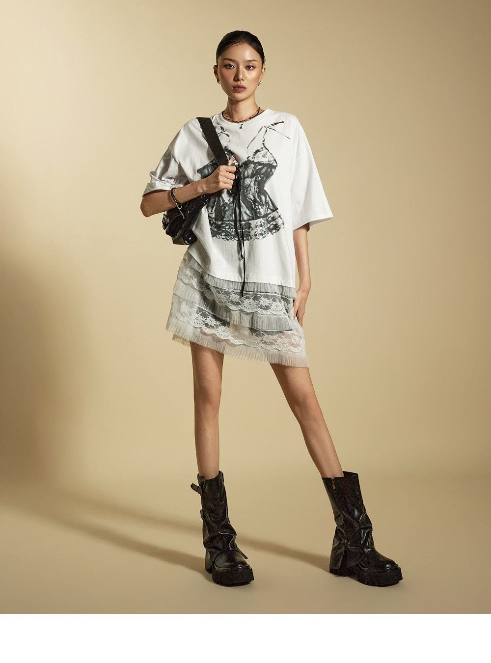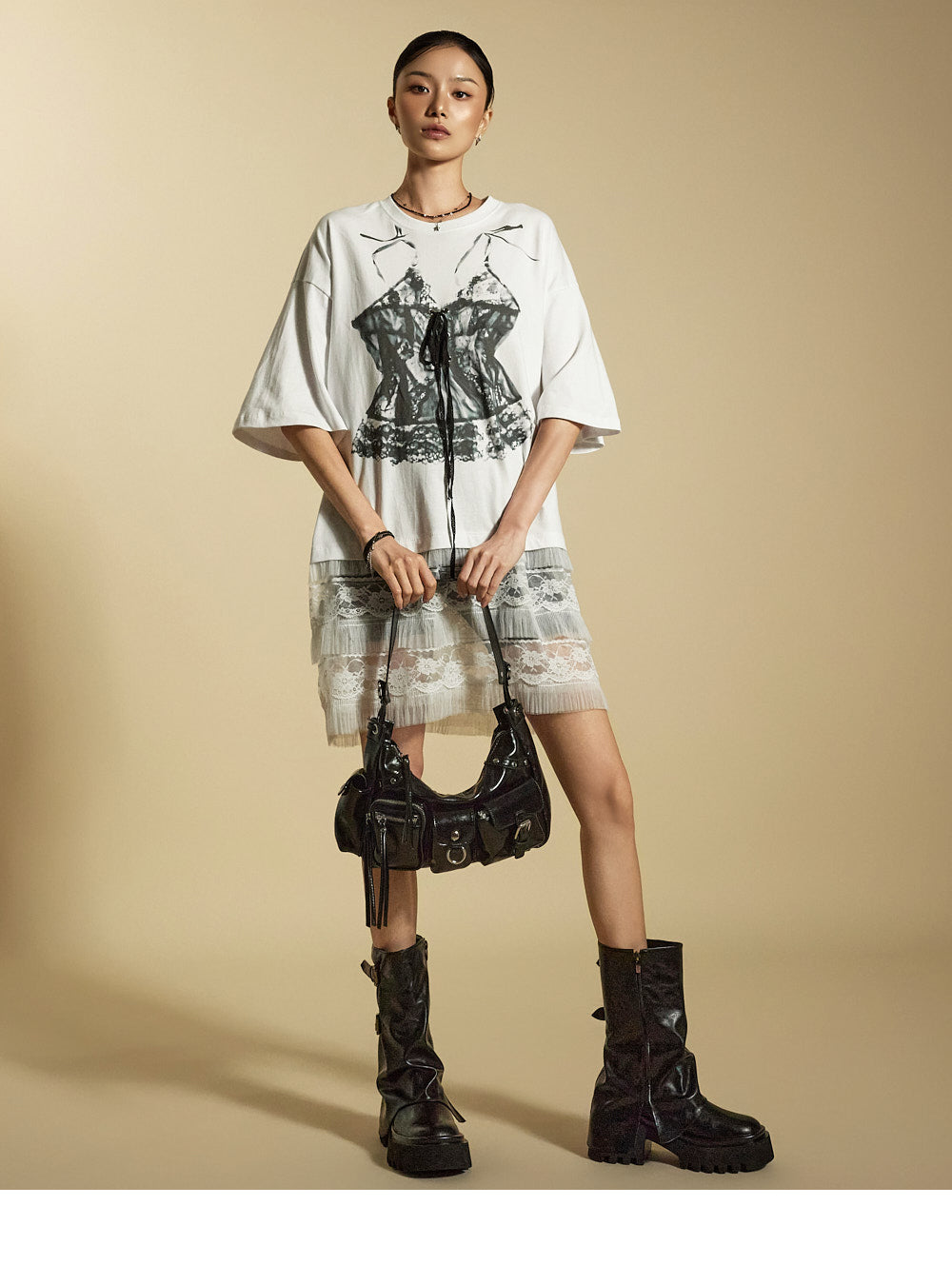 while the sheer lace hem enhances its unique style.