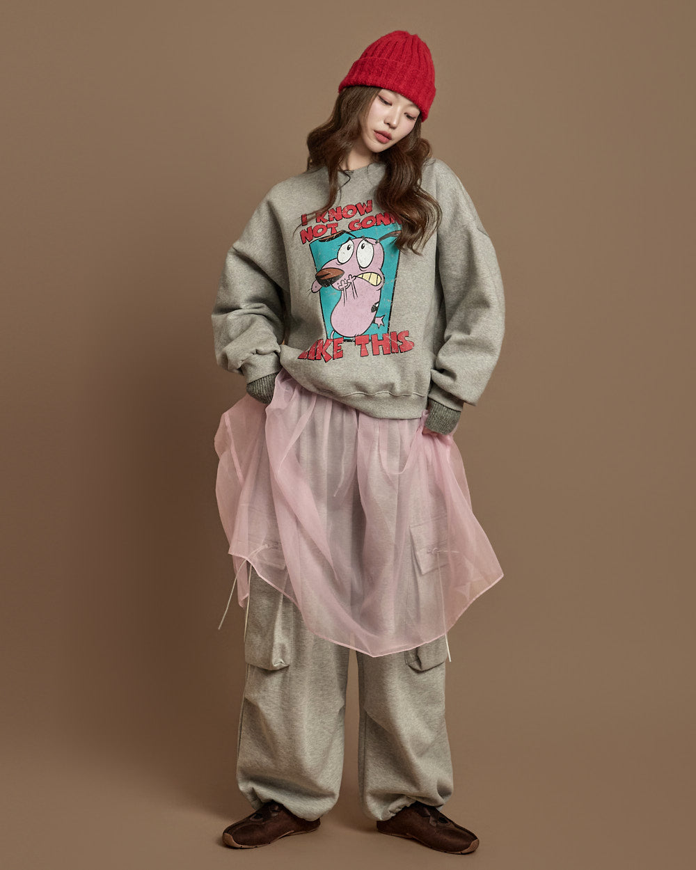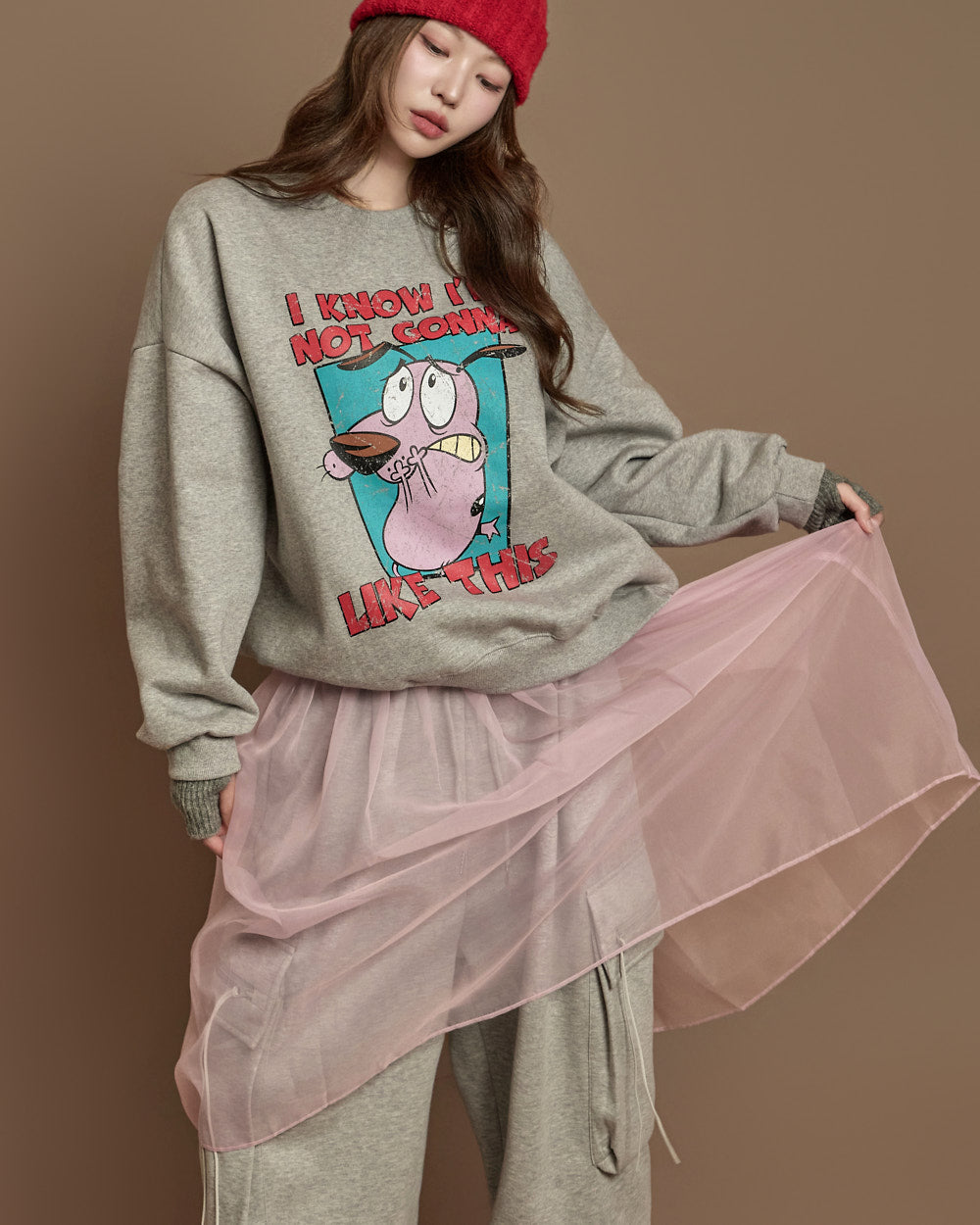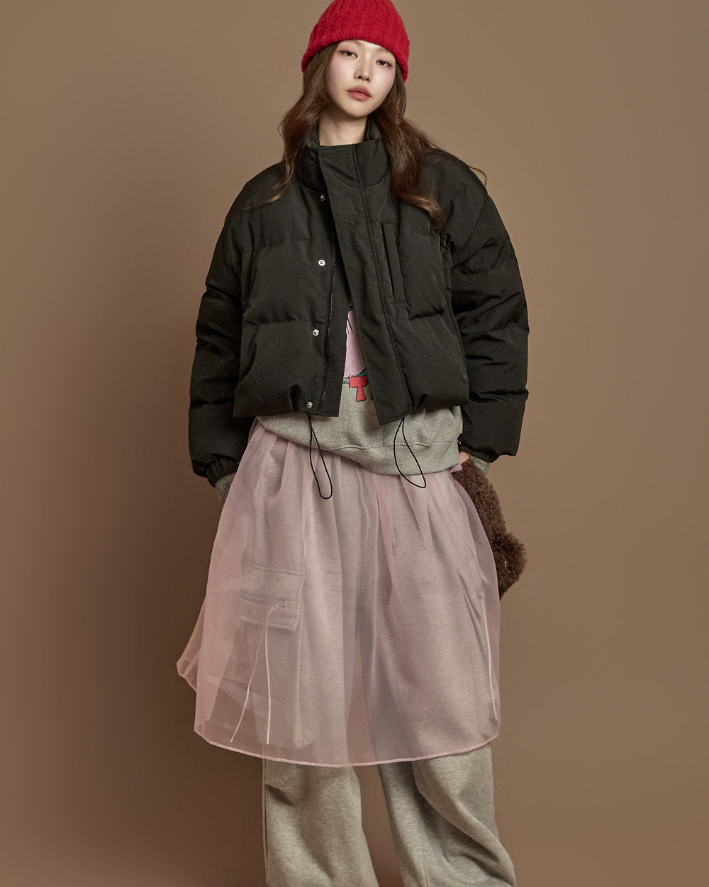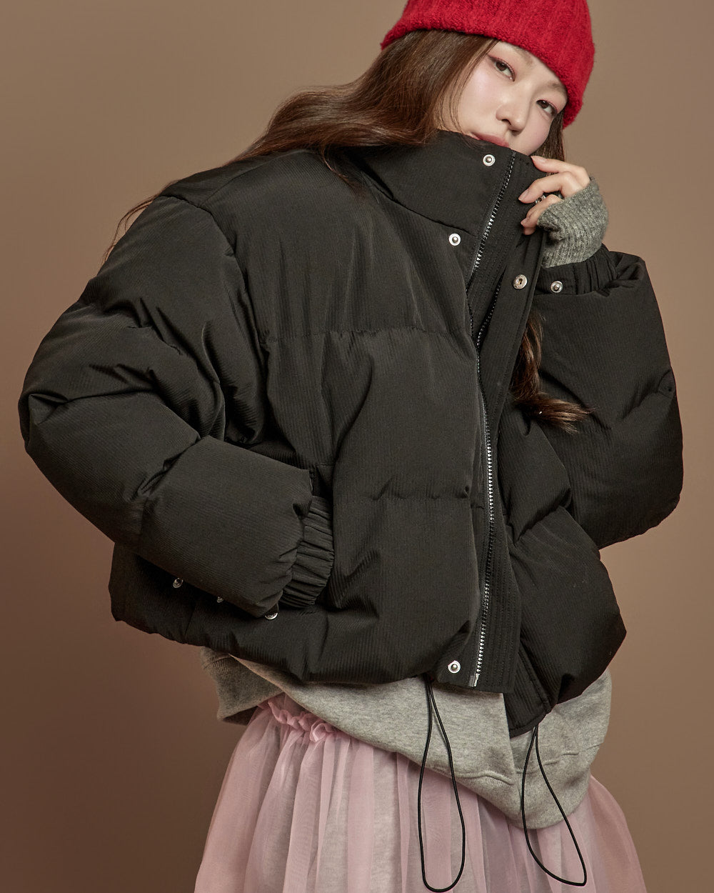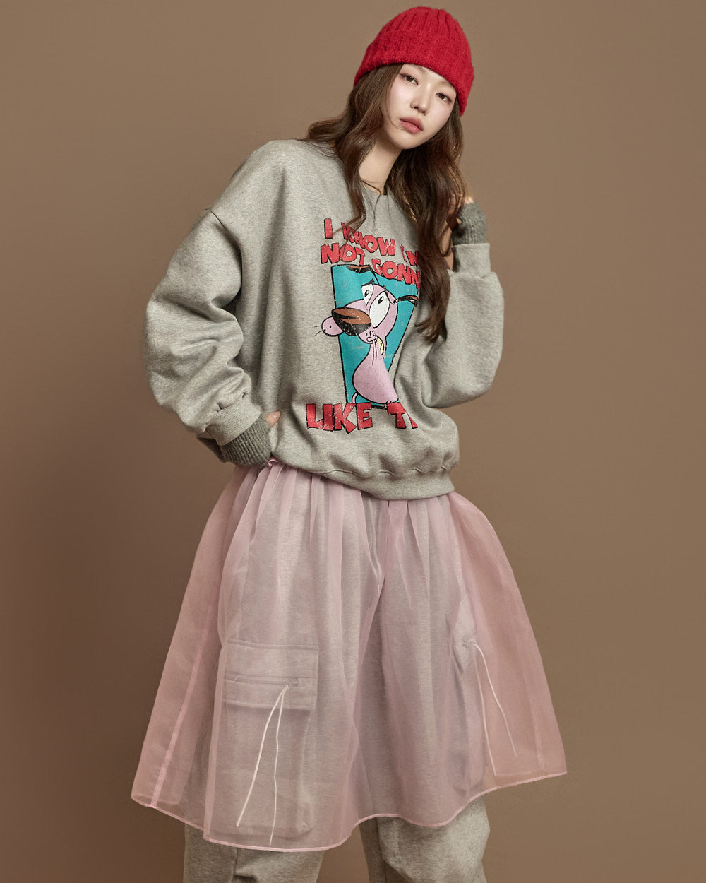 The 171cm model is wearing size ONE, in GRAY.