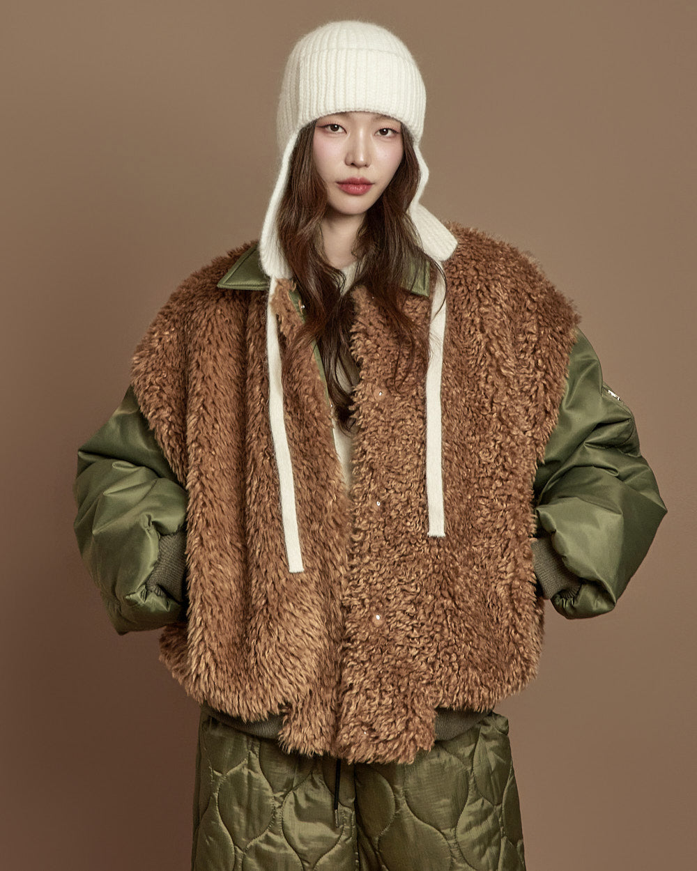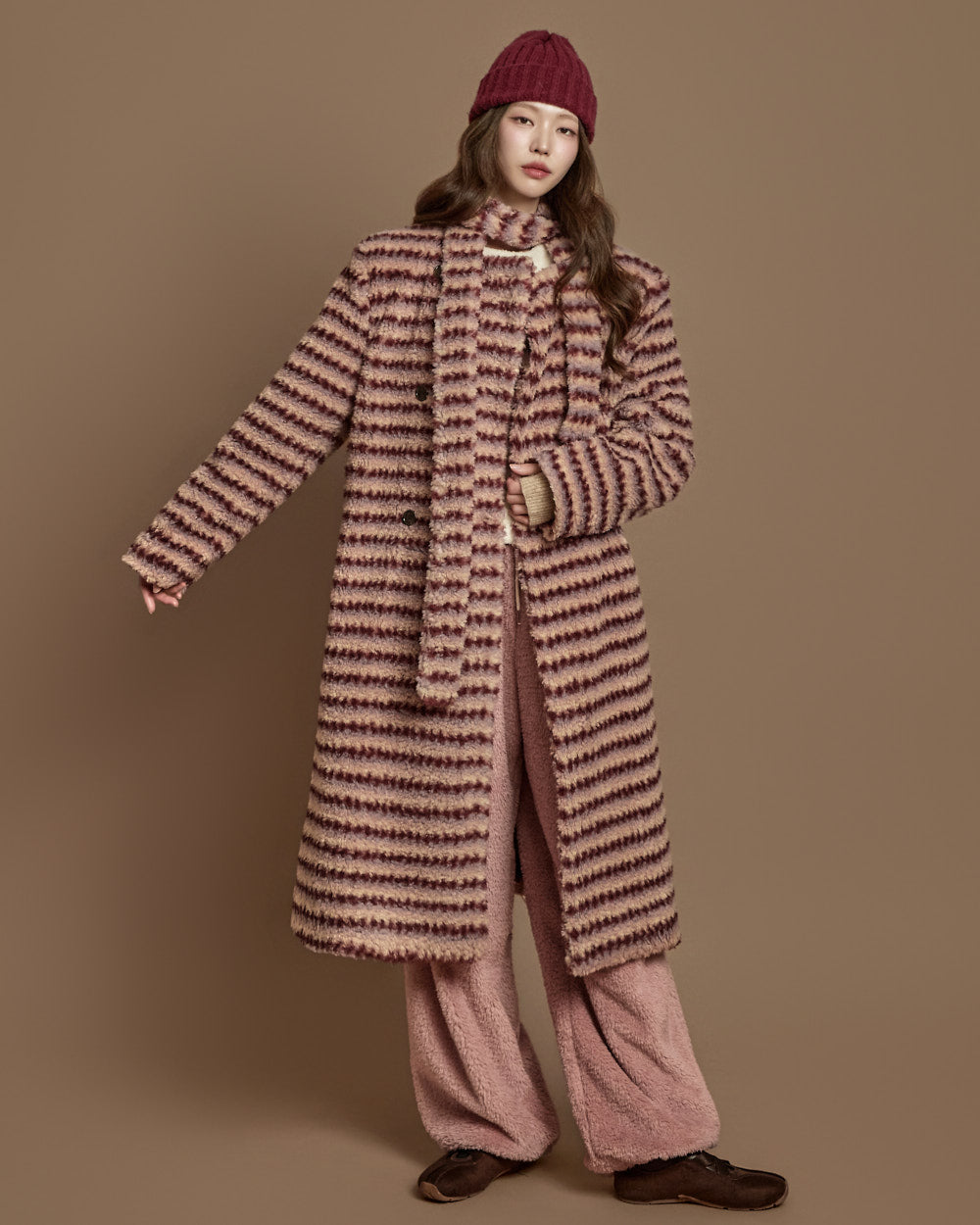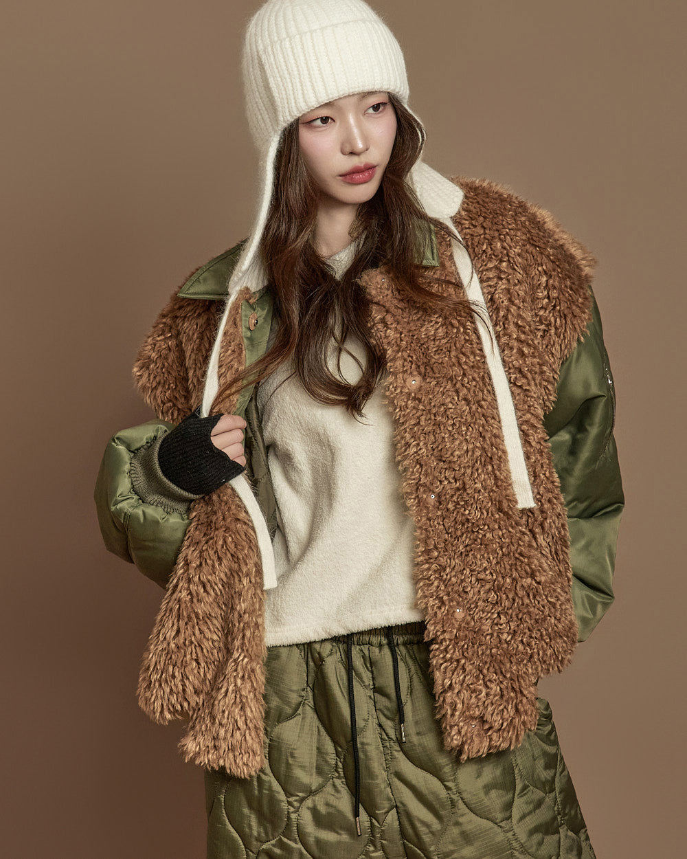 The basic fit is complemented by boucle fur texture,