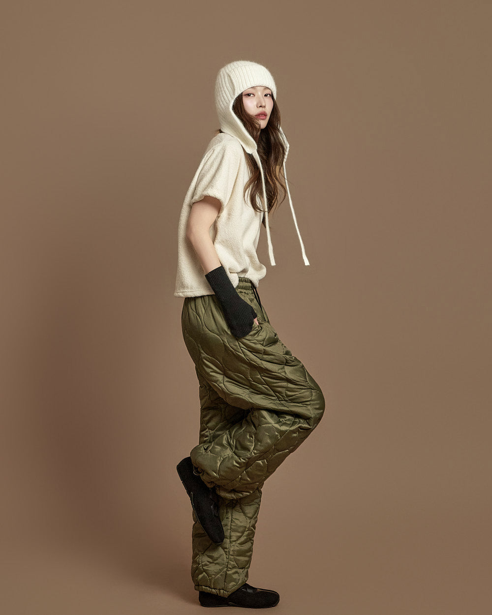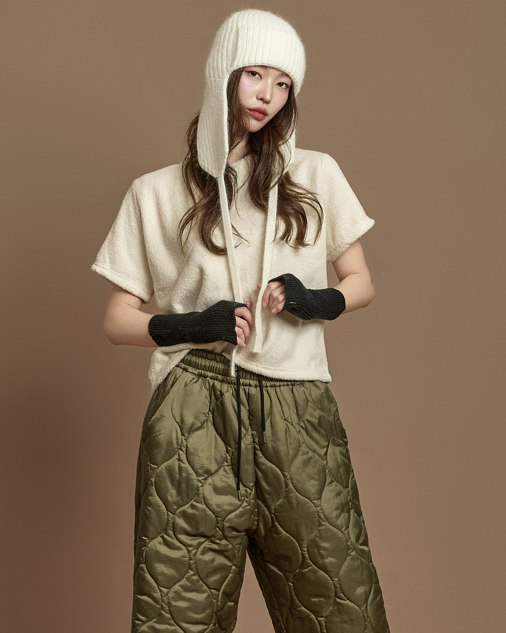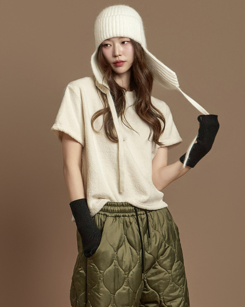 The 171cm model is wearing size ONE in IVORY.