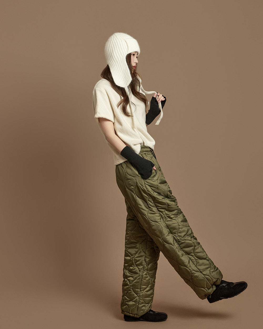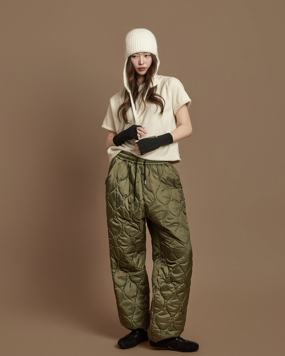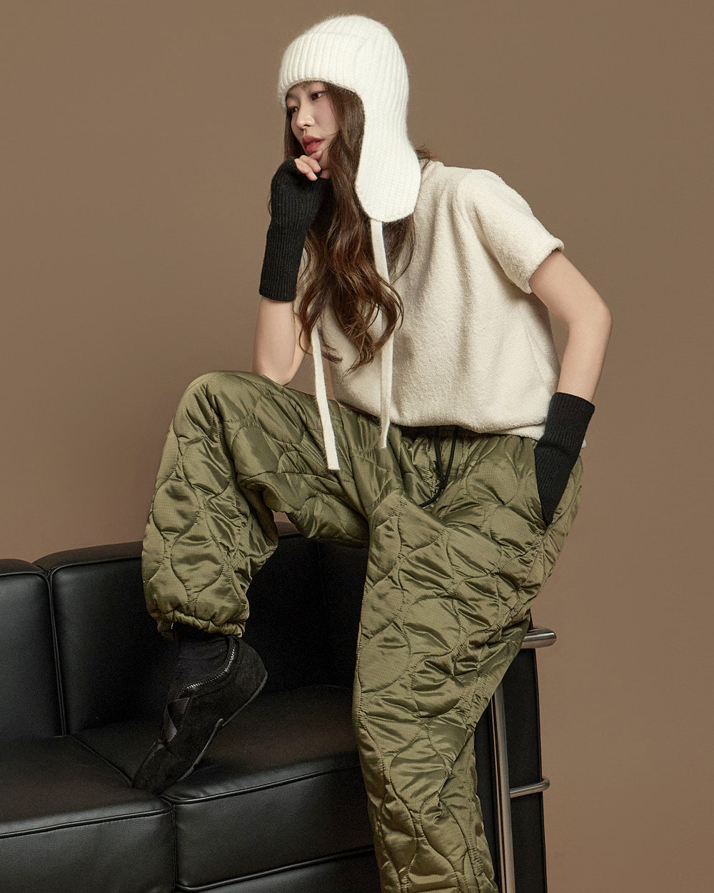The 171cm model is wearing size ONE in IVORY.