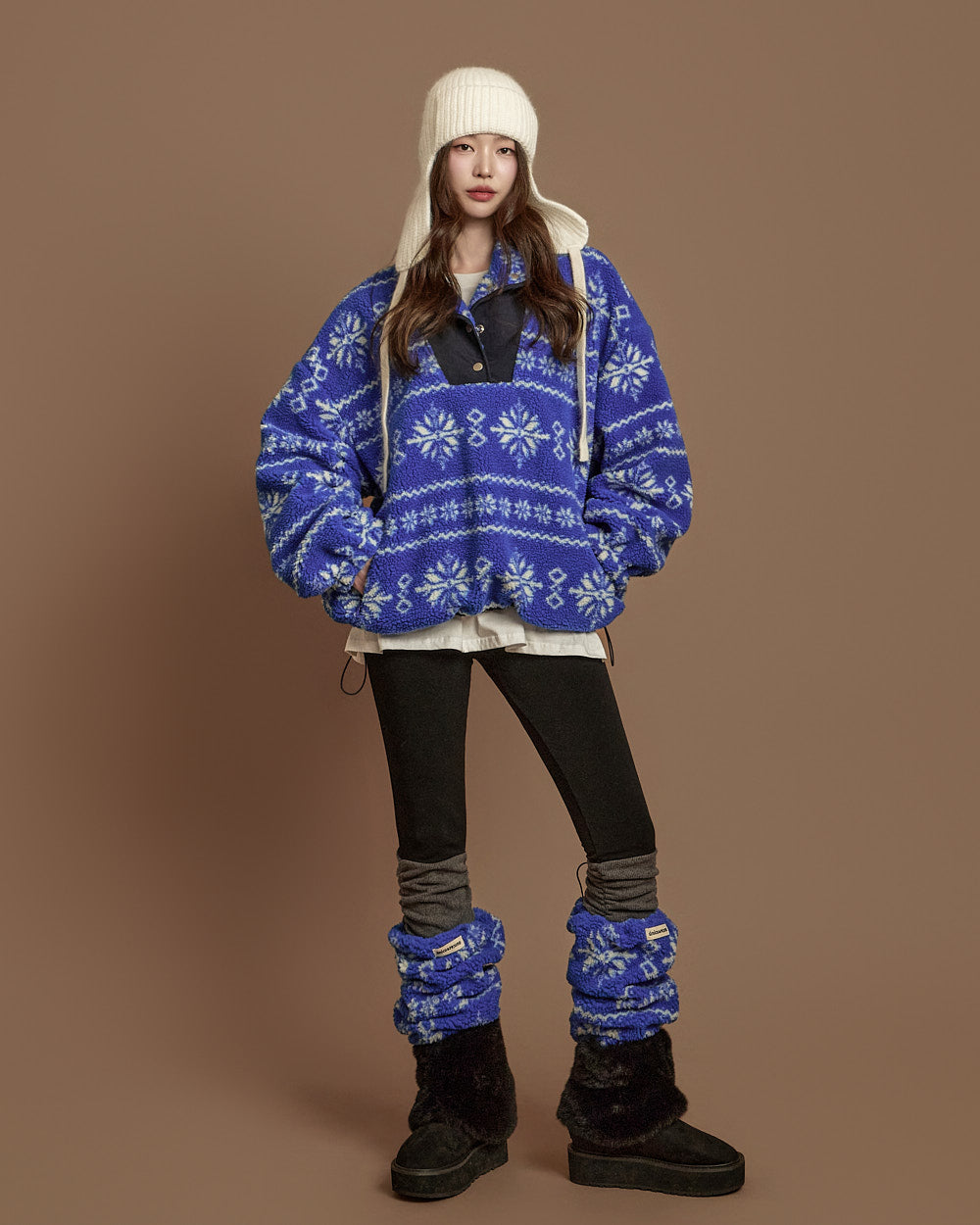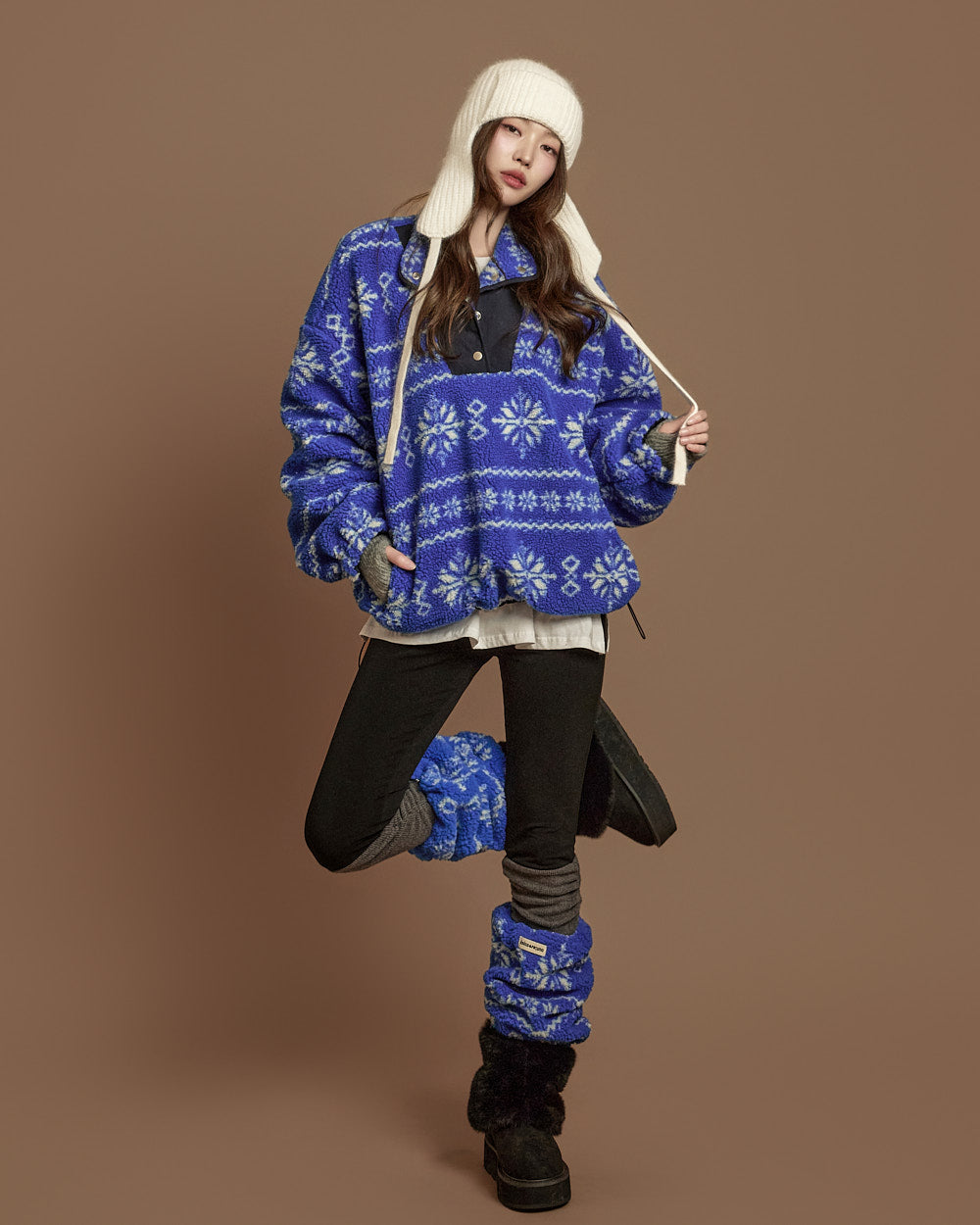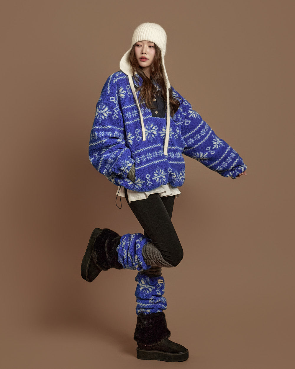 The front snap button half-zip closure and drawstring hem allow for an adjustable fit,