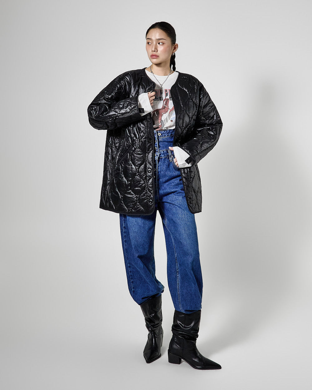 This printed top exudes a vintage street vibe.