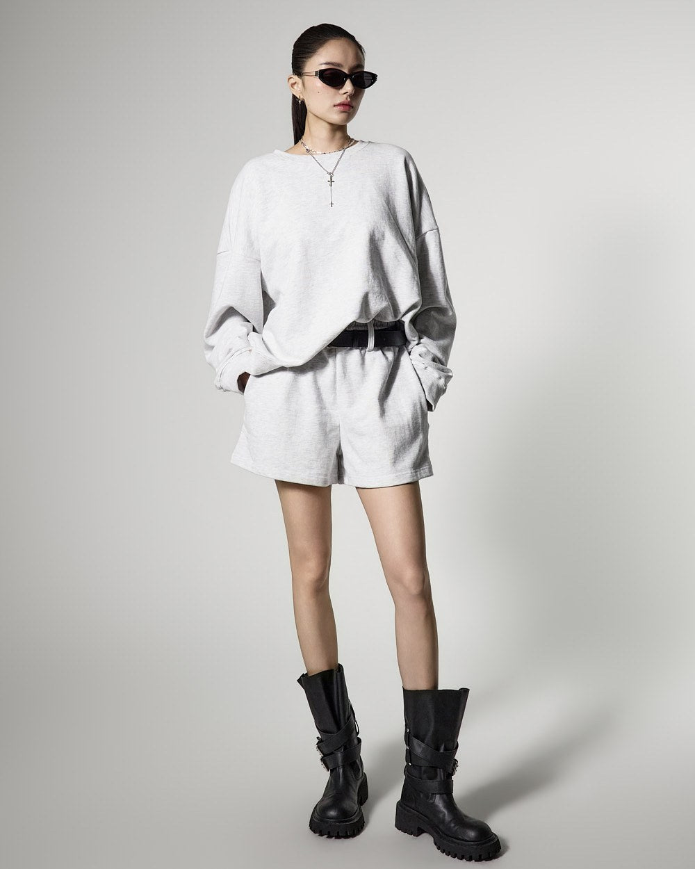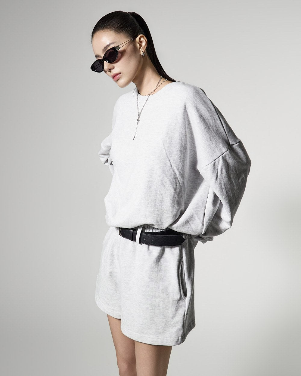 モデル(身長171cm)はメランジグレーのONEサイズを着用しています。