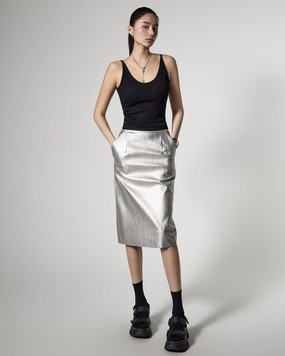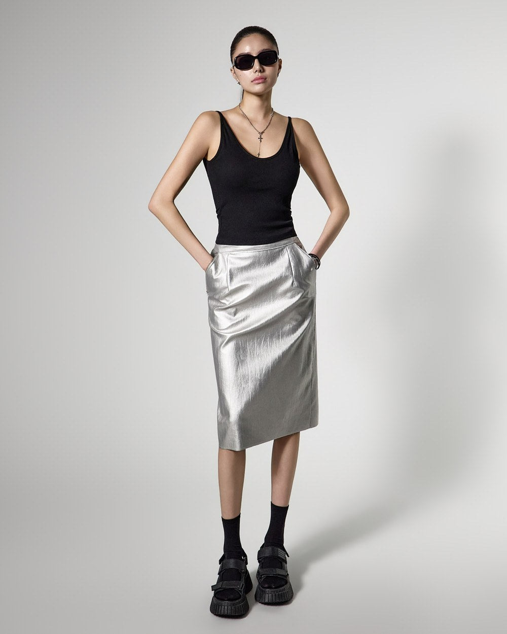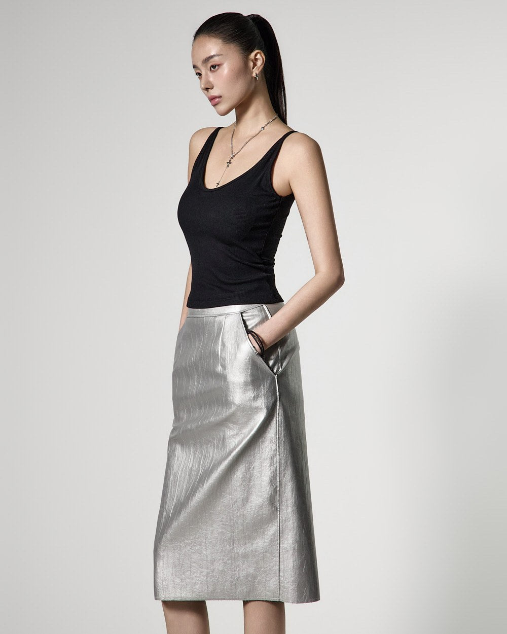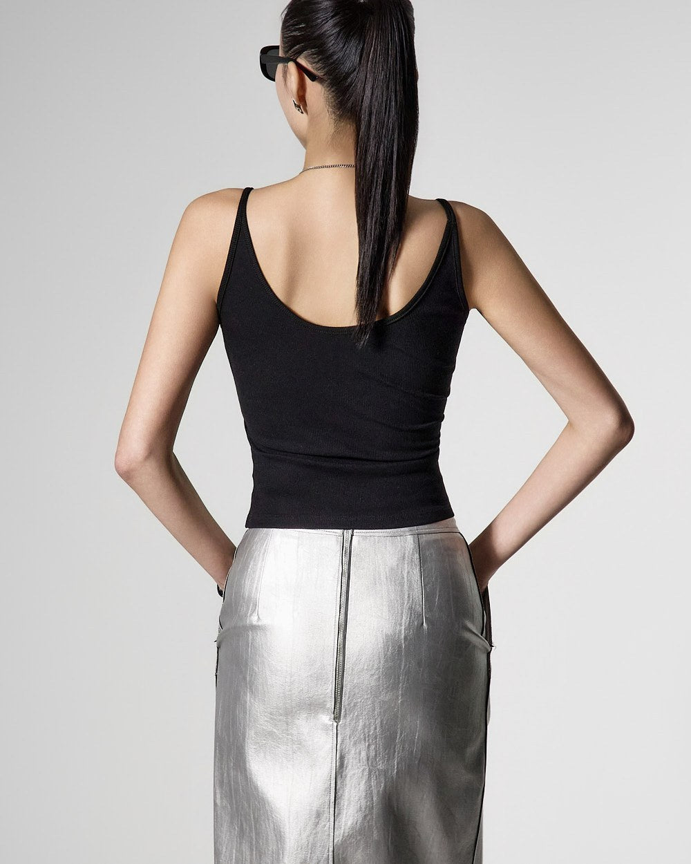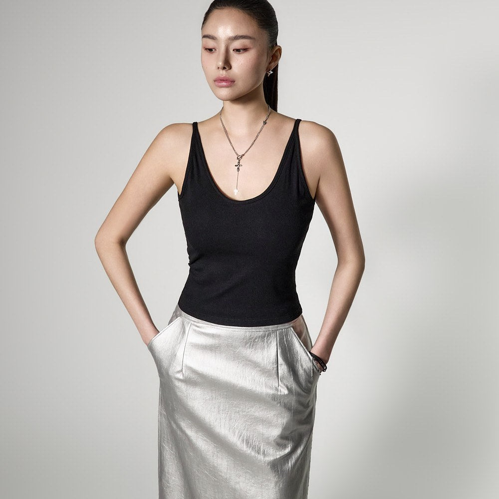 ミニマルで洗練された雰囲気のノースリーブトップスです。