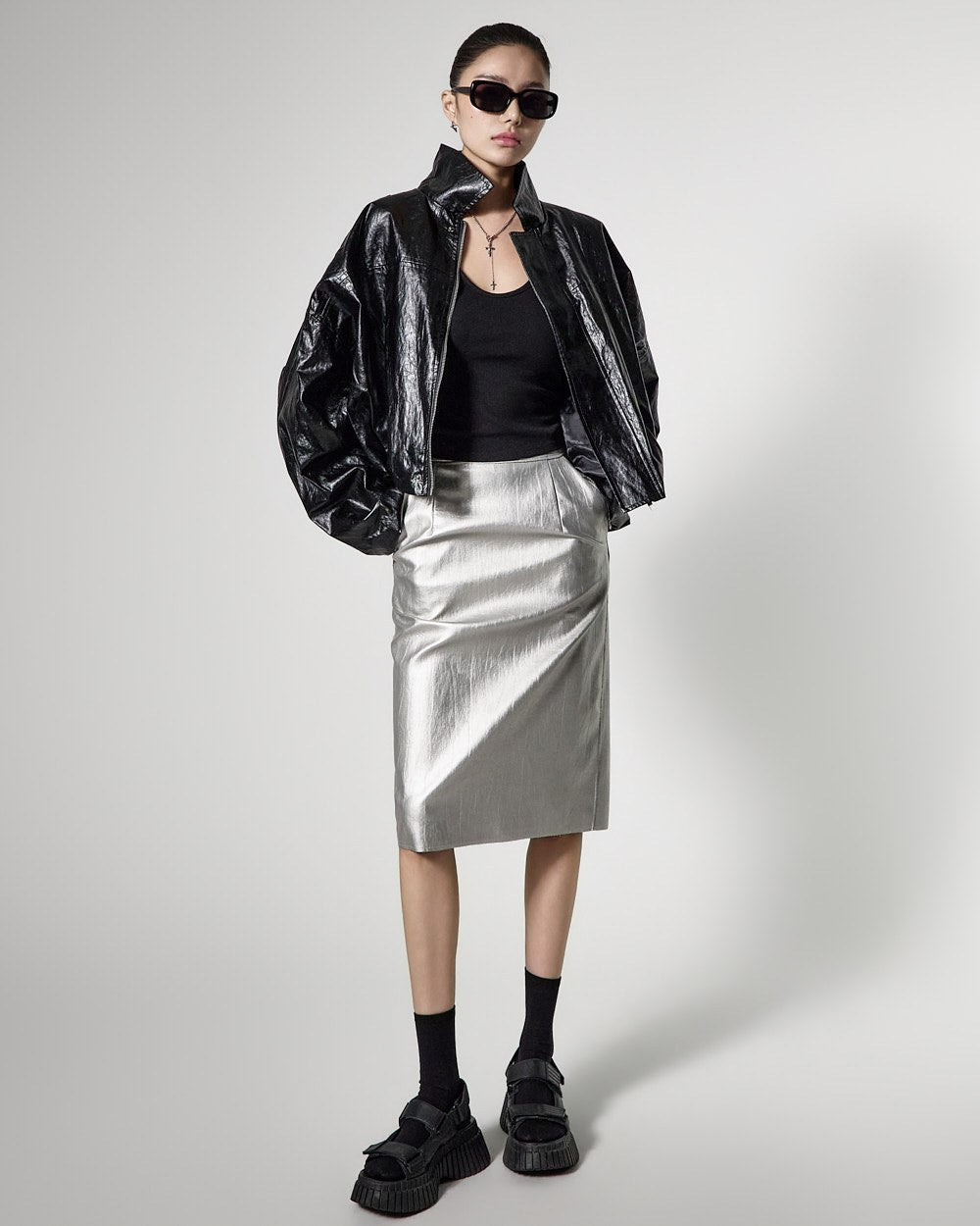 伸縮性があり、ボディラインをスリムに見せる効果があります。