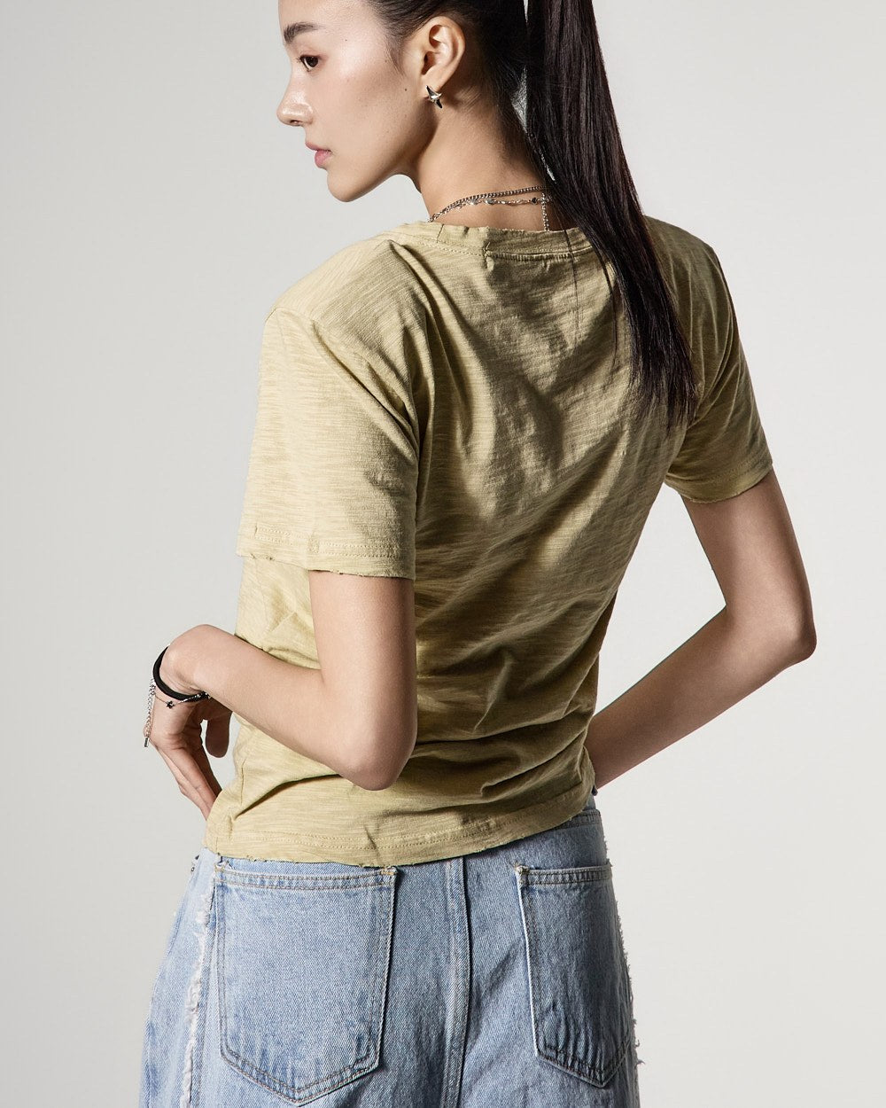 デイリーな雰囲気のベーシックなハーフ丈トップスです。