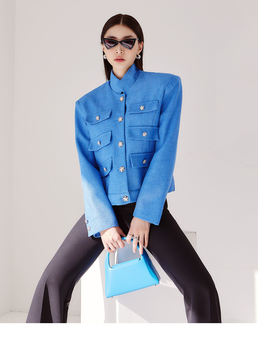 フロントのフェイクポケットデザインがスタイリッシュなコーディネートを演出します。