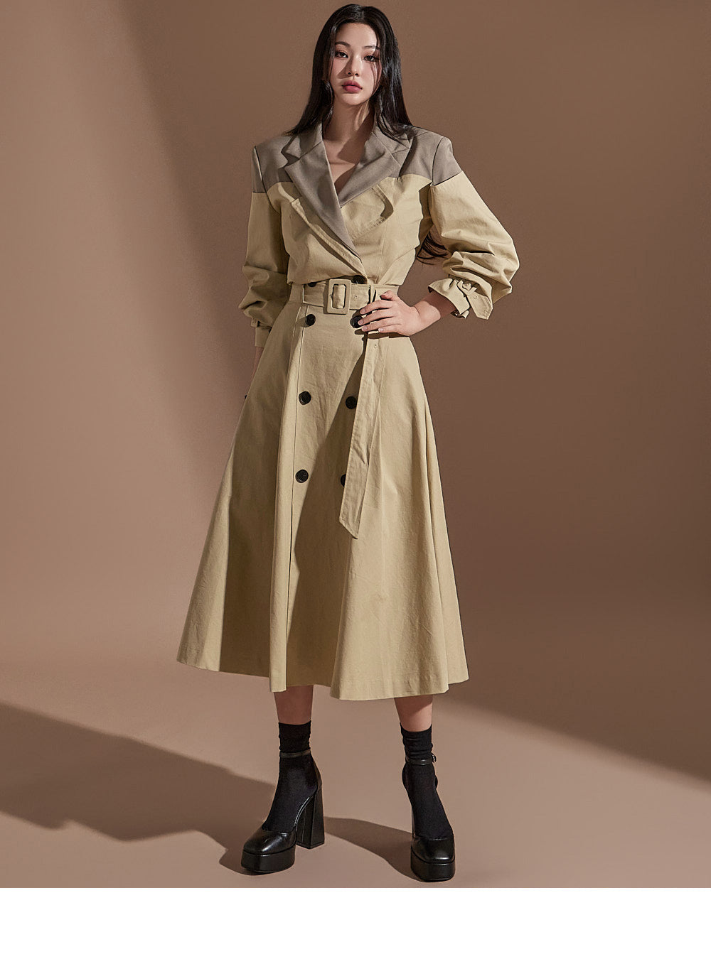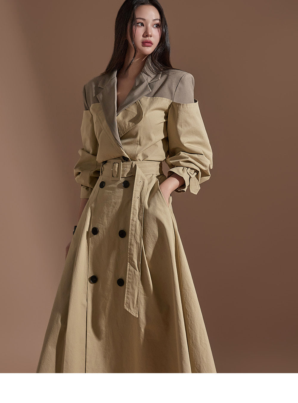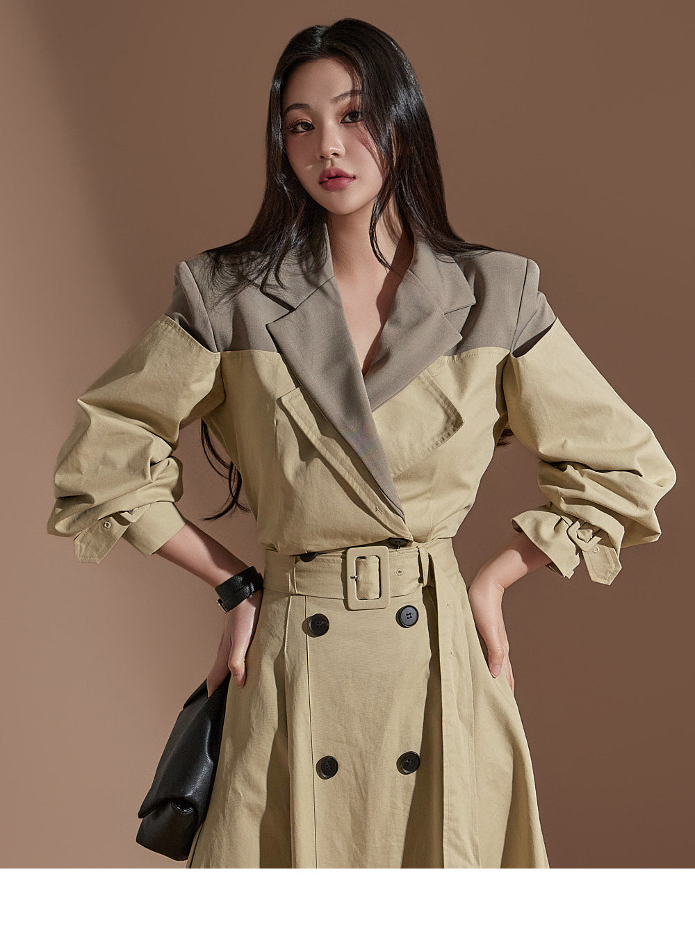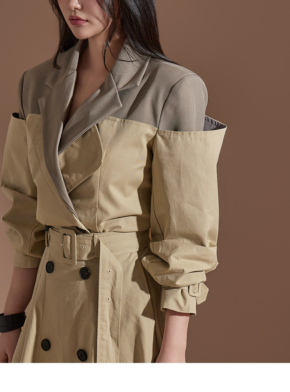 J2247 配色クロップトレンチジャケット