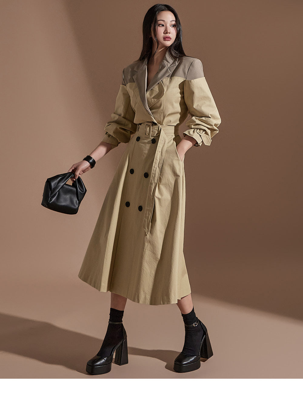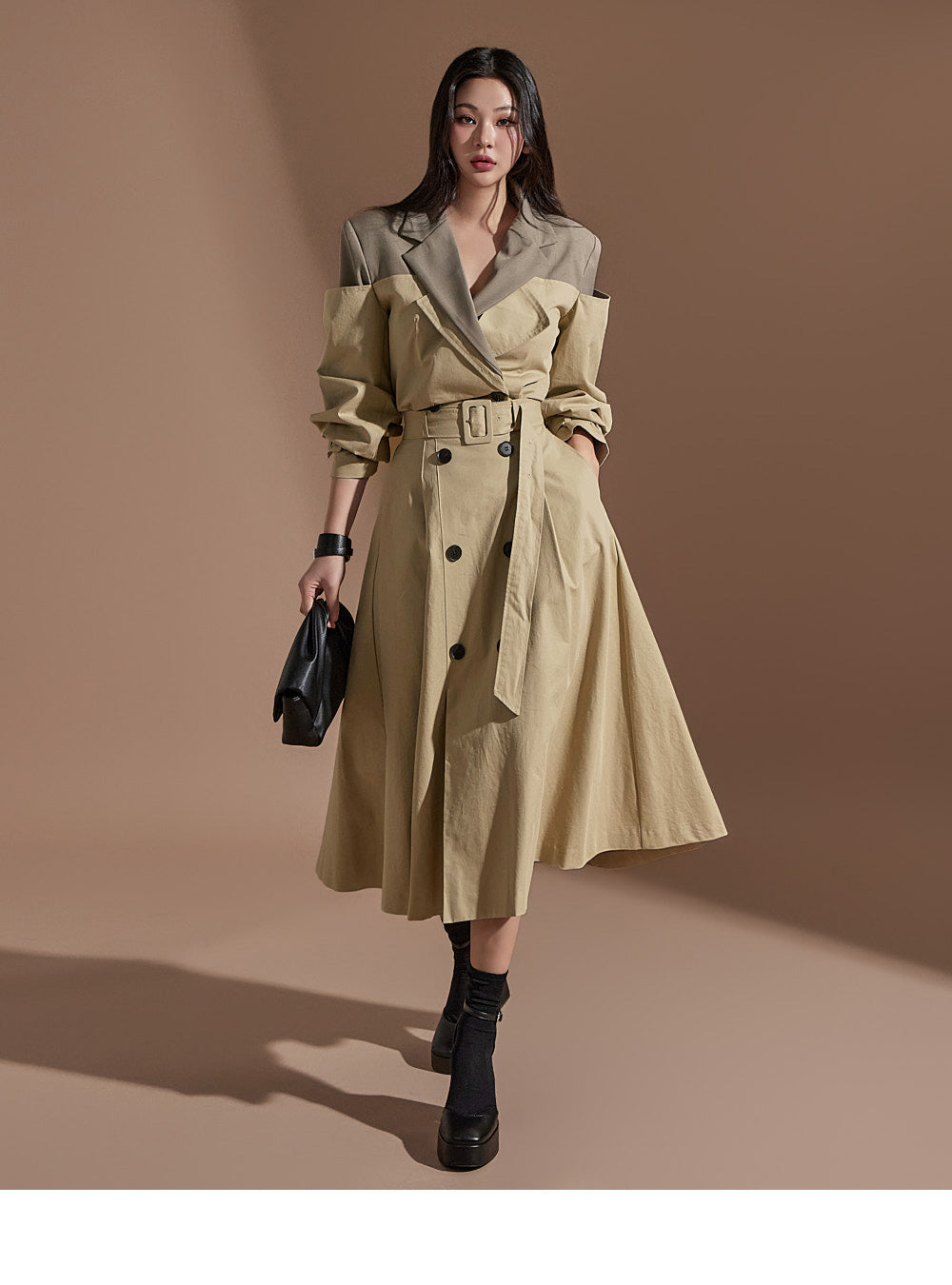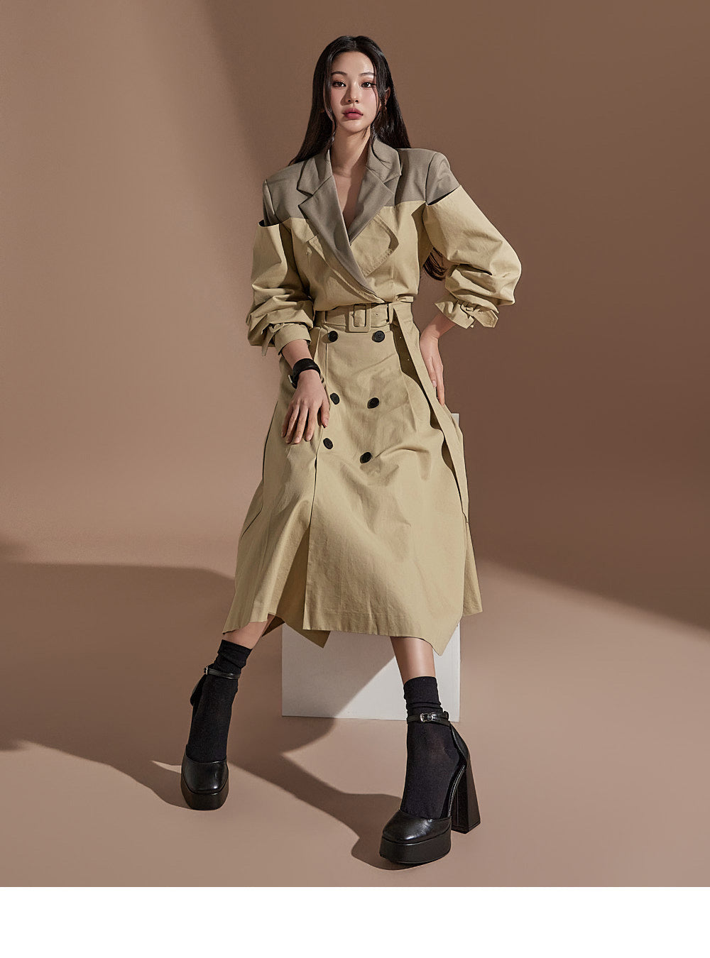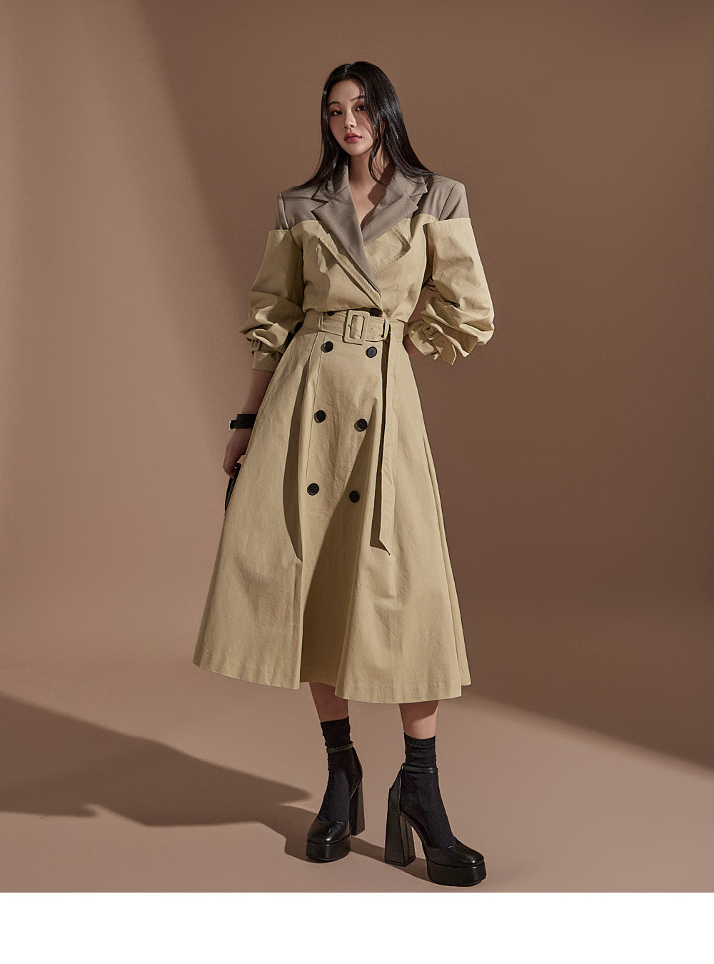 J2247 配色クロップトレンチジャケット