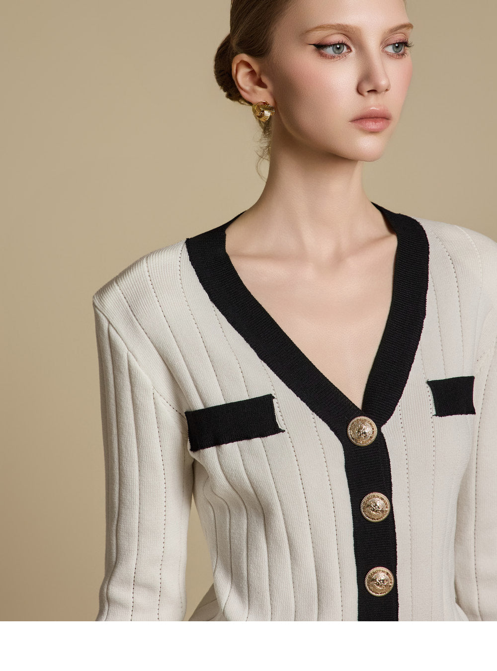ゴールドのボタンが洗練されたエレガントな雰囲気を醸し出します。