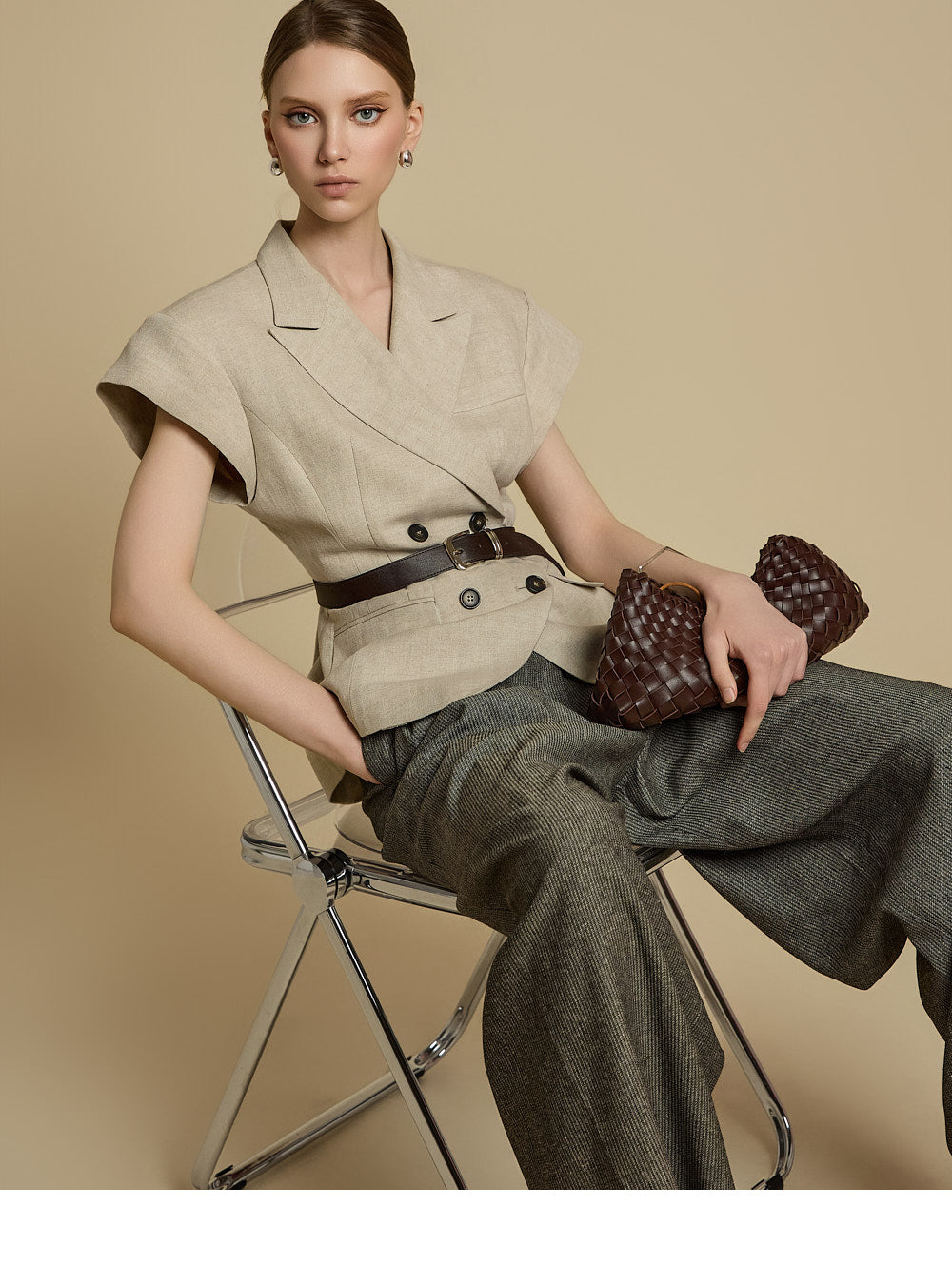 ウエストを絞ったスタイルにマッチするベルトが付属しています。