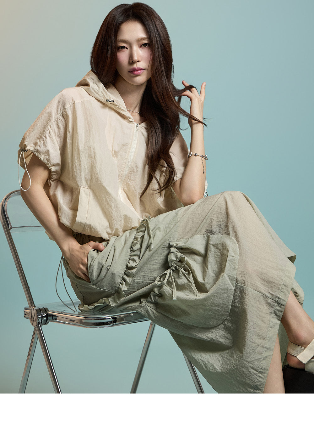 モデルの身長は171cmで、ベージュのONEサイズを着用しています。
