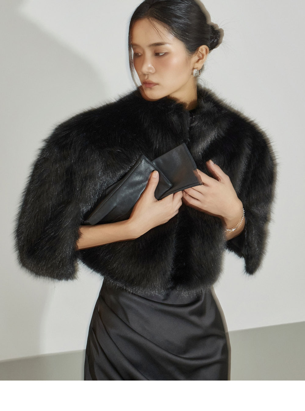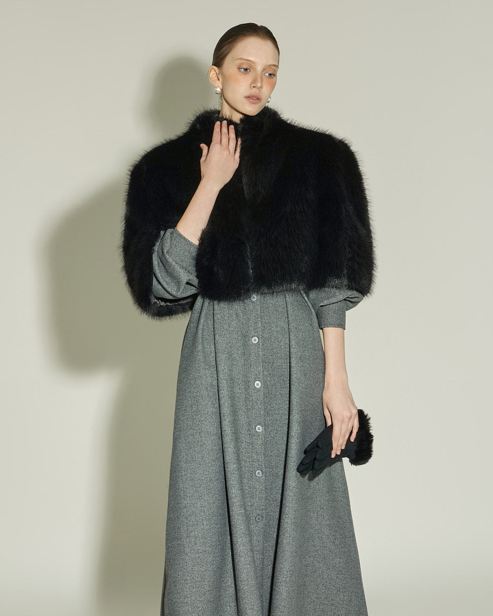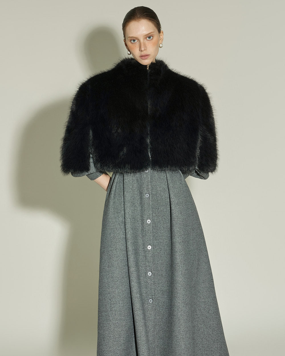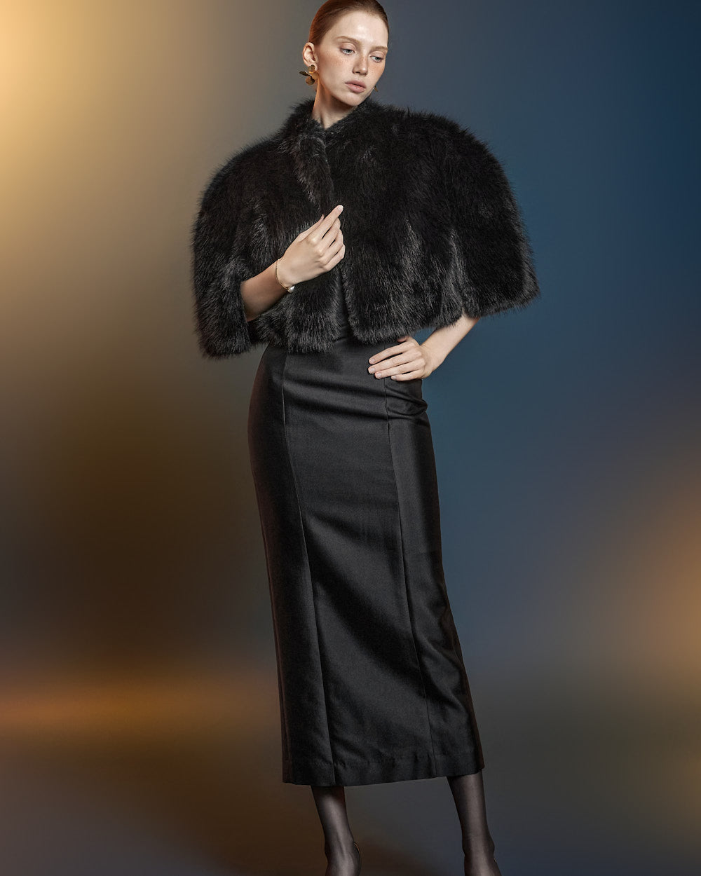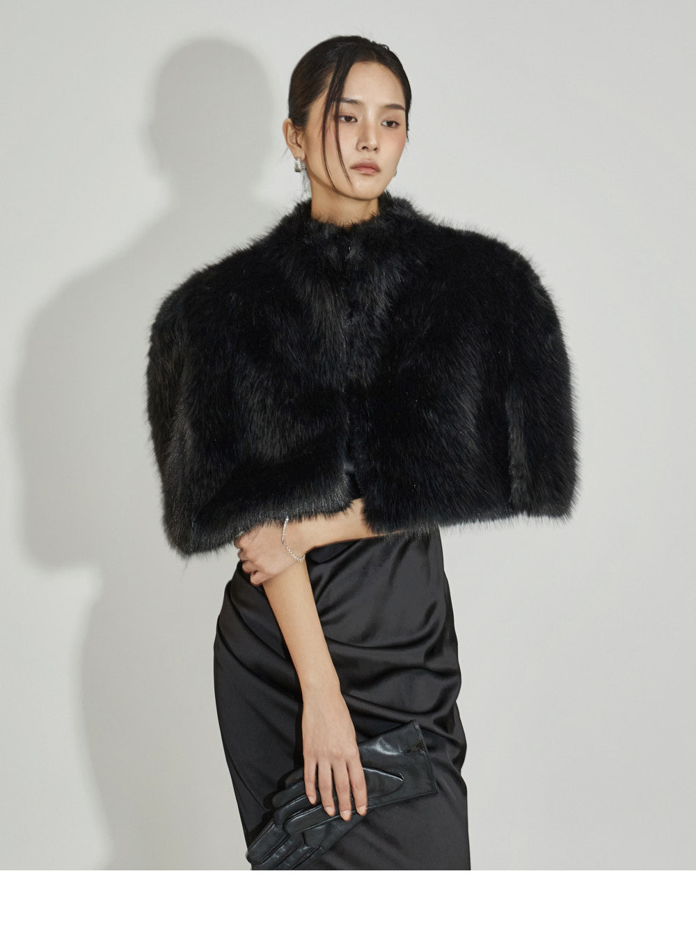 This fur cape exudes an elegant vibe.