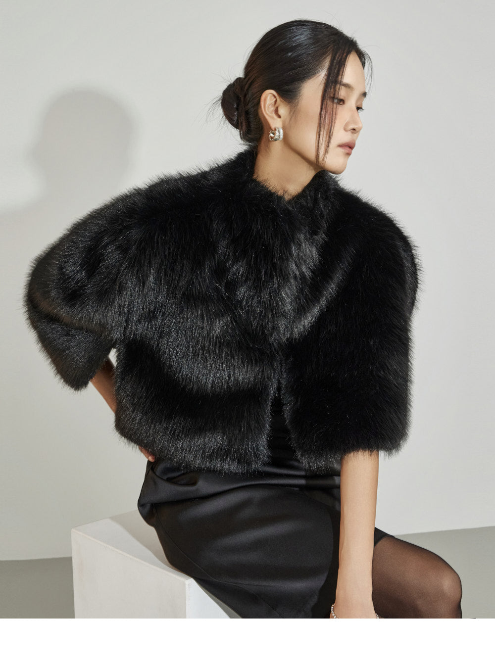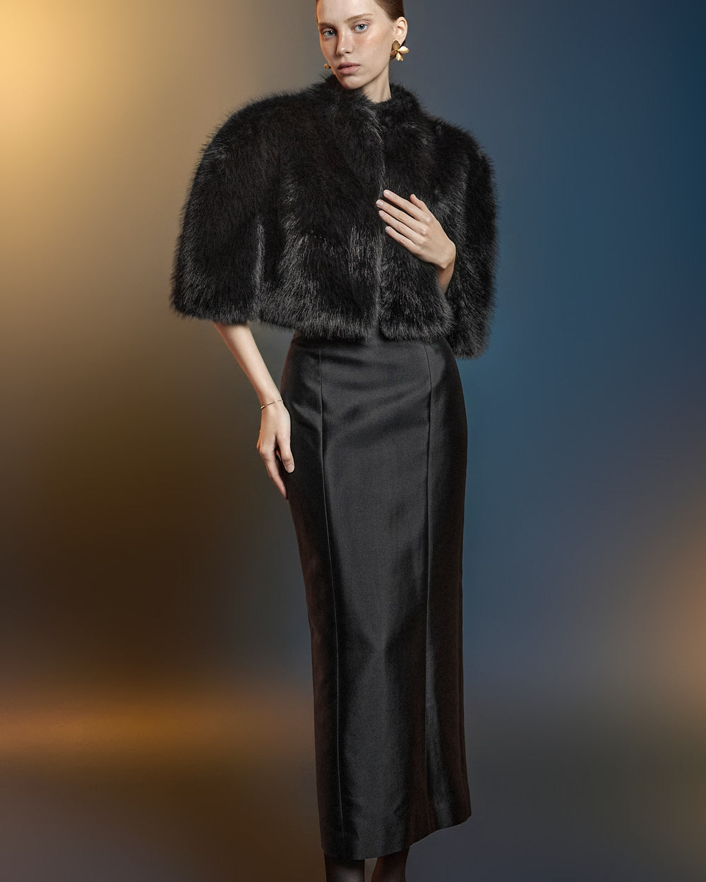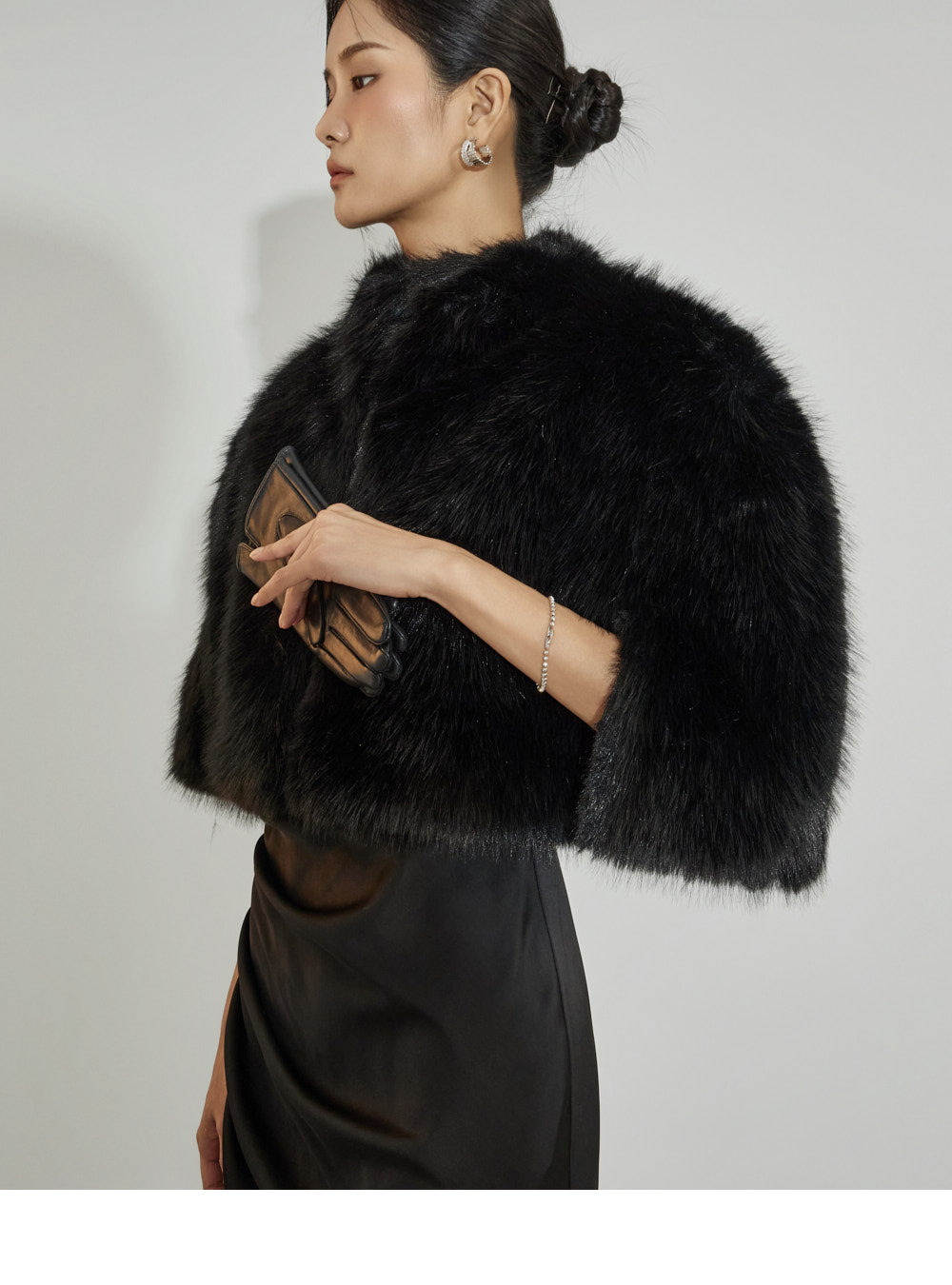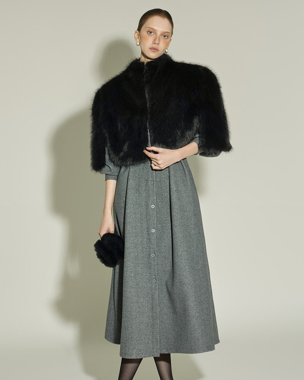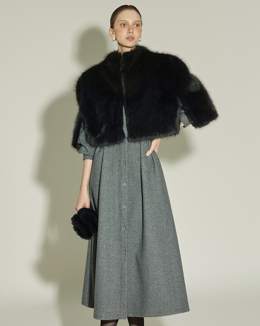 This fur cape exudes an elegant vibe.