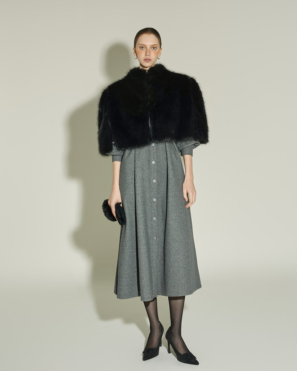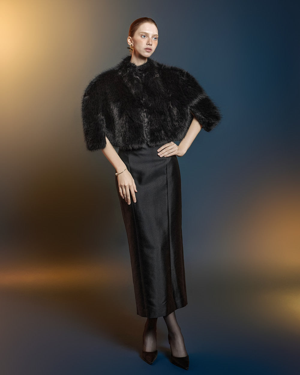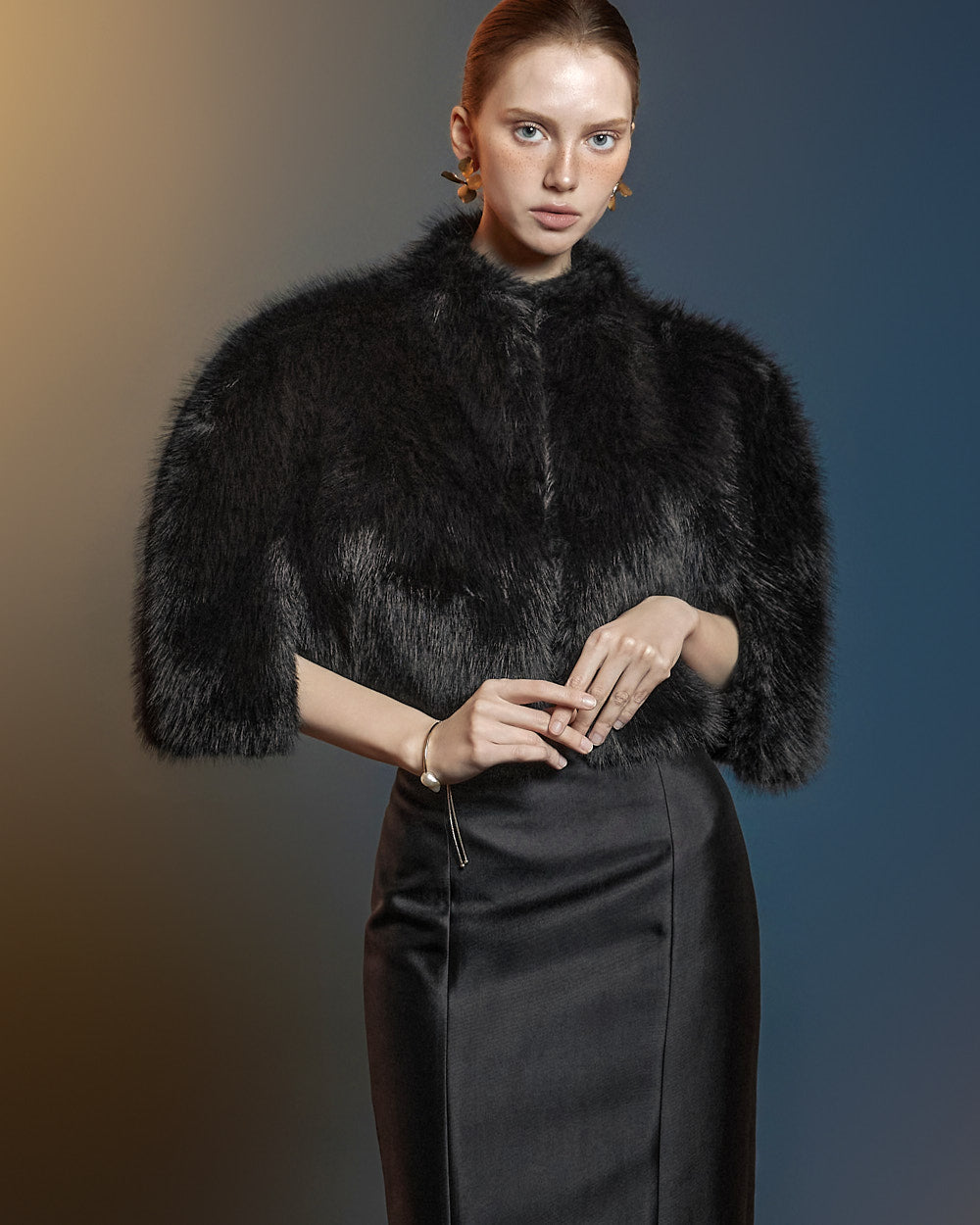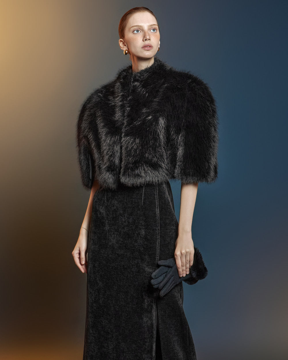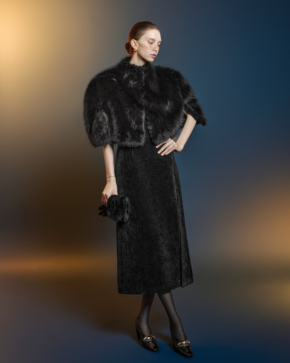 This fur cape exudes an elegant vibe.