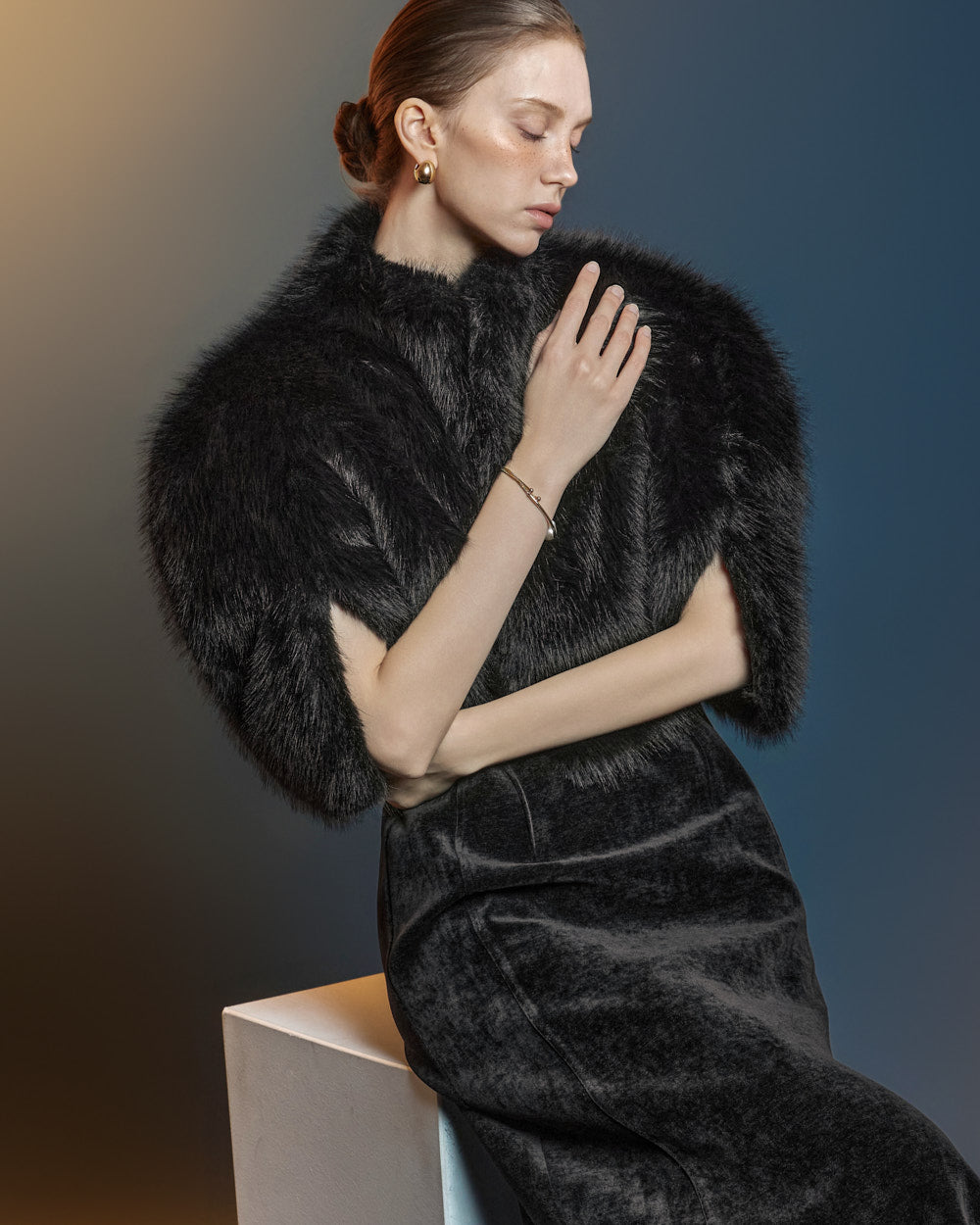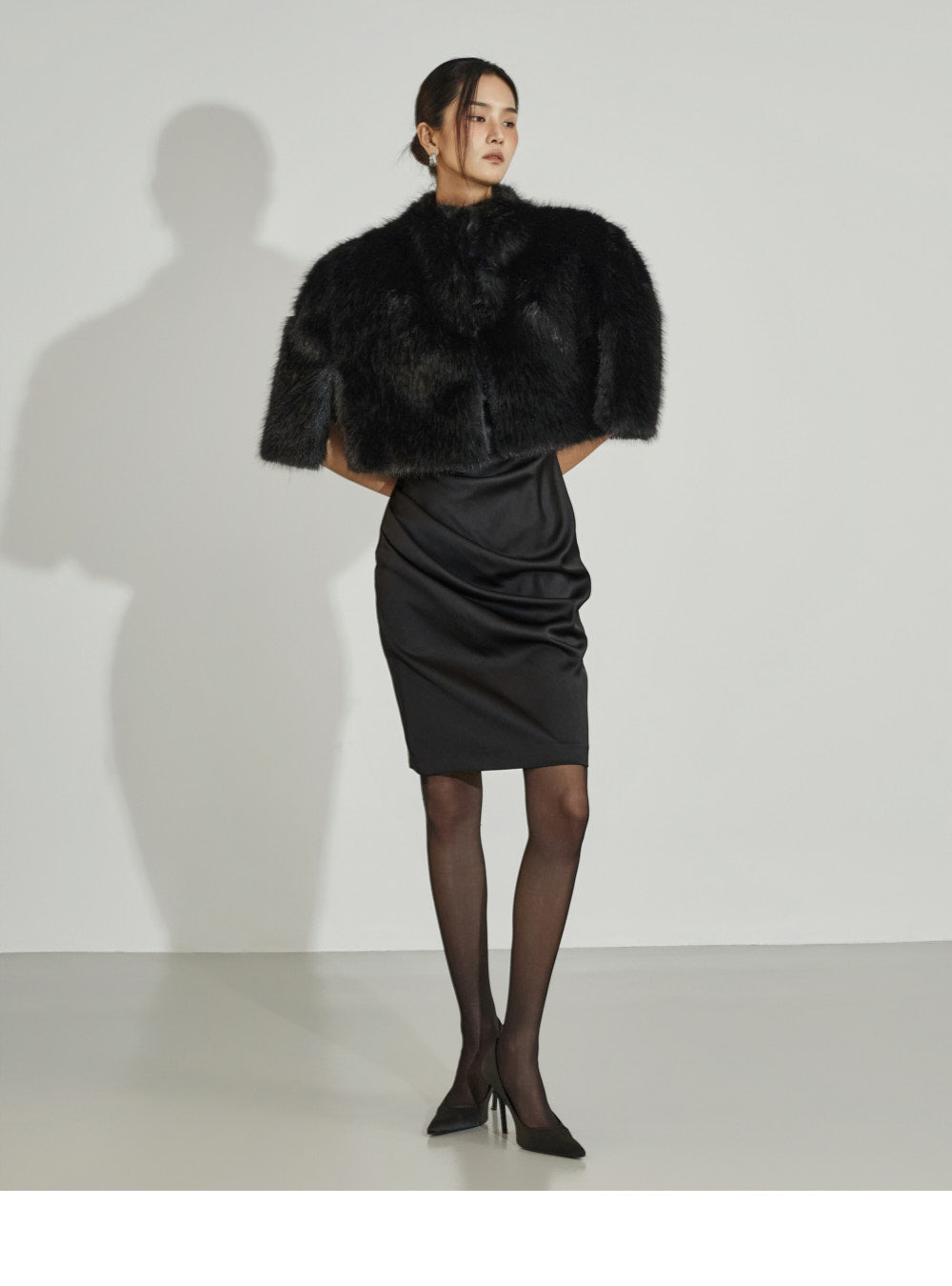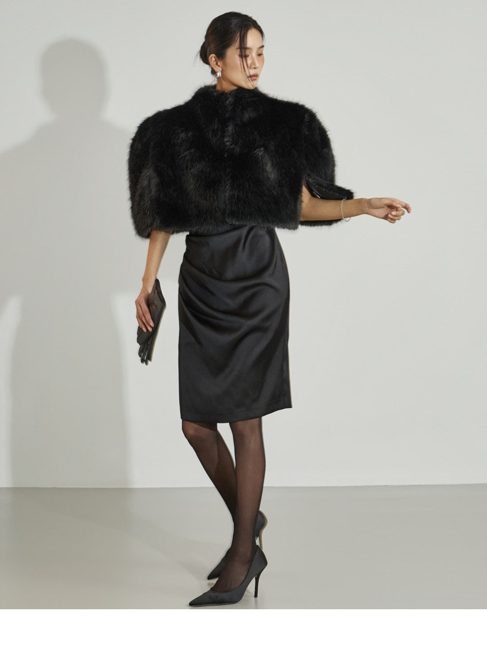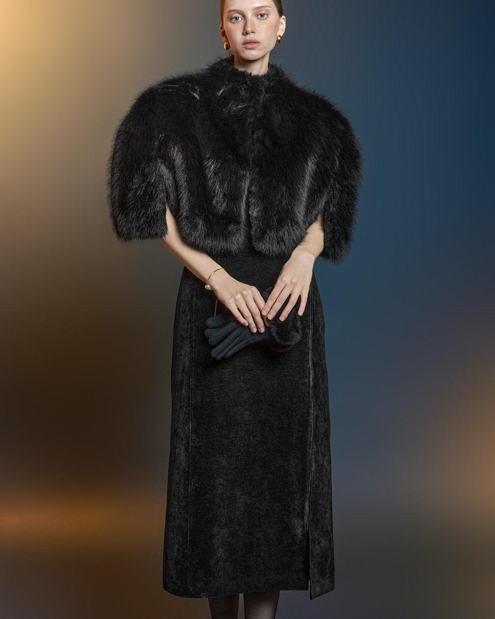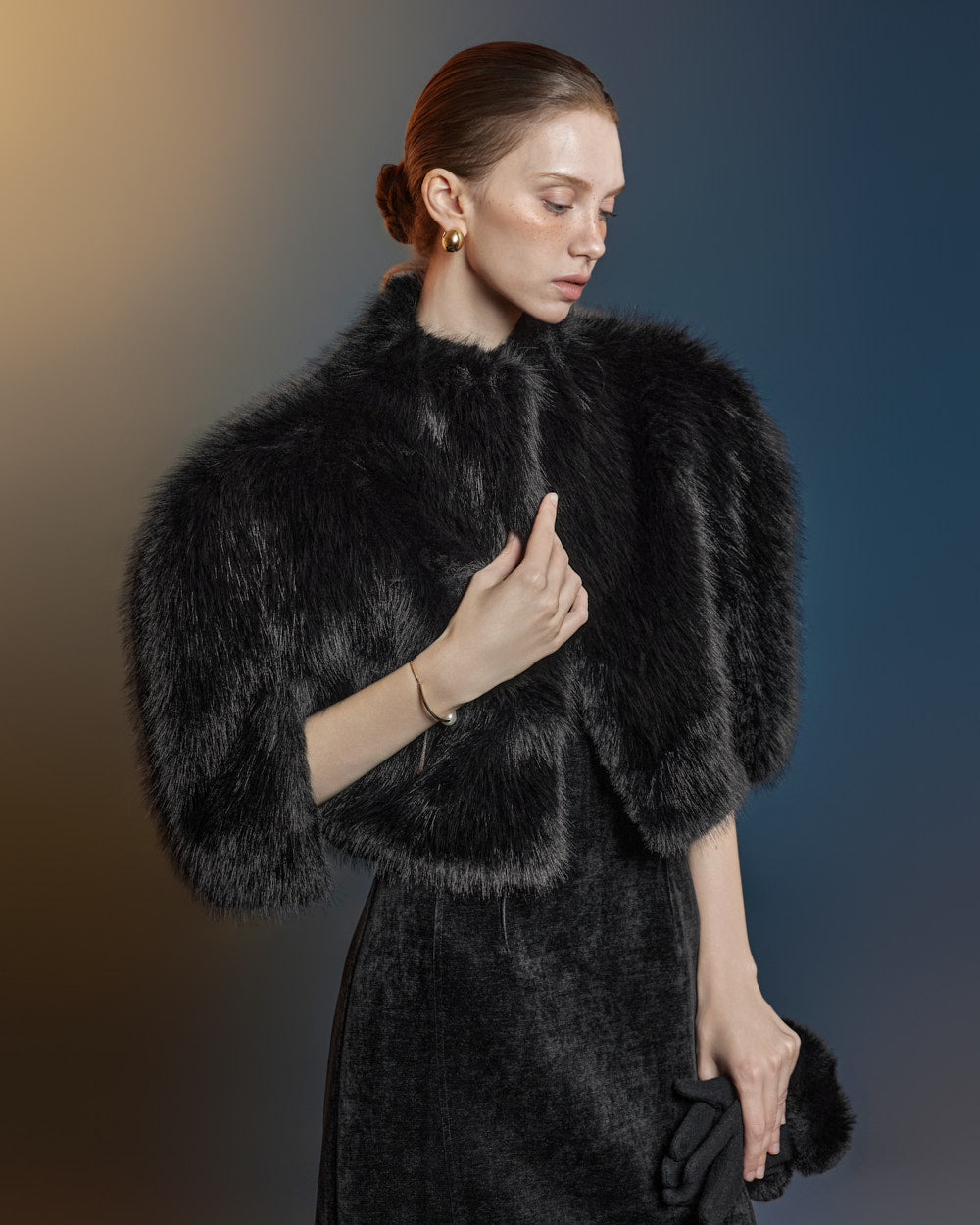 This fur cape exudes an elegant vibe.