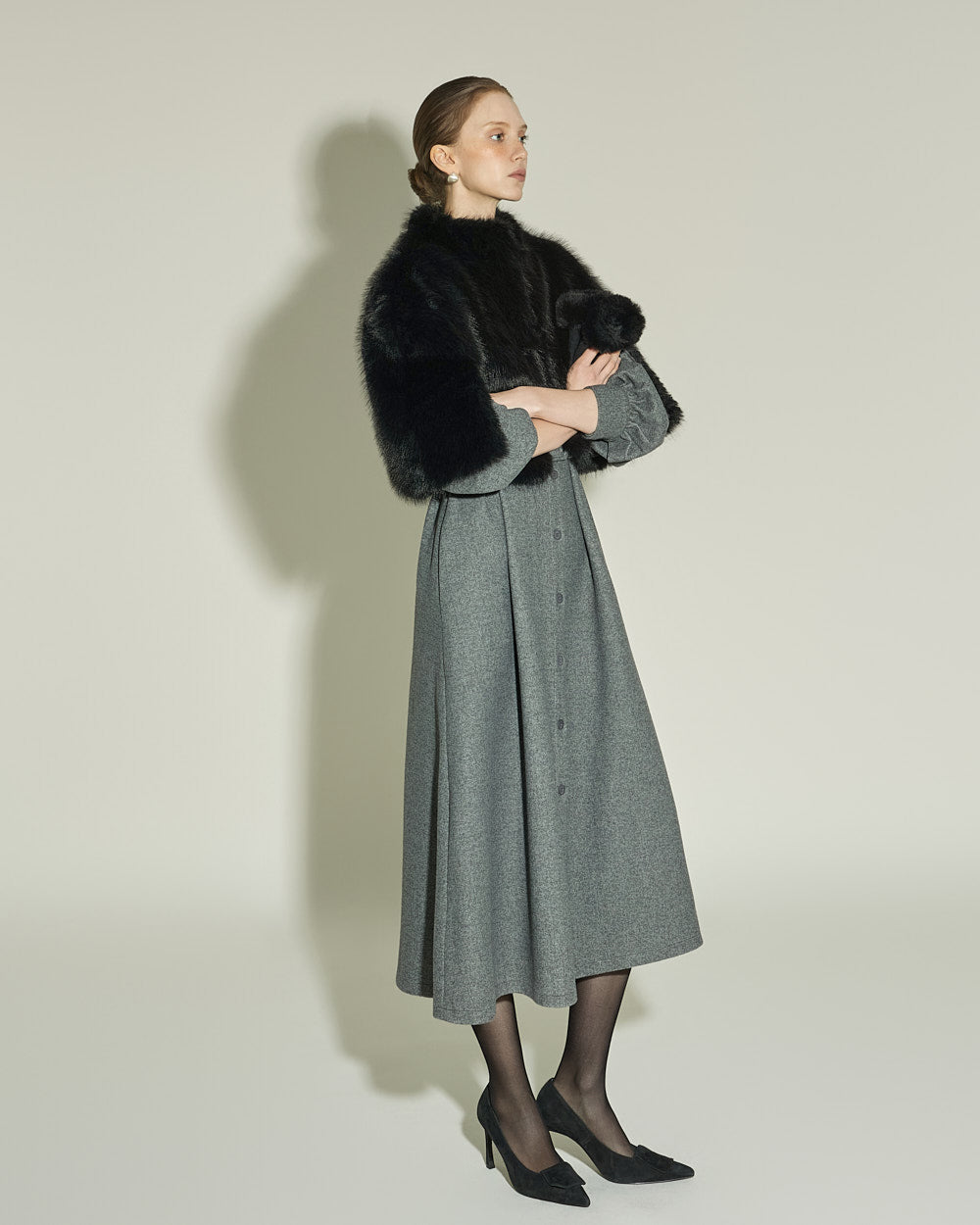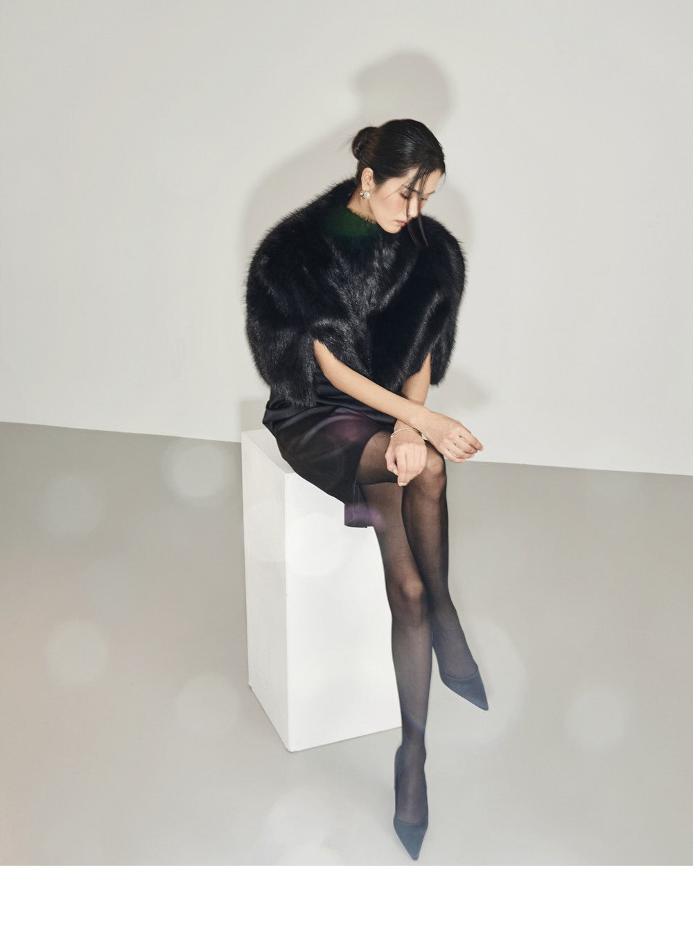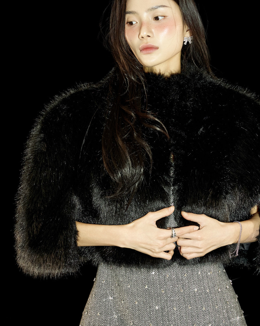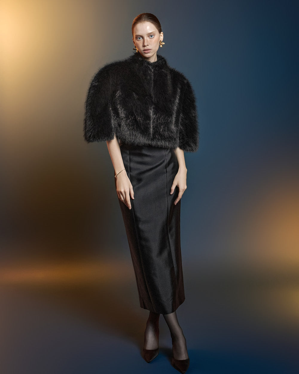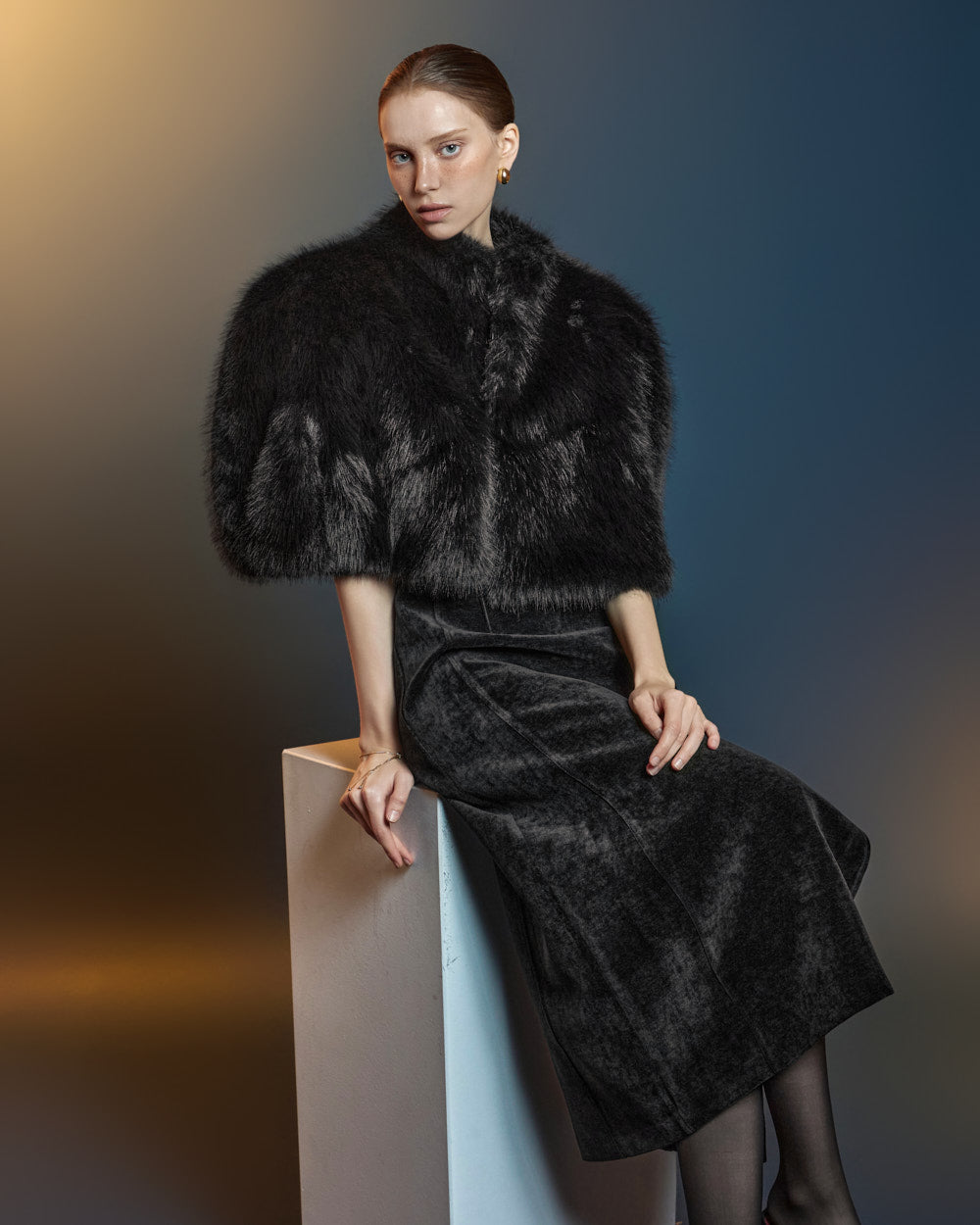 This fur cape exudes an elegant vibe.