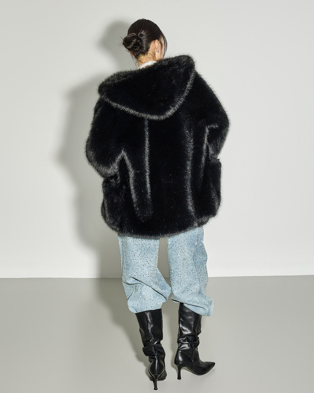 This statement fur outerwear piece can be styled in a variety of ways, from everyday winter looks