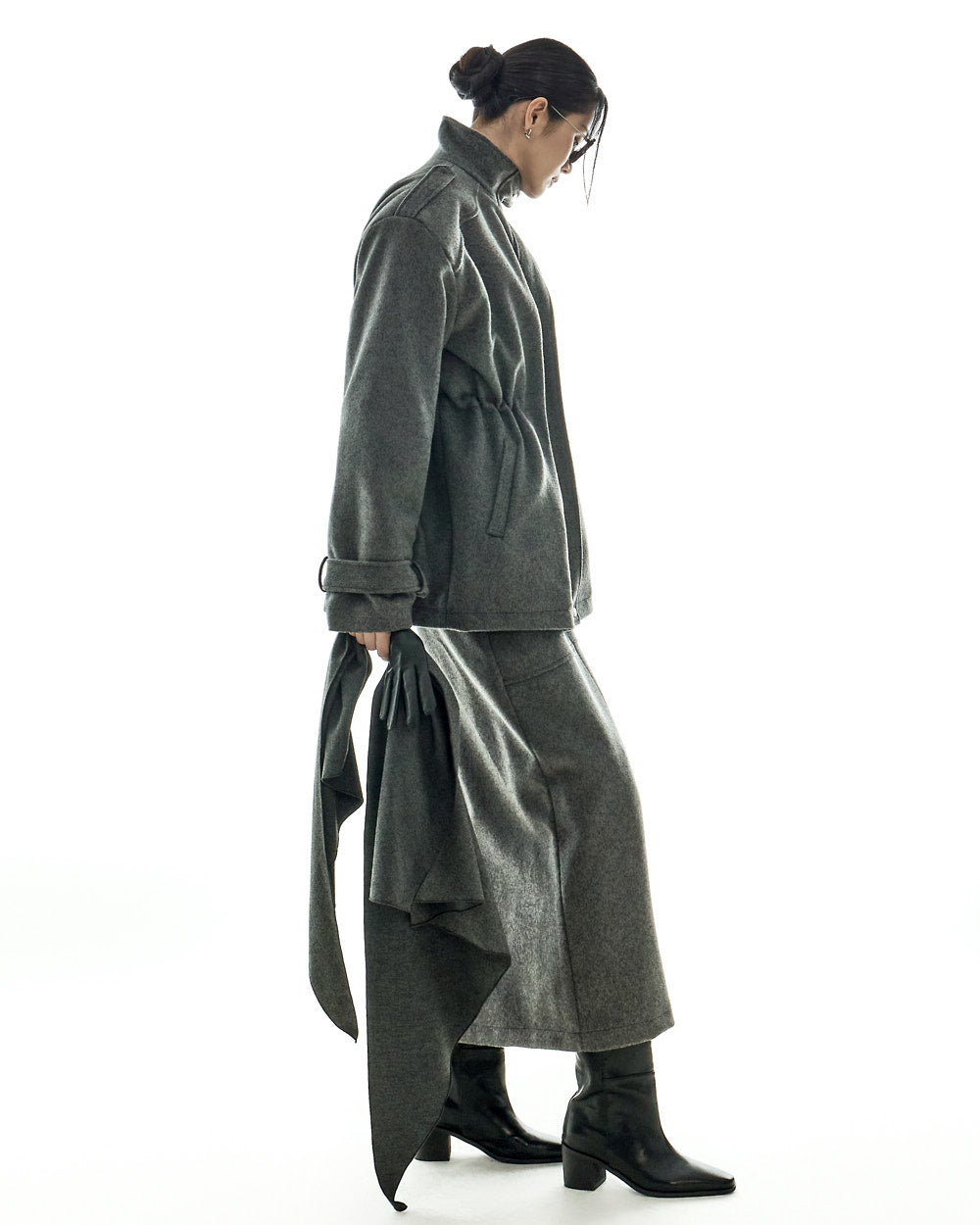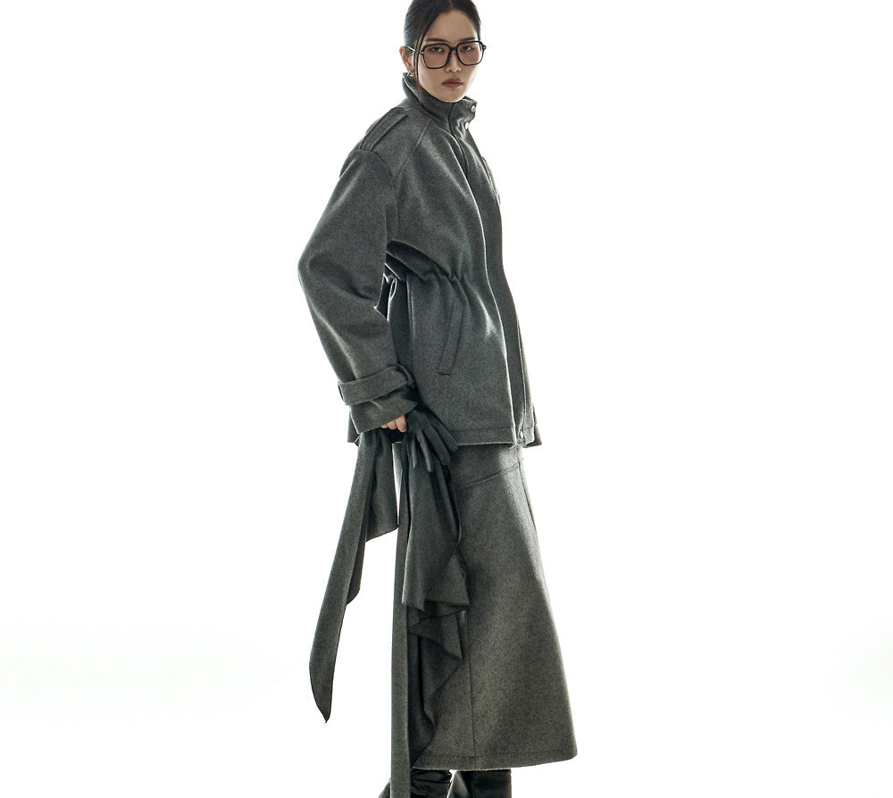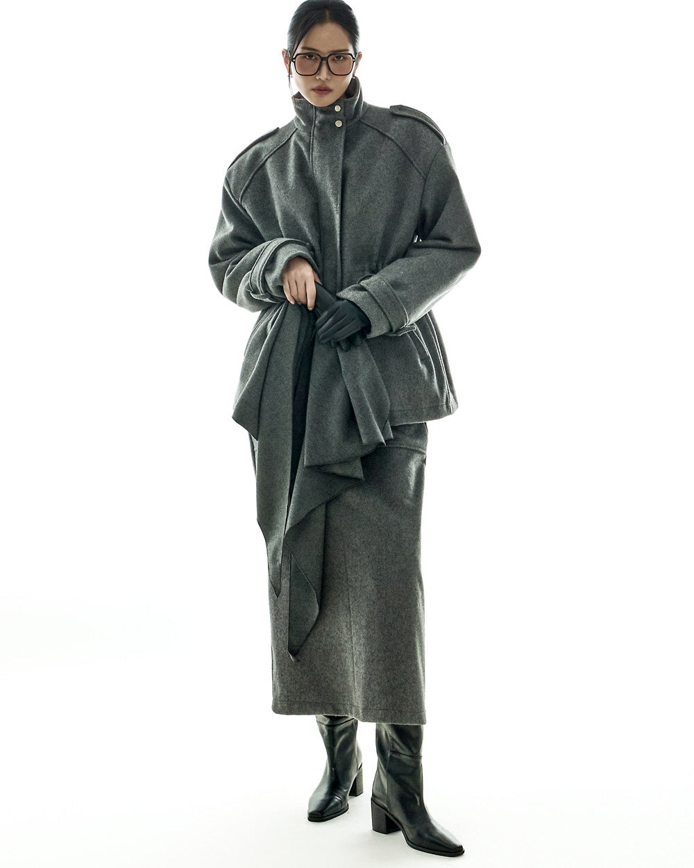 This belted, oversized jumper exudes a masculine and modern vibe.