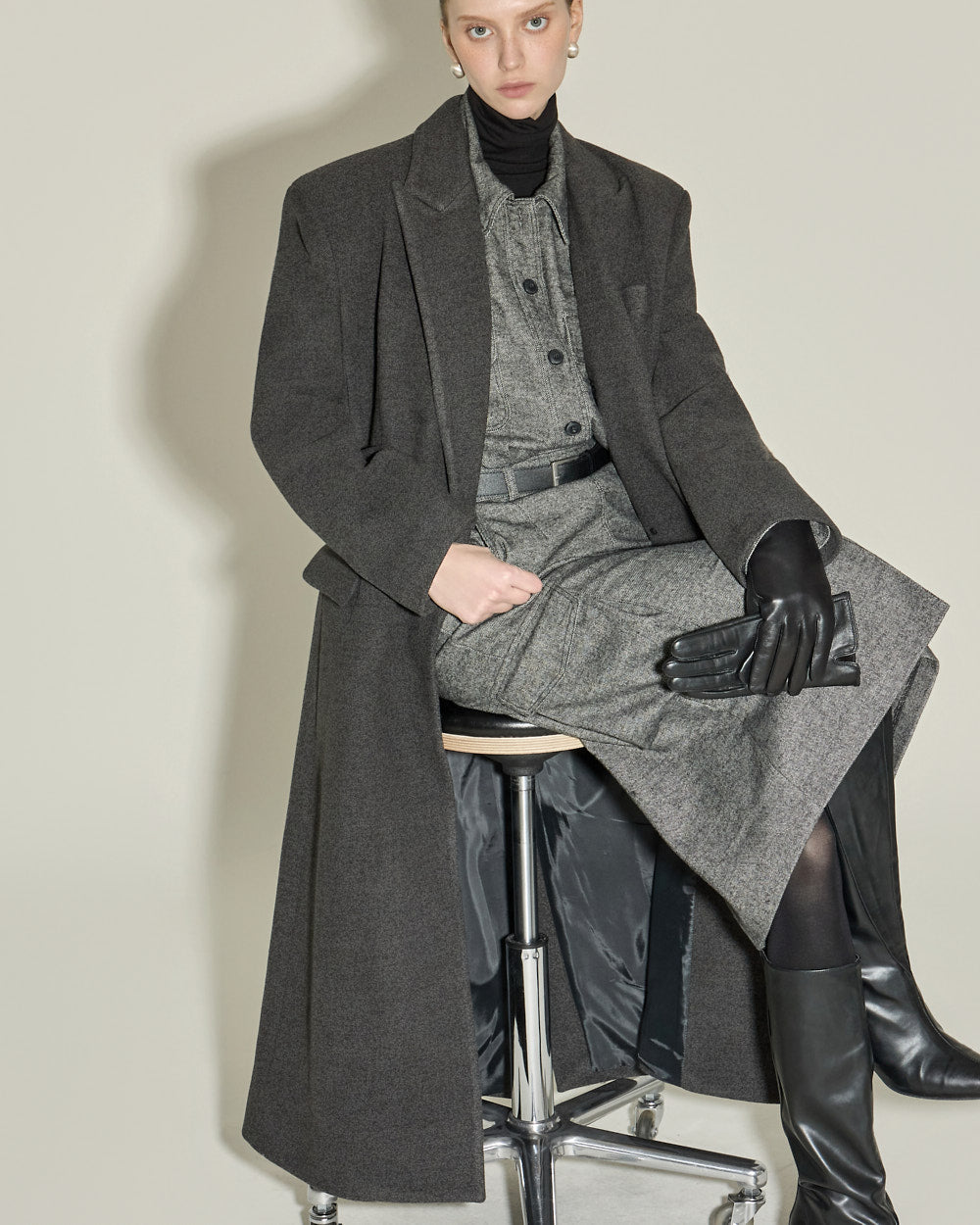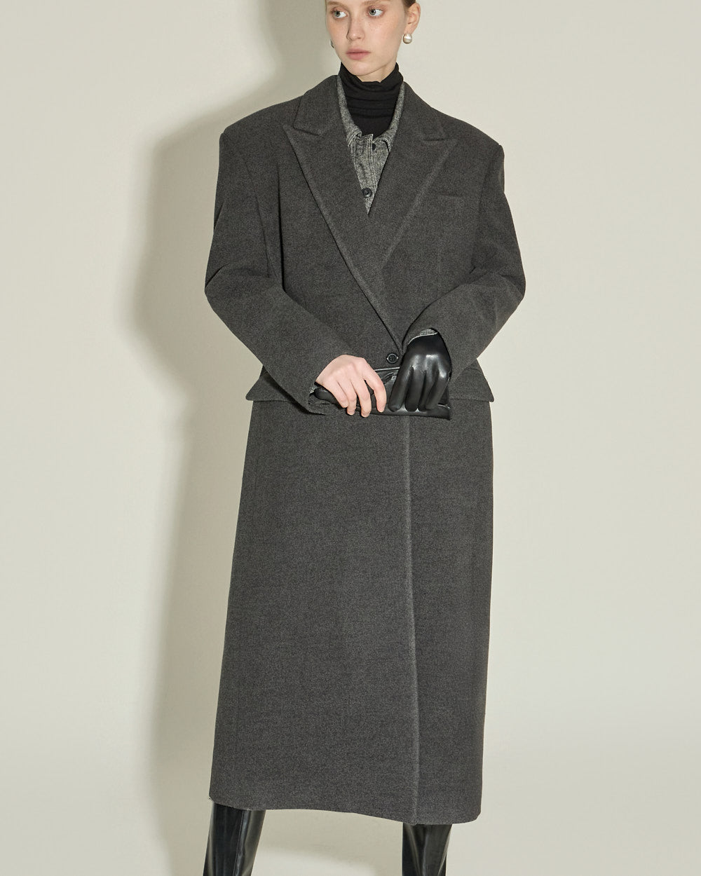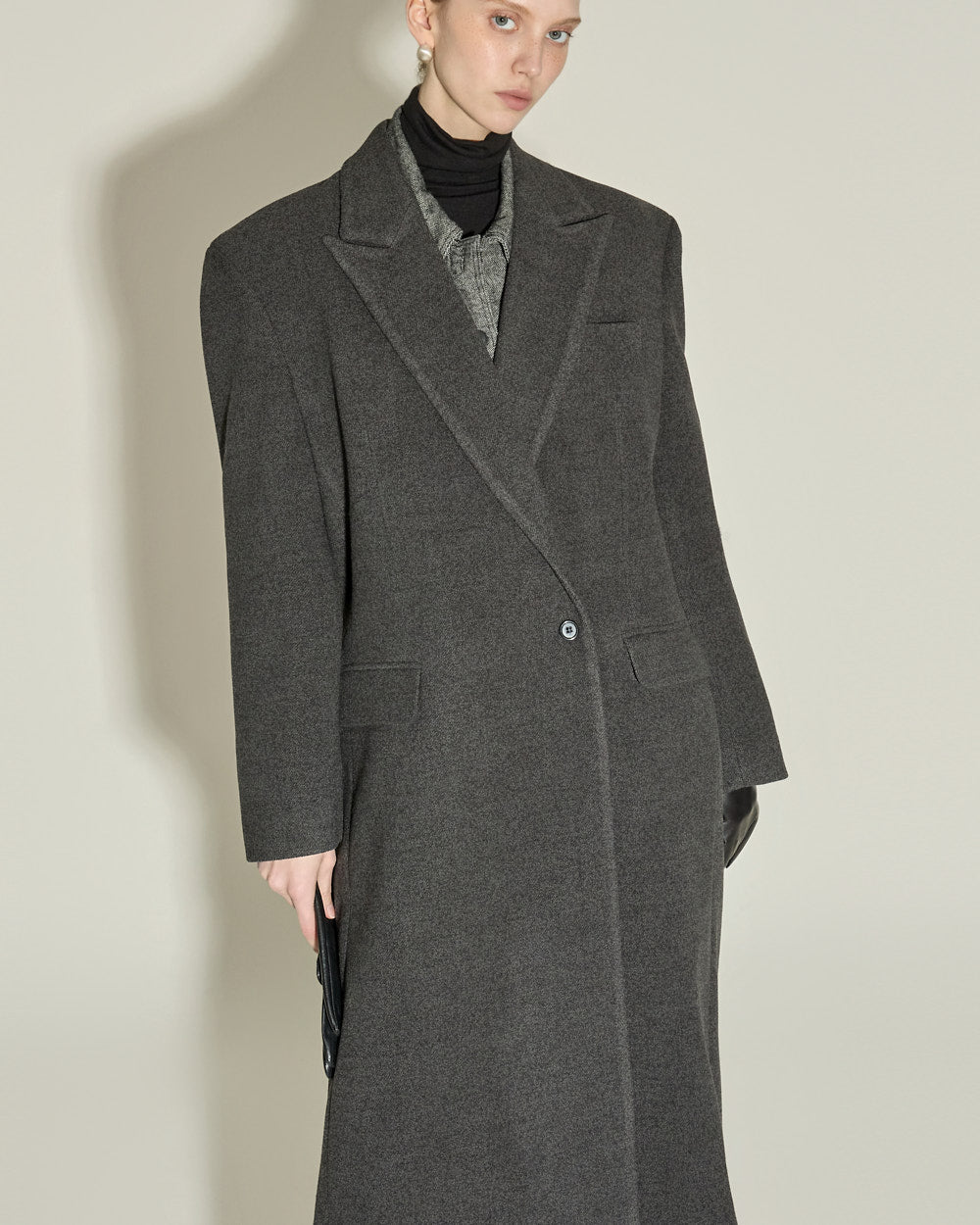 This single coat exudes a classic and simple vibe.
