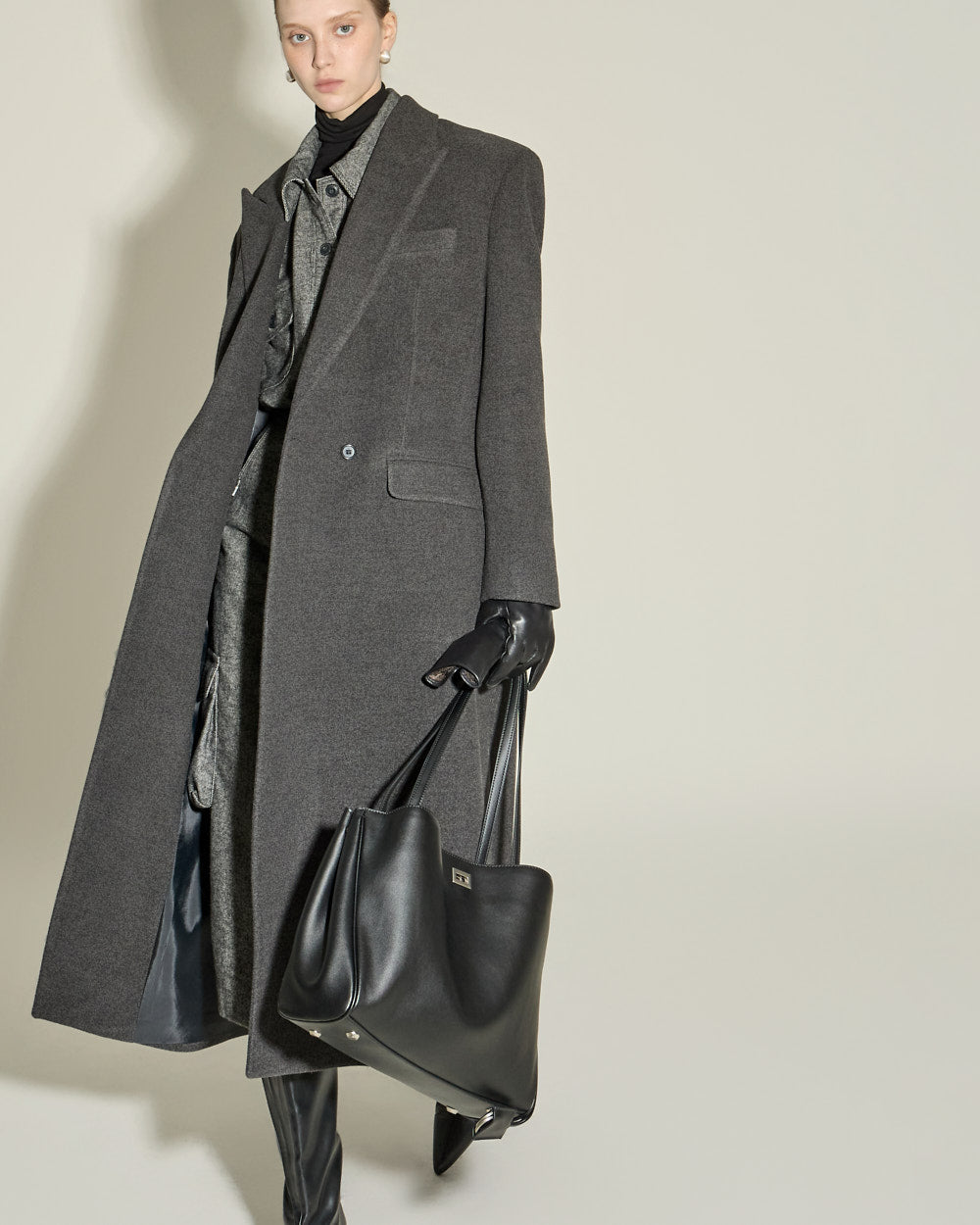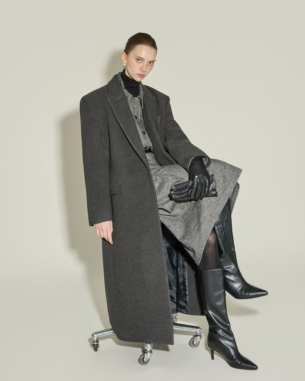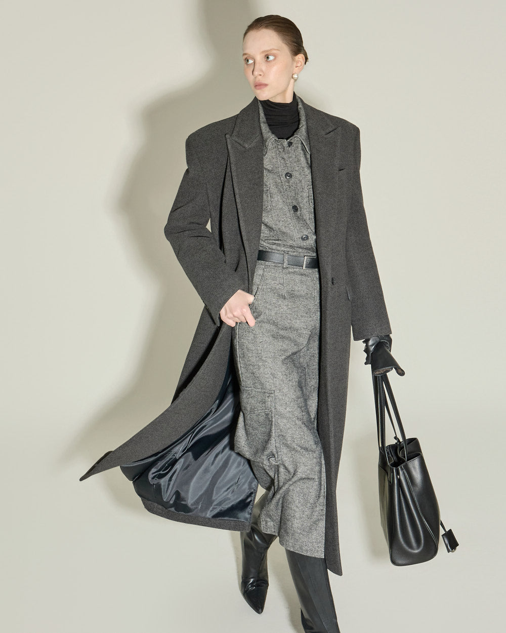 The 174cm model is wearing size ONE in the CHARCOAL color.