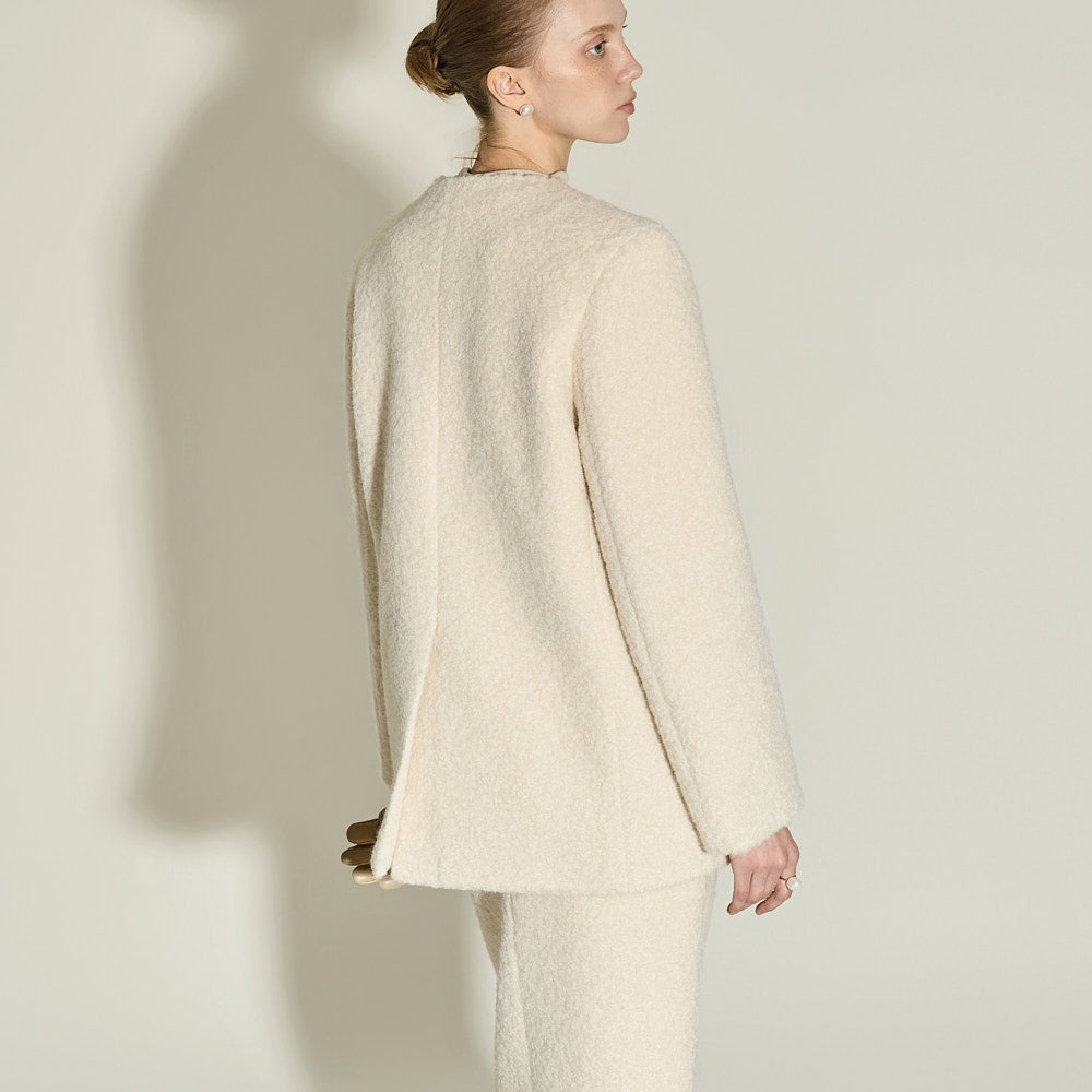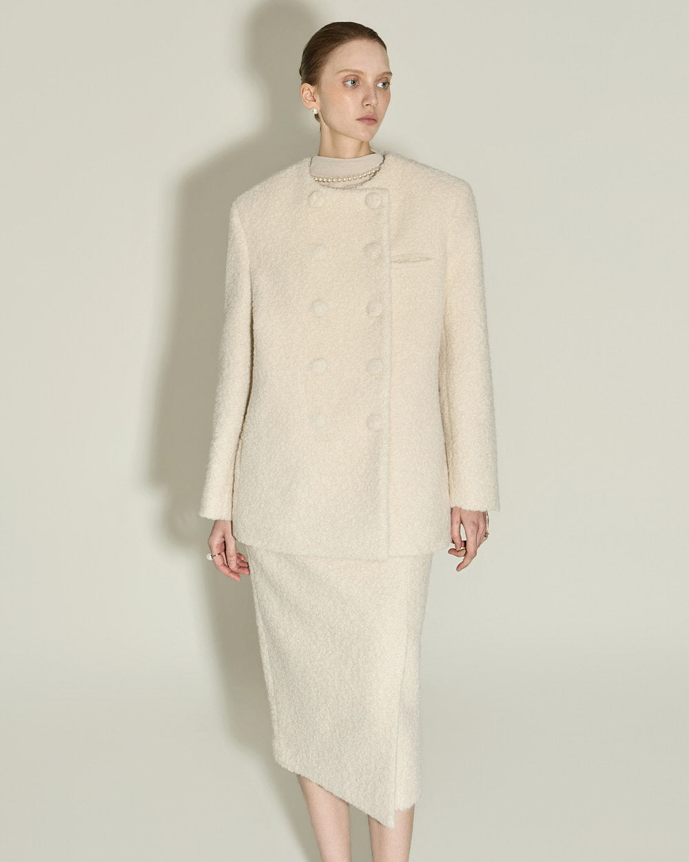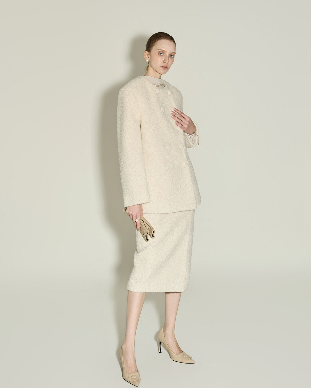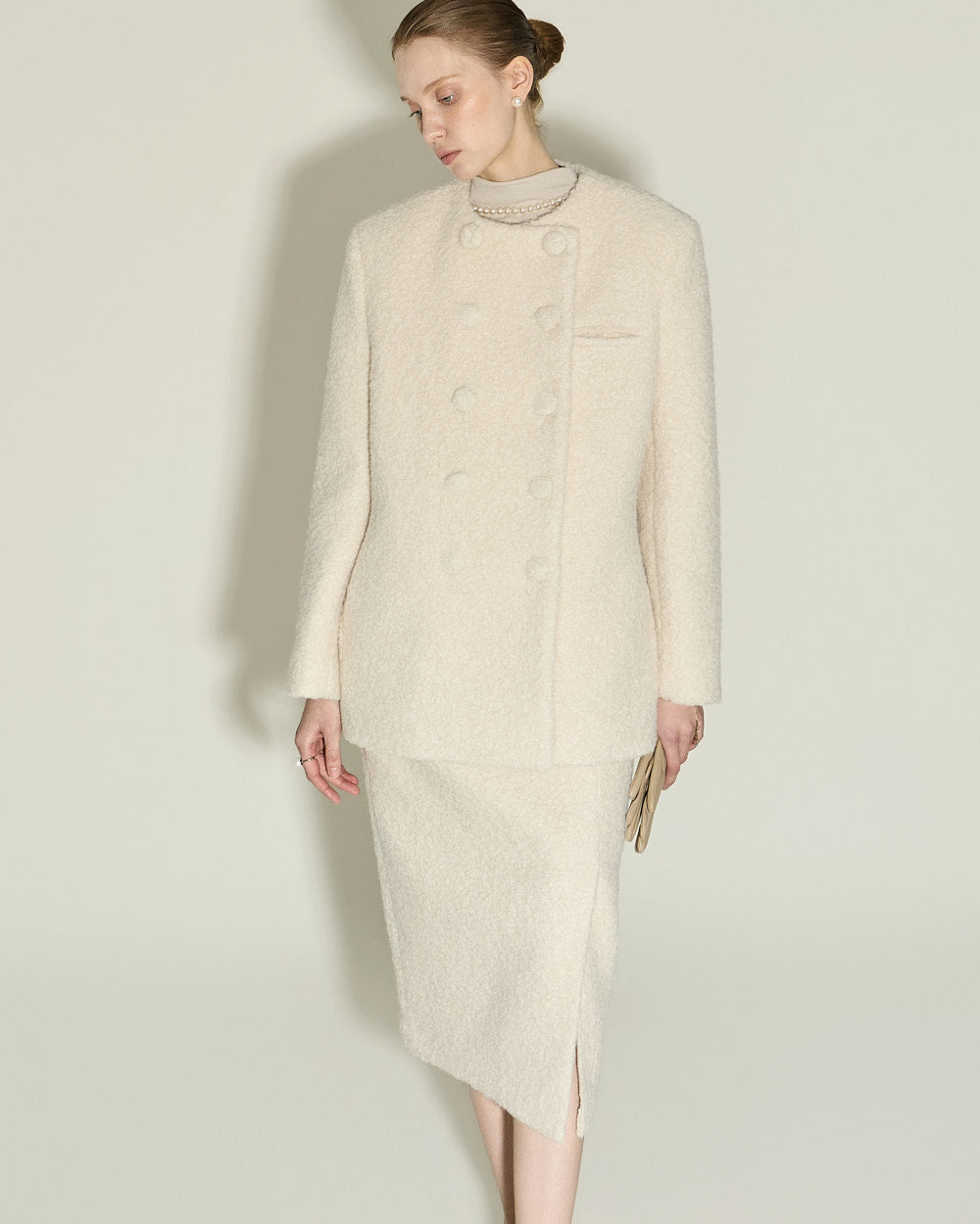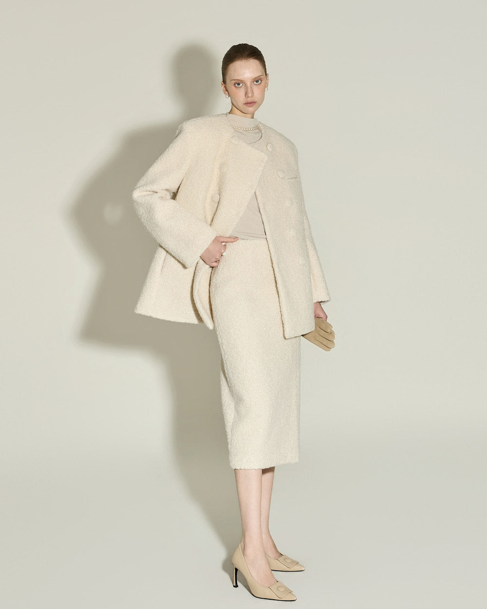 it exudes the unique, cozy, three-dimensional texture of boucle,