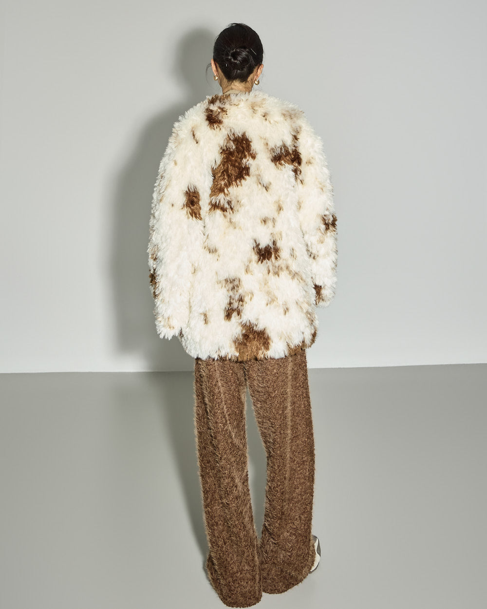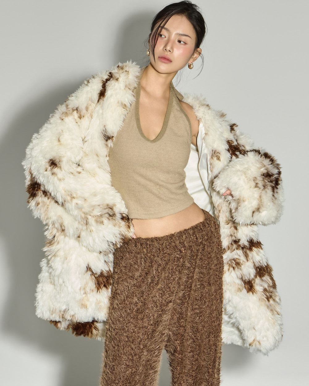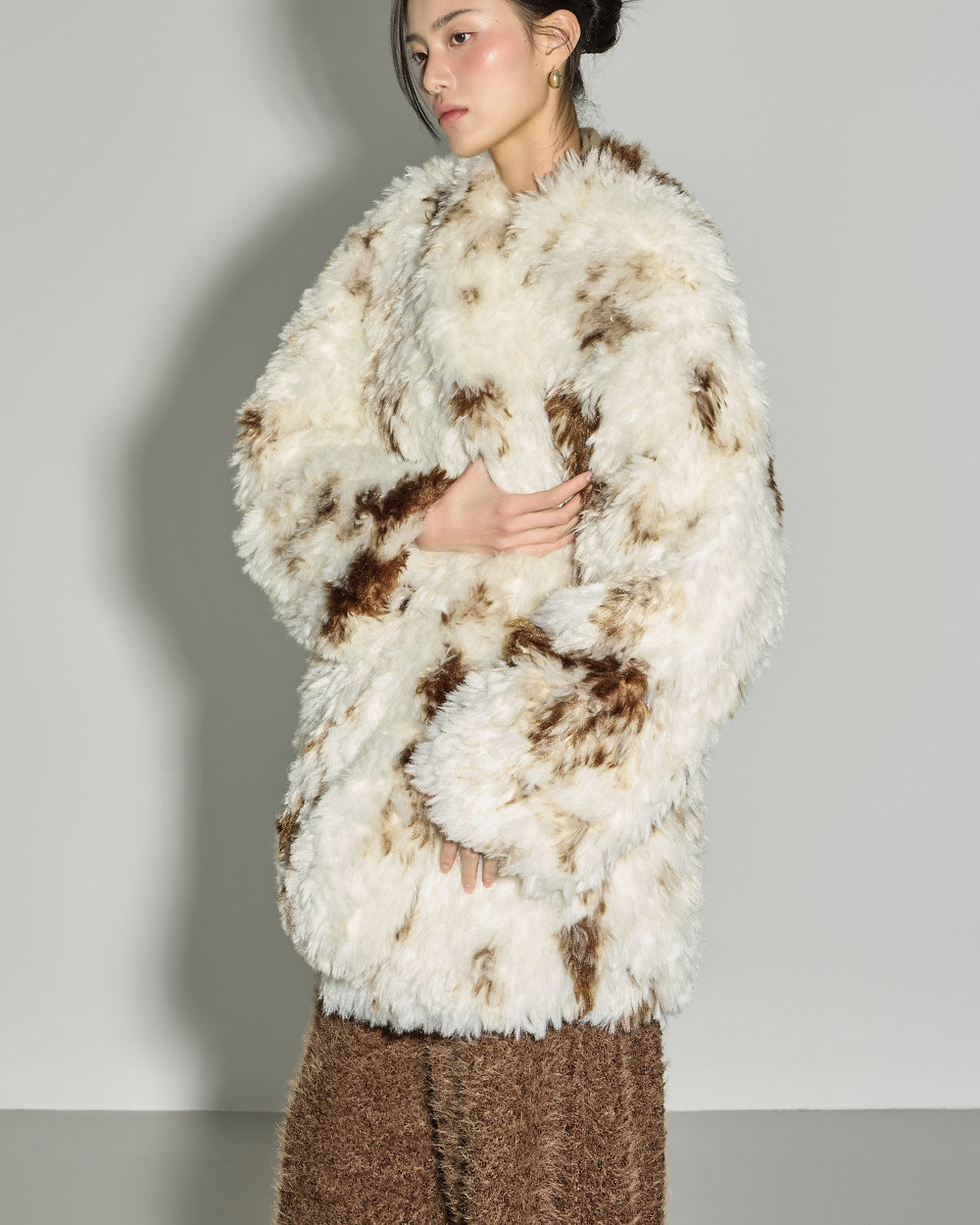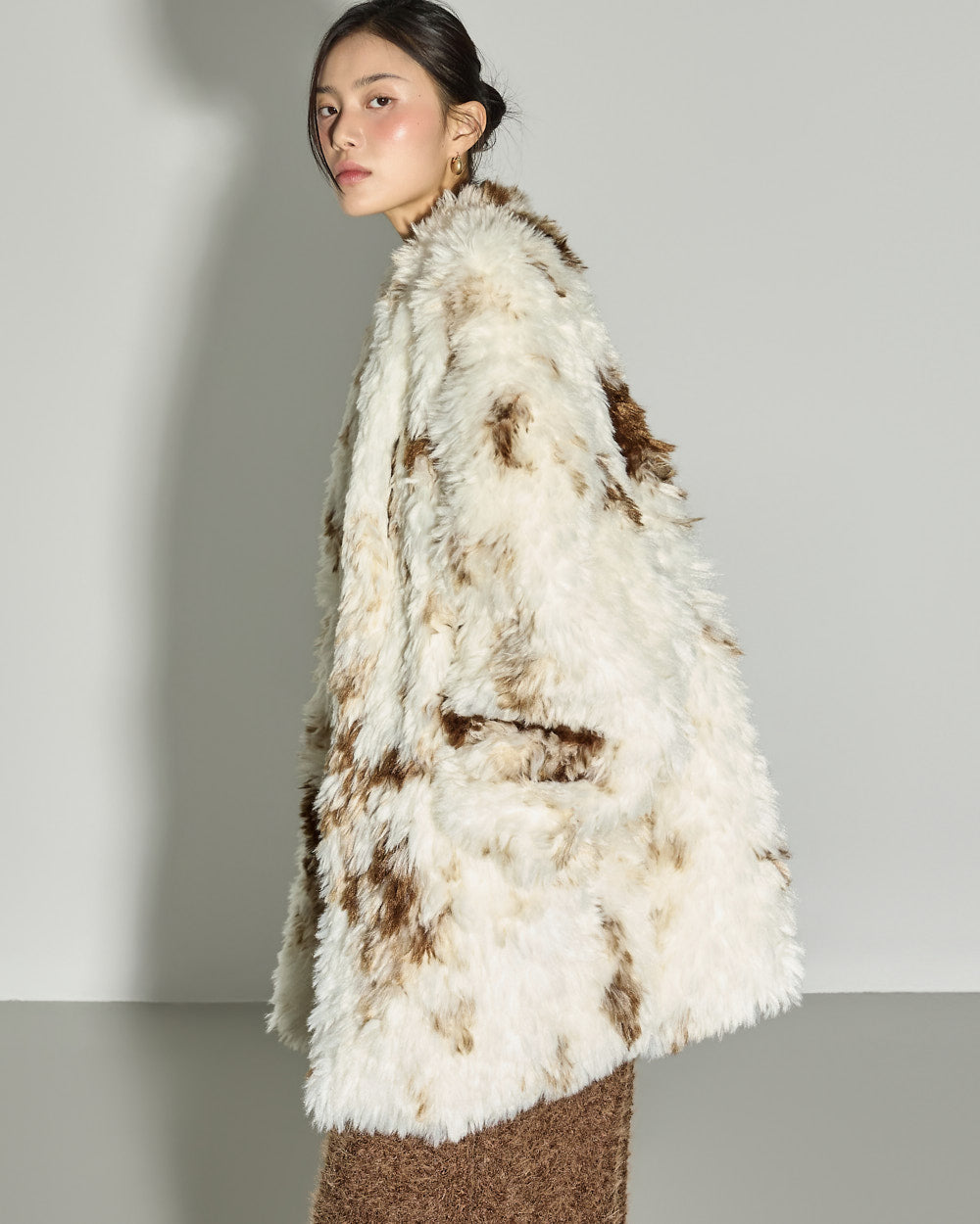 This mixed-color fur jacket has a unique vibe.