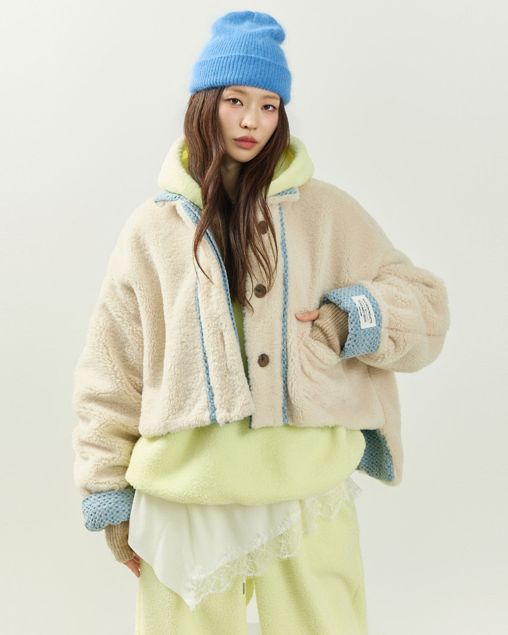 The oversized silhouette and asymmetrical length, with a shorter front,