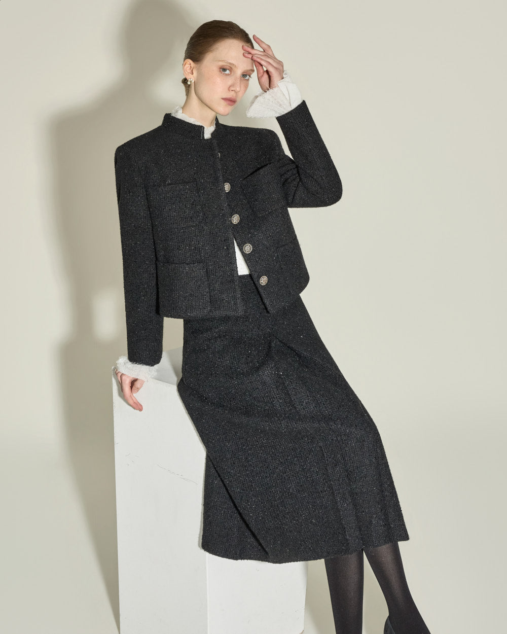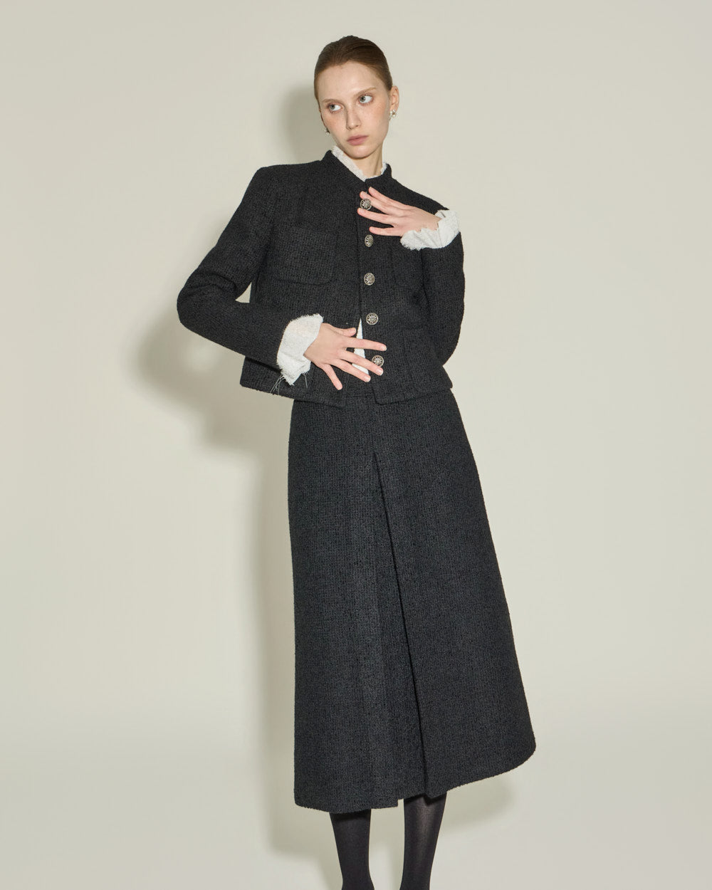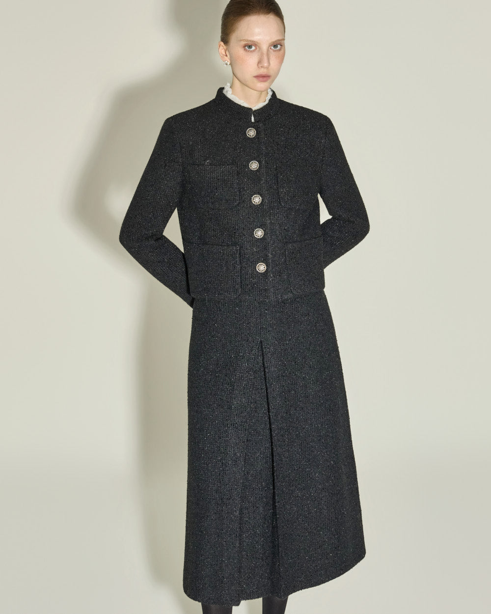The model is 174cm tall and is wearing size ONE in BLACK.