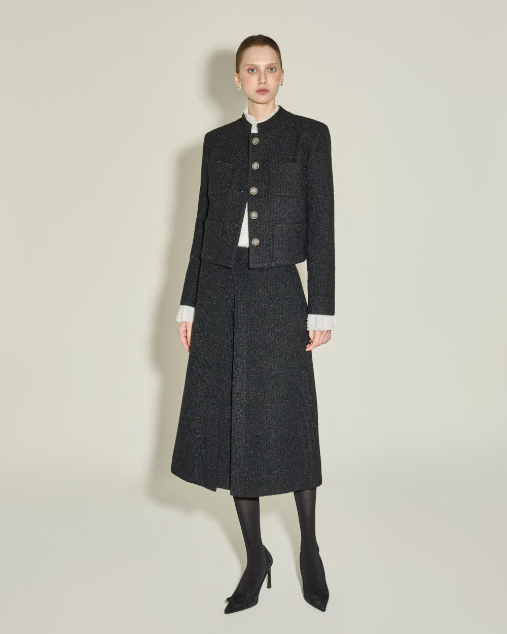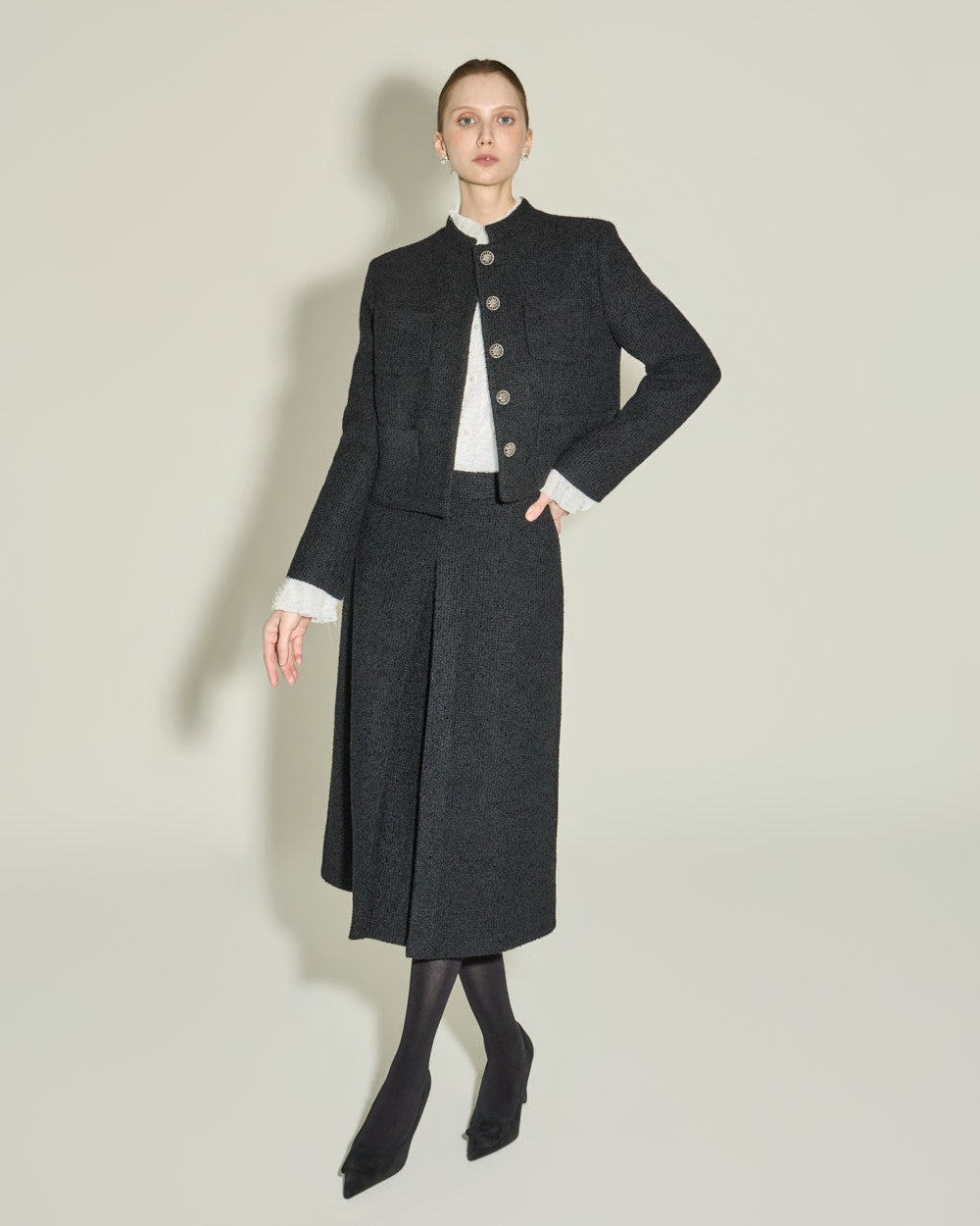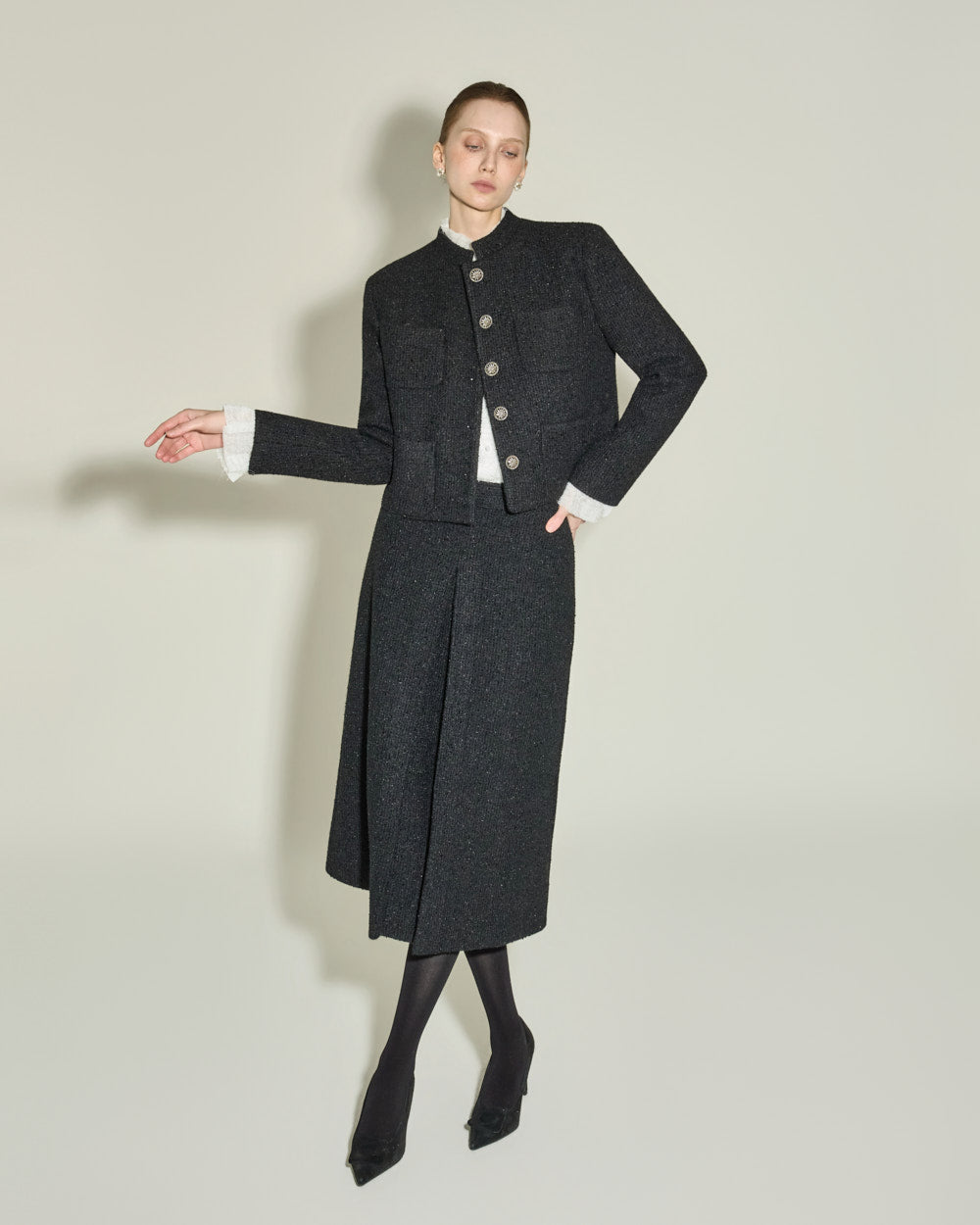The model is 174cm tall and is wearing size ONE in BLACK.