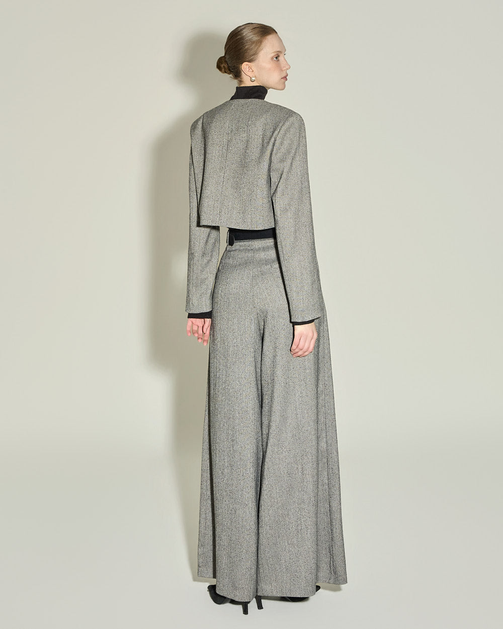 The short length of the jacket, with shoulder pads,