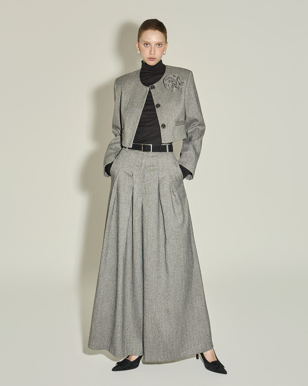 This corsage set jacket exudes a classic feminine vibe.