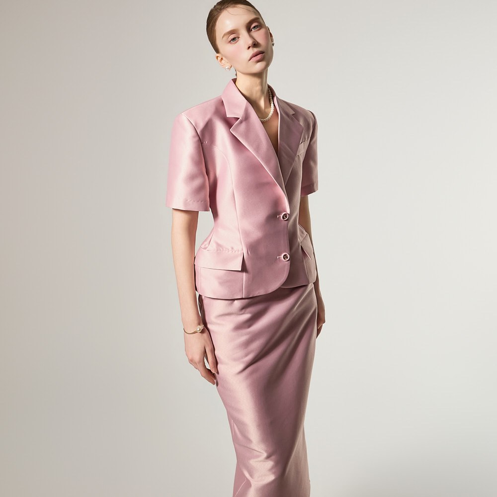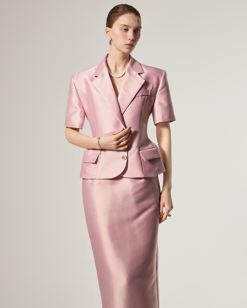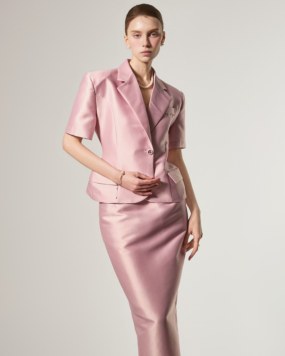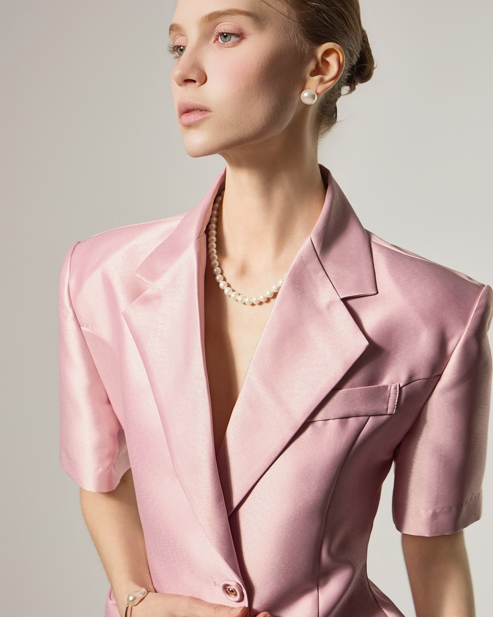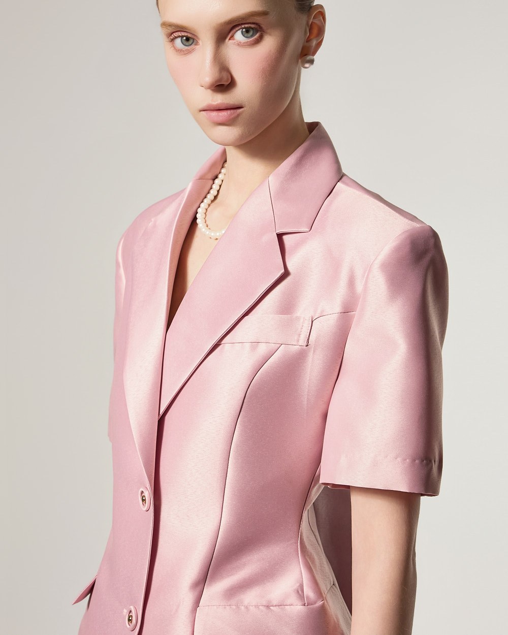 テーラードジャケットデザインに半袖を組み合わせることで、すっきりとした印象を与えます。