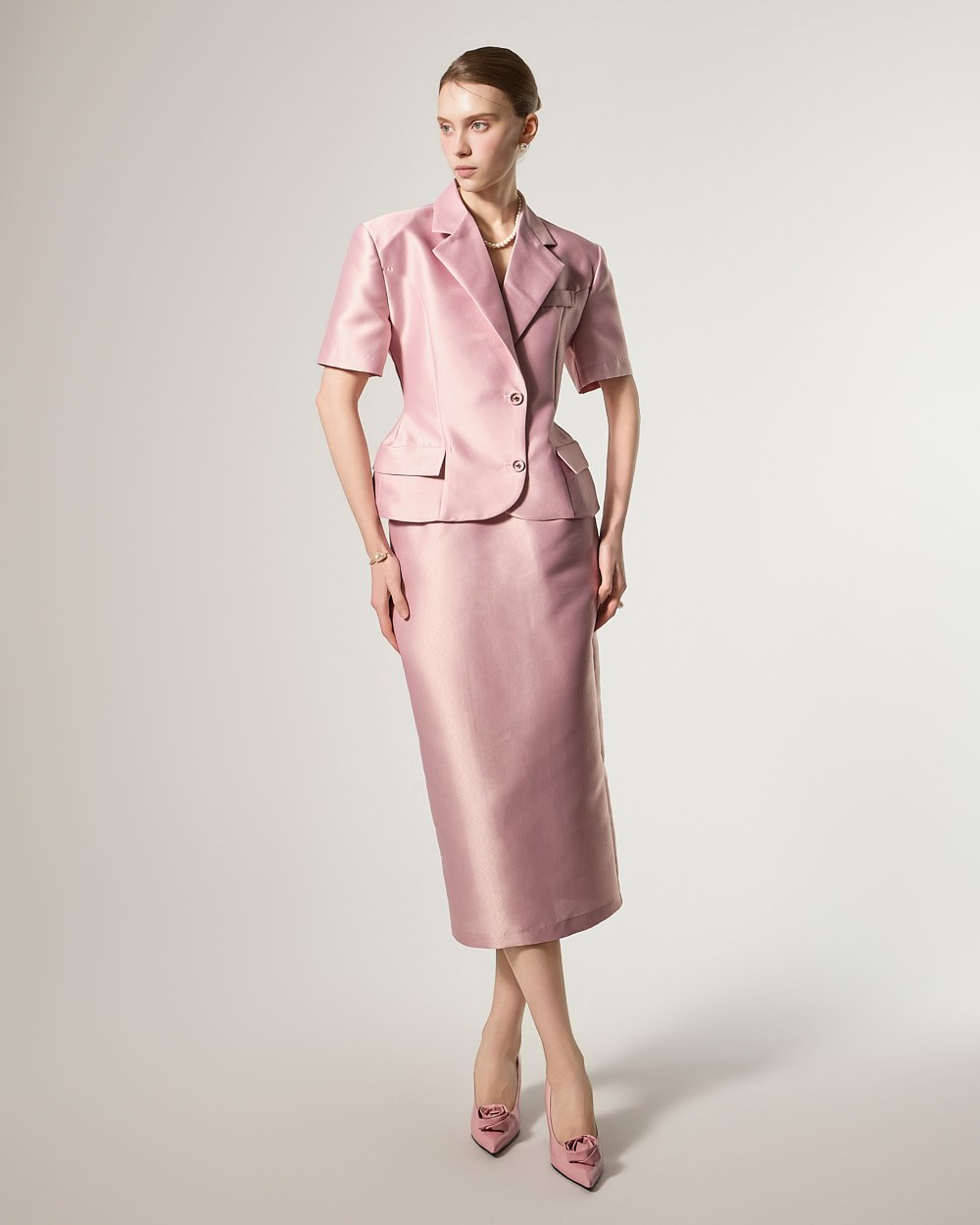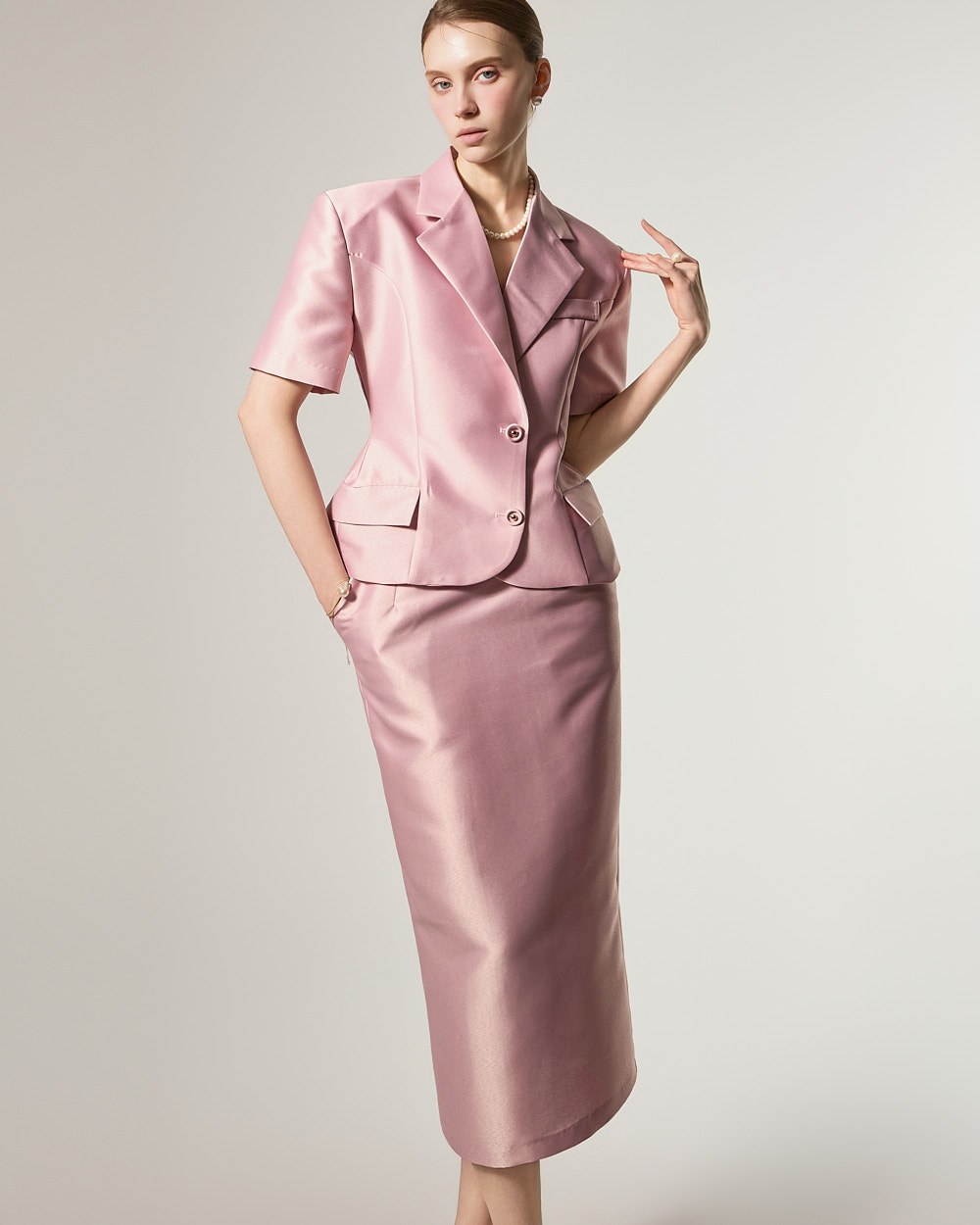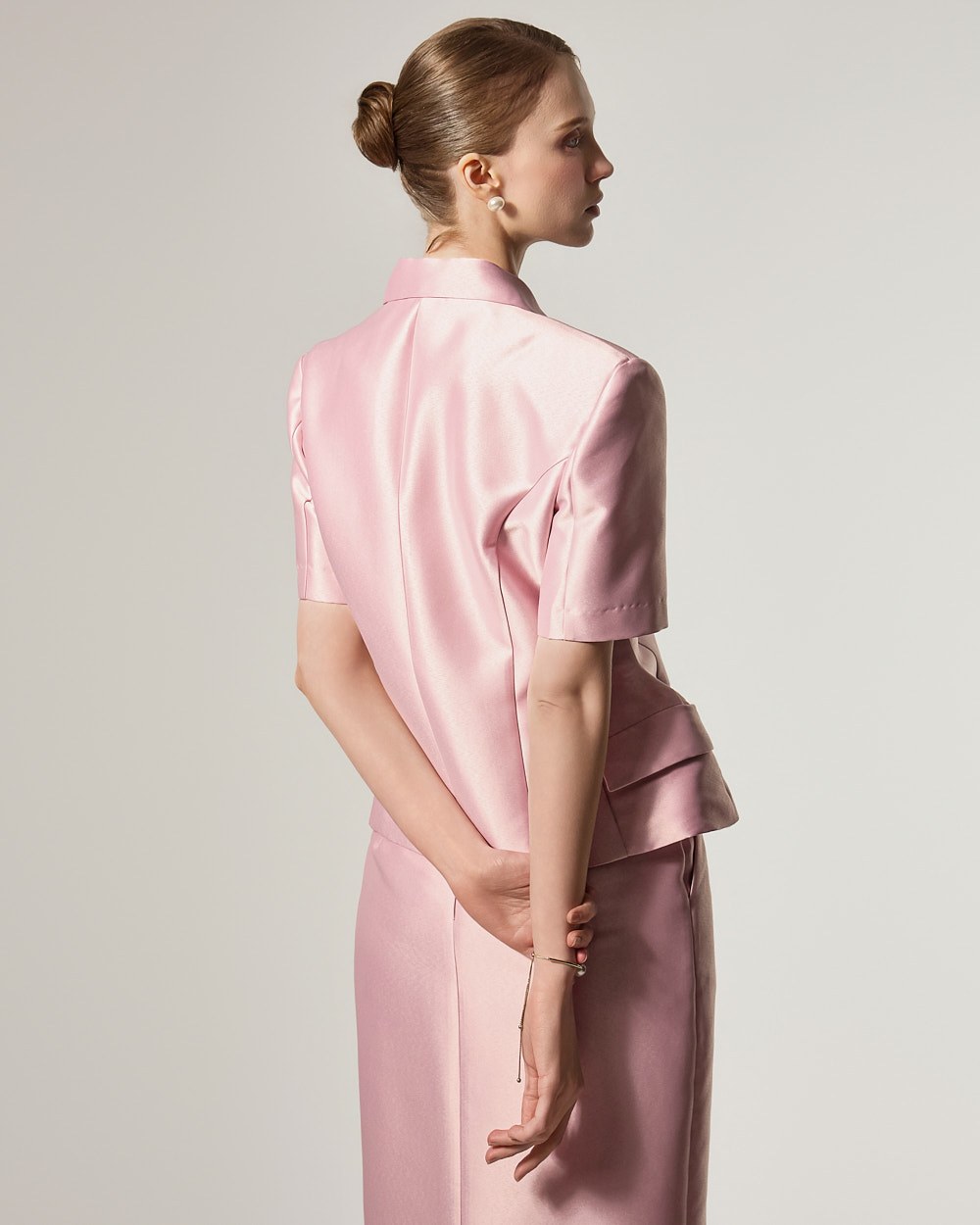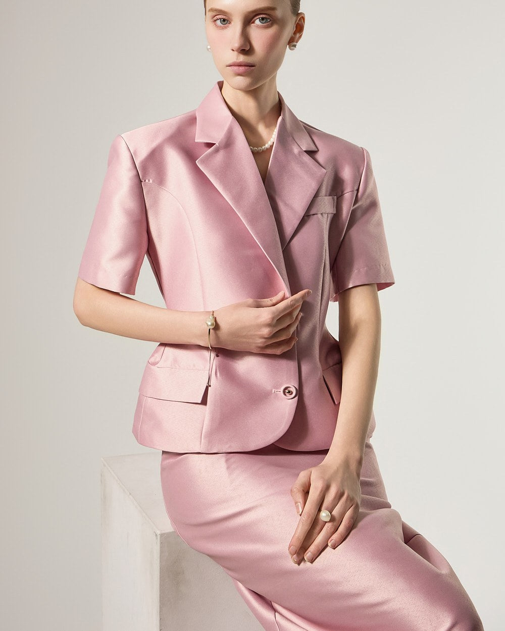 テーラードジャケットデザインに半袖を組み合わせることで、すっきりとした印象を与えます。