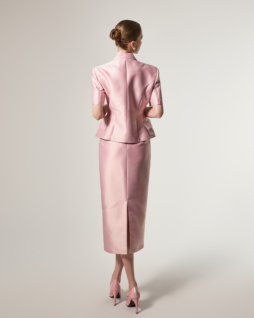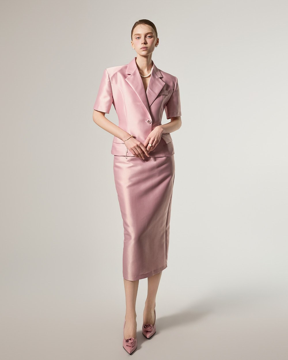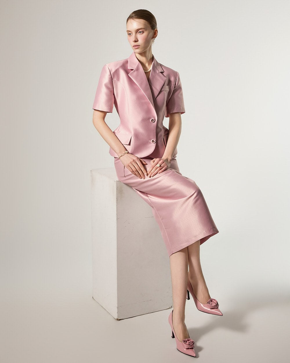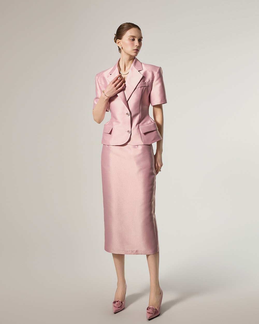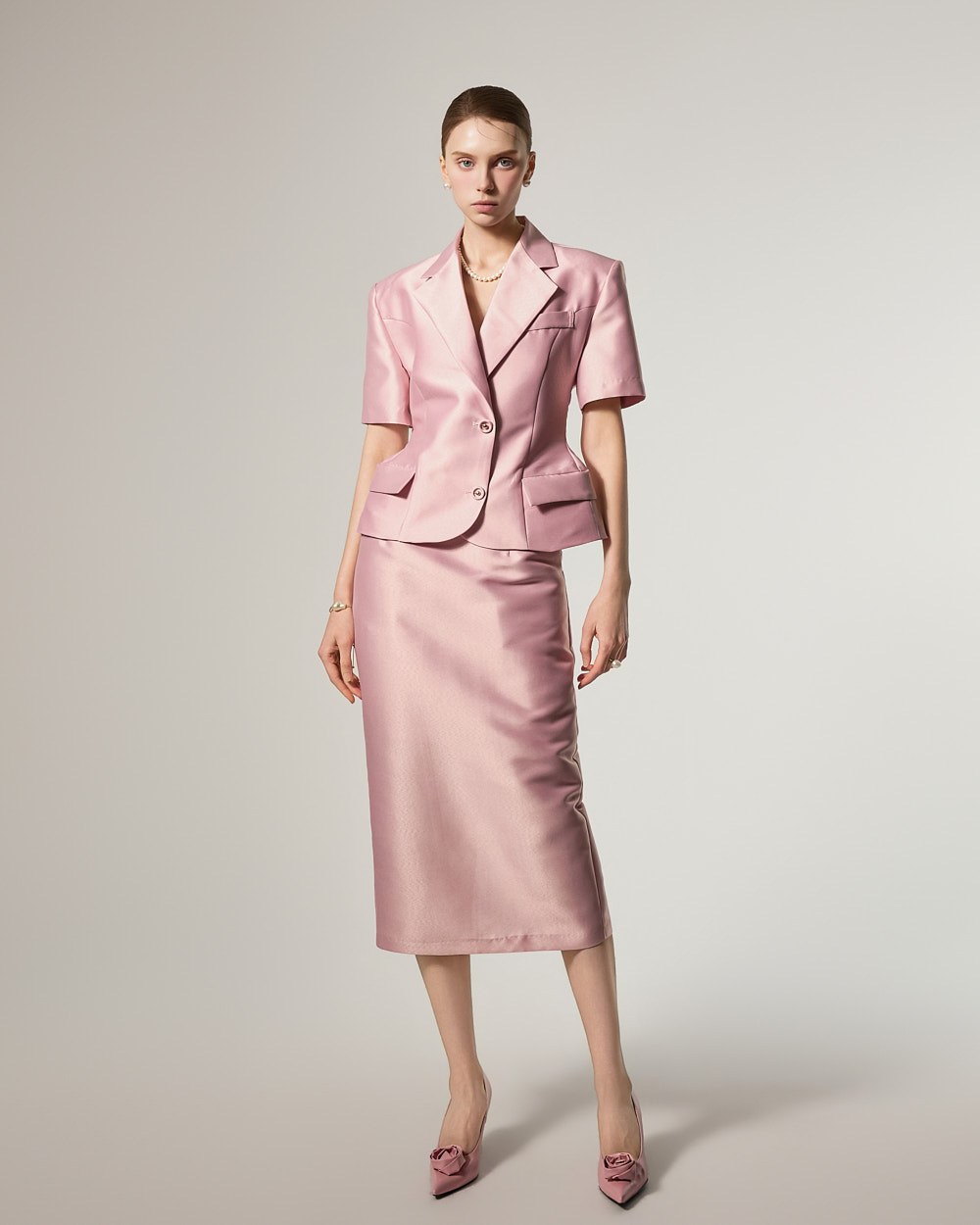 テーラードジャケットデザインに半袖を組み合わせることで、すっきりとした印象を与えます。