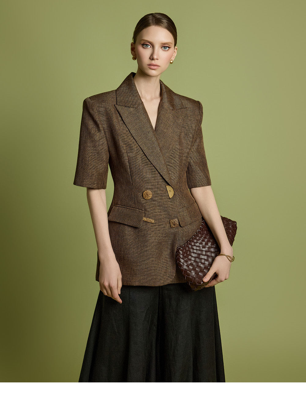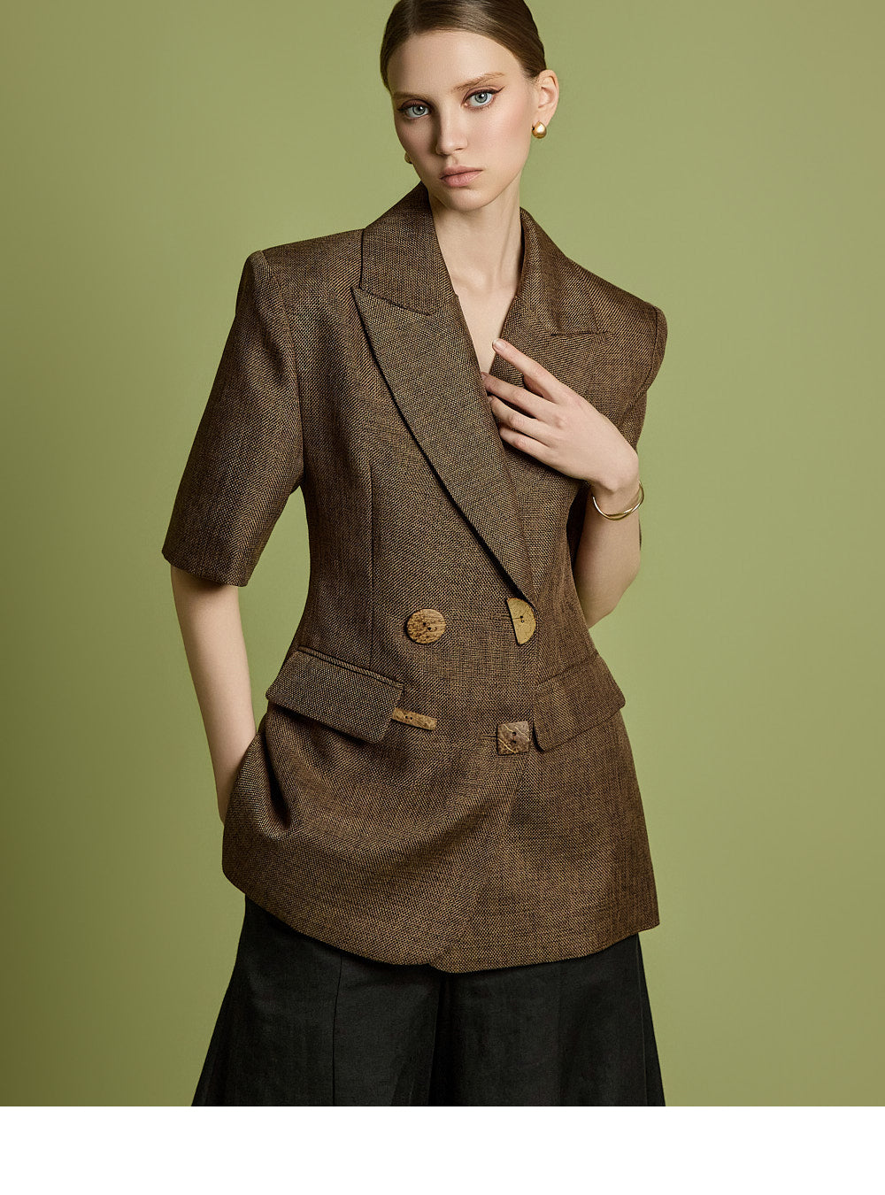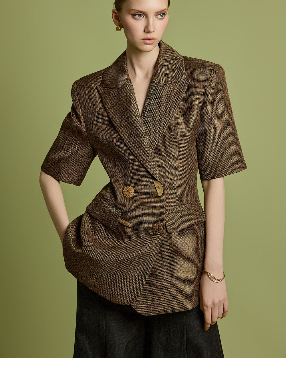 このジャケットはクラシックで洗練された雰囲気を醸し出します。