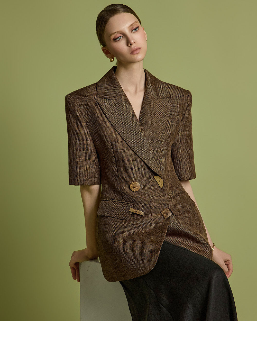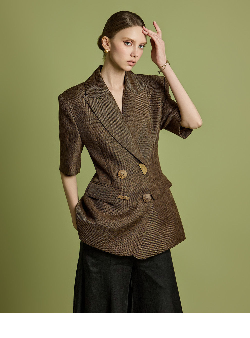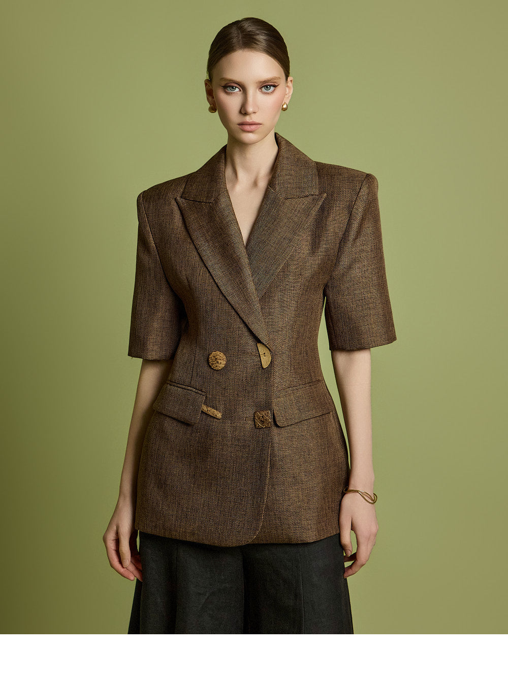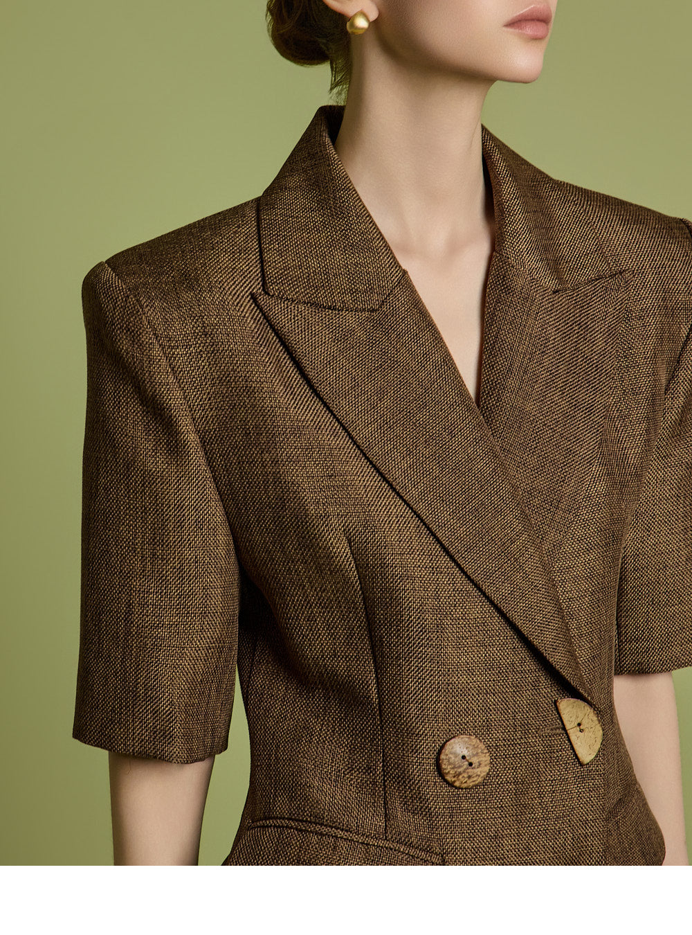 このジャケットはクラシックで洗練された雰囲気を醸し出します。